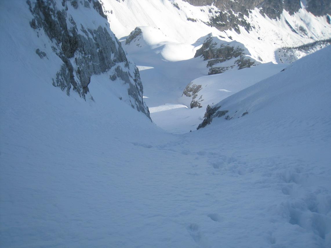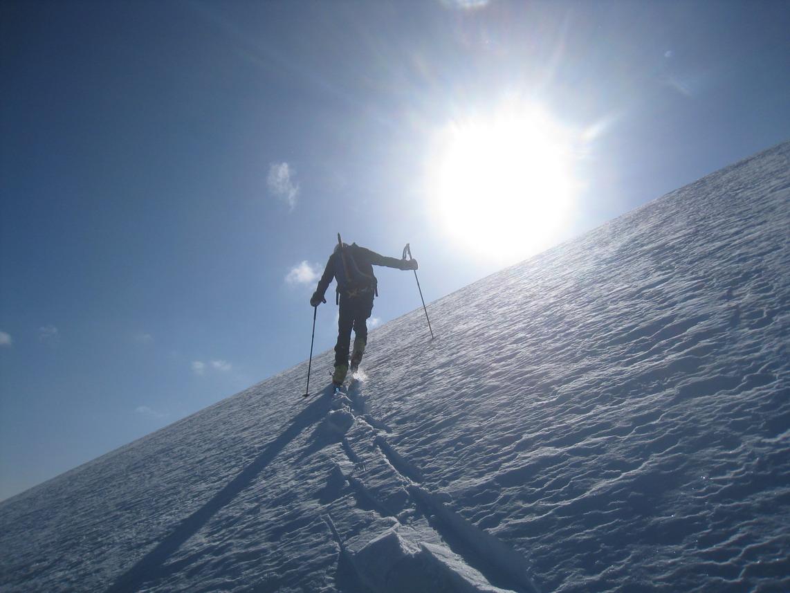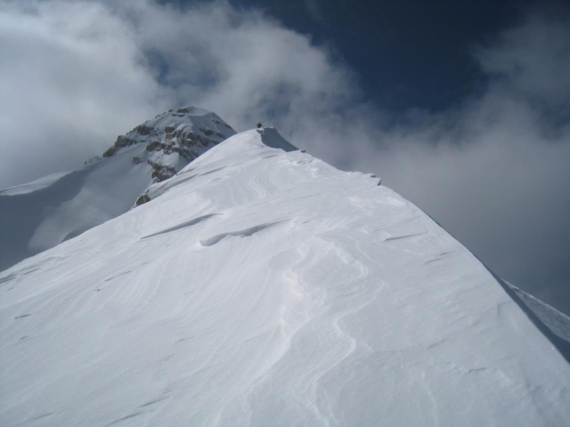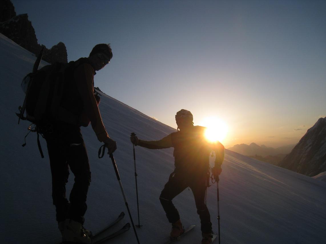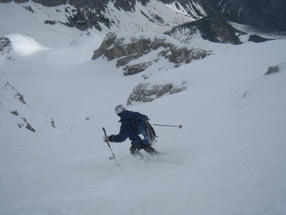 Trotzdem ein tolles Erlebnis in einer traumhaften Kulisse. Auch der Schnee war für diese Jahreszeit recht gut. Am Gipfel leider zu gut. Im oberen Teil windgepresst im Mittelteil Pulver und Bruch und ganz unten Firn.