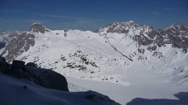 - Vom Seehorn gegen den Uhrzeigersinn und damit immer beste Firnverhältnisse über die gesamte Tour Der Uhrzeit entsprechend Südost, Ost, Nordost, Nord, West und zum Schluss Nordwesthänge.