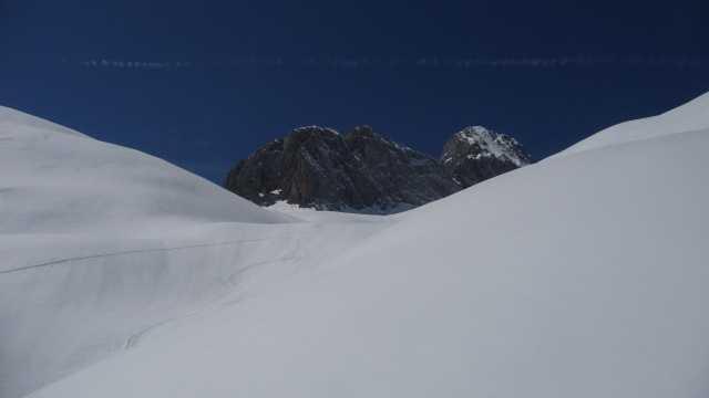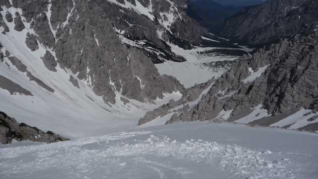 - Vom Auto weg bis auf wenige apere Stellen geschlossene Schneedecke. Kein kilometerweites Skitragen wie über das Wimbachgries.