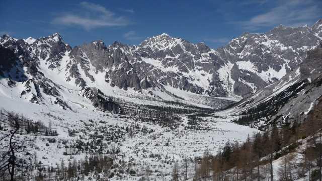 Vom Parkplatz Hintertal auf fast vollständig geschlossener Schneedecke (wenige und nur sehr kurze apere Stellen) bis kurz vor die Kallbrunn und weiter zum Seehorn. Von dort kurz über die Kematenschneid abfahren und dann über Traumhänge im Firn in die Hochwies. Von hier Aufstieg zum Diesbacheck und querend zur Hundstodscharte. Kurze Abfahrt nach Osten und Aufstieg zum Hundstodgatterl. Über das wellige Gelände der Hundstodgruben zum Trischübel. Nach Westen über eine Steilstufe (Drahtseil, problemlos) ins Wimbachgries. Querung in den Loferer Seilergraben und Wiederaufstieg zum Seehorn. Finale Abfahrt nach Hintertal bis vor das Auto.Die Tour ist ein Traum. Fotokamera mitnehmen und genug zum Trinken. Mein halber Liter war etwas wenig.