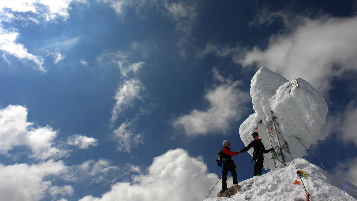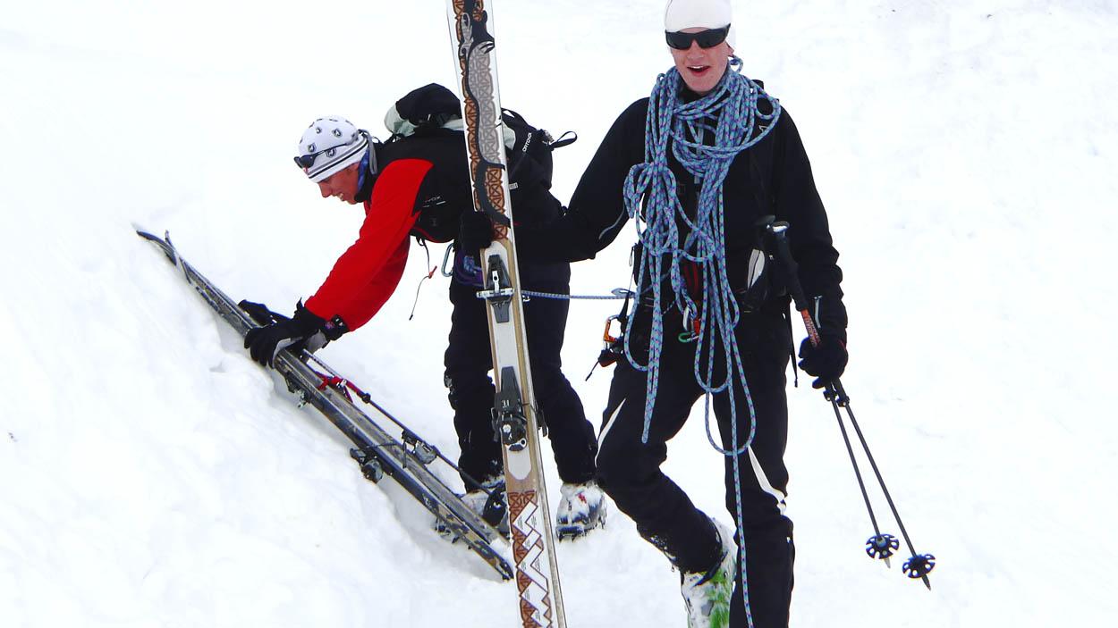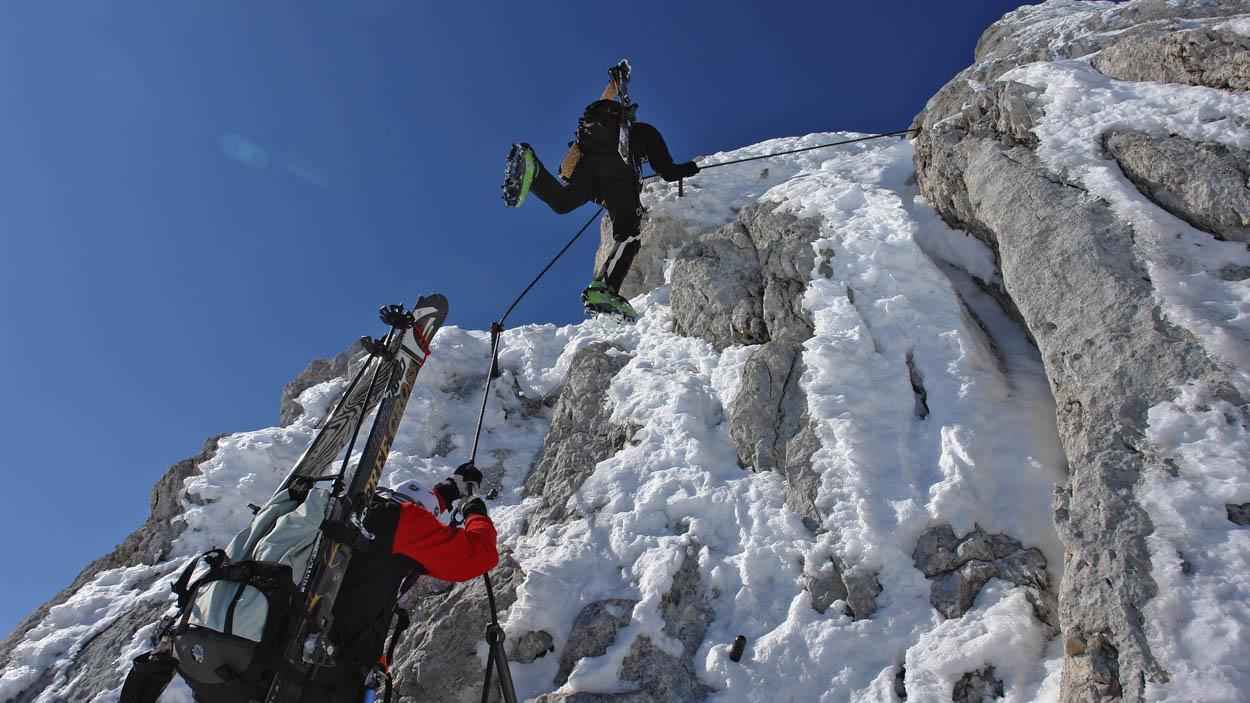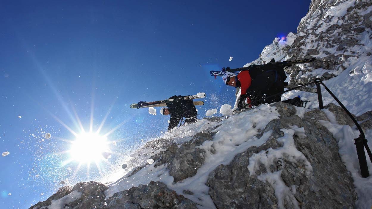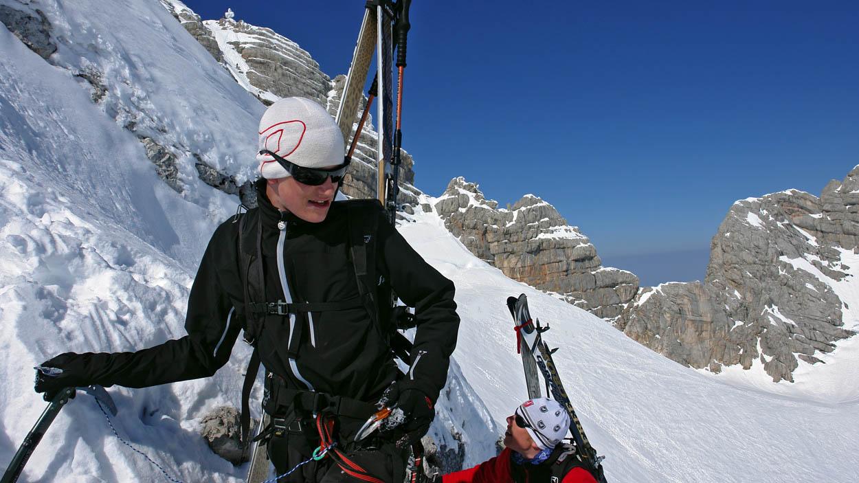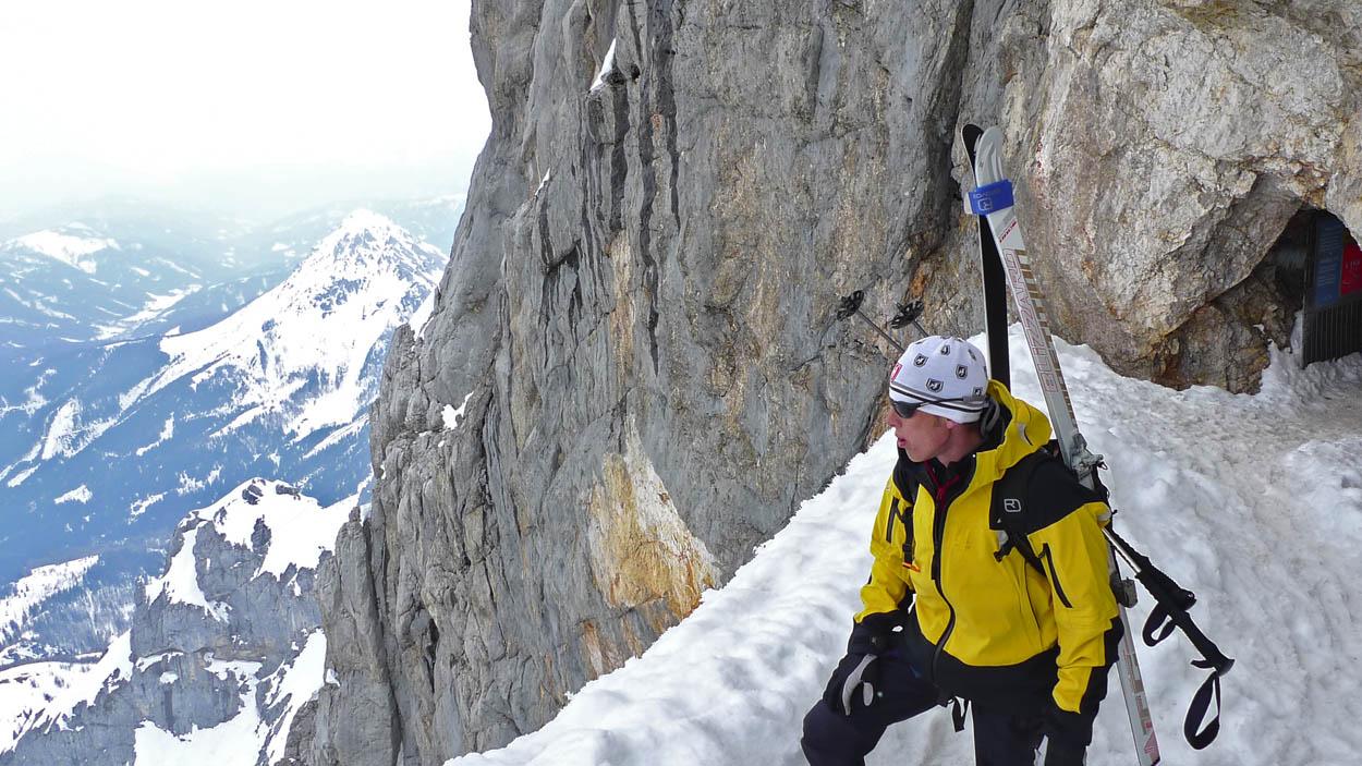 Zum Geburtstag meiner beiden Buben Stefan und Michael, der Schulteranstieg auf den Dachstein-130409 Gedankensplitter im ICE auf der Westbahnstrecke. Wenn wir es zulassen dass unser Leben wie auf Schienen von selbst dahin läuft, dann rauscht es doch im Eilzugtempo an uns vorbei wie die Landschaften, die wir aus dem Zugfenster erblicken. Je öfter wir bewusst anhalten umso eher stoppen wir das rasende Tempo unserer Zeit das uns Jahr für Jahr schier den Atem raubt. Für viele ist der Gang in unsere Berge der Umstieg auf das Fahrrad um die Bilder links und rechts des Weges zu erkennen, aufzunehmen, auf sich wirken zu lassen. Diese ?Entschleunigung? lässt uns sogar den ein oder anderen holprigen Feldweg unseres Lebens neu erkunden. Also steigen wir doch aus an der Haltestelle ?Wochenende,? verlassen die Einbahnschiene und zweigen ab Richtung holpriger Feldweg, um neue Erlebnisse einzufangen.