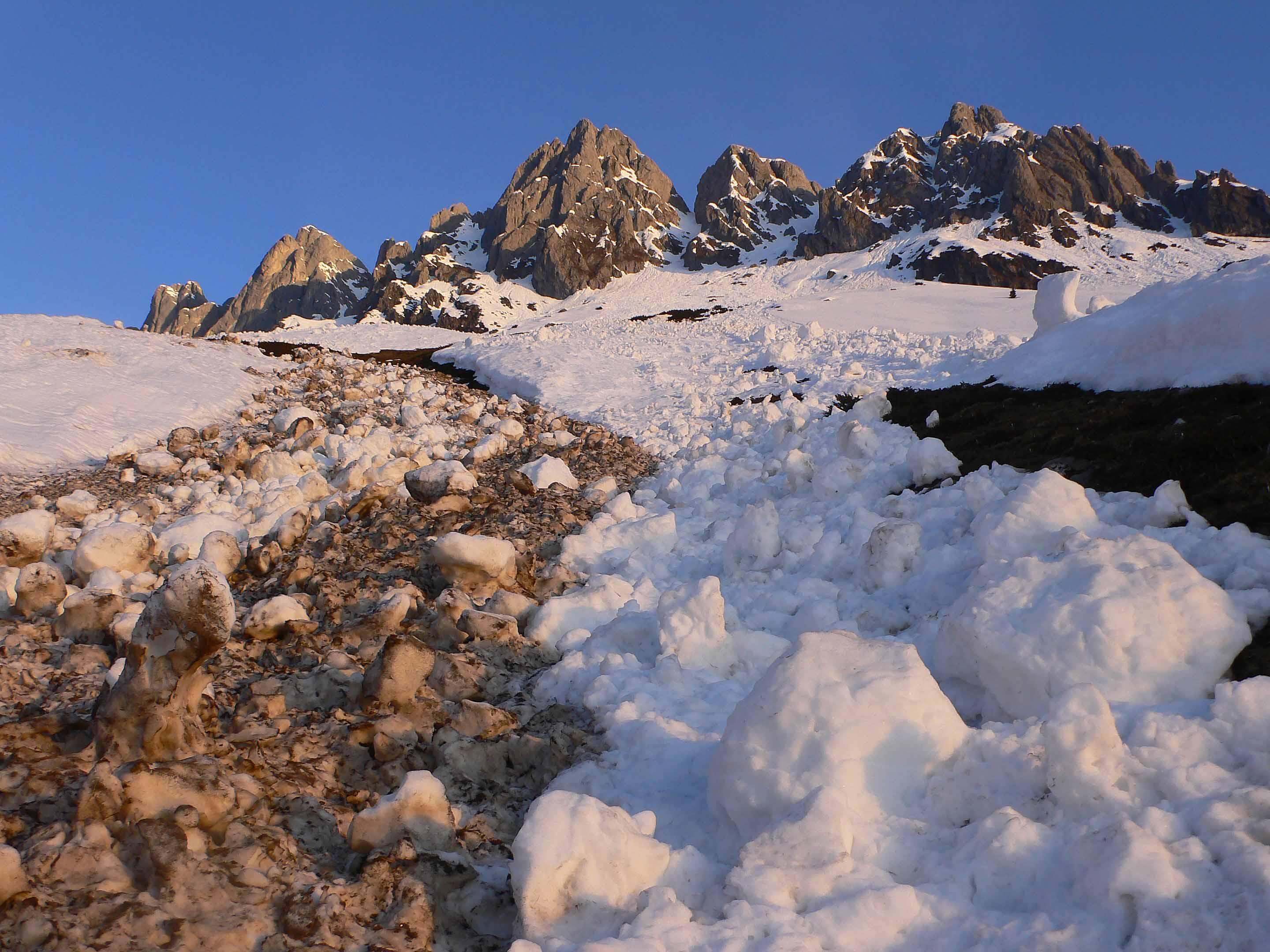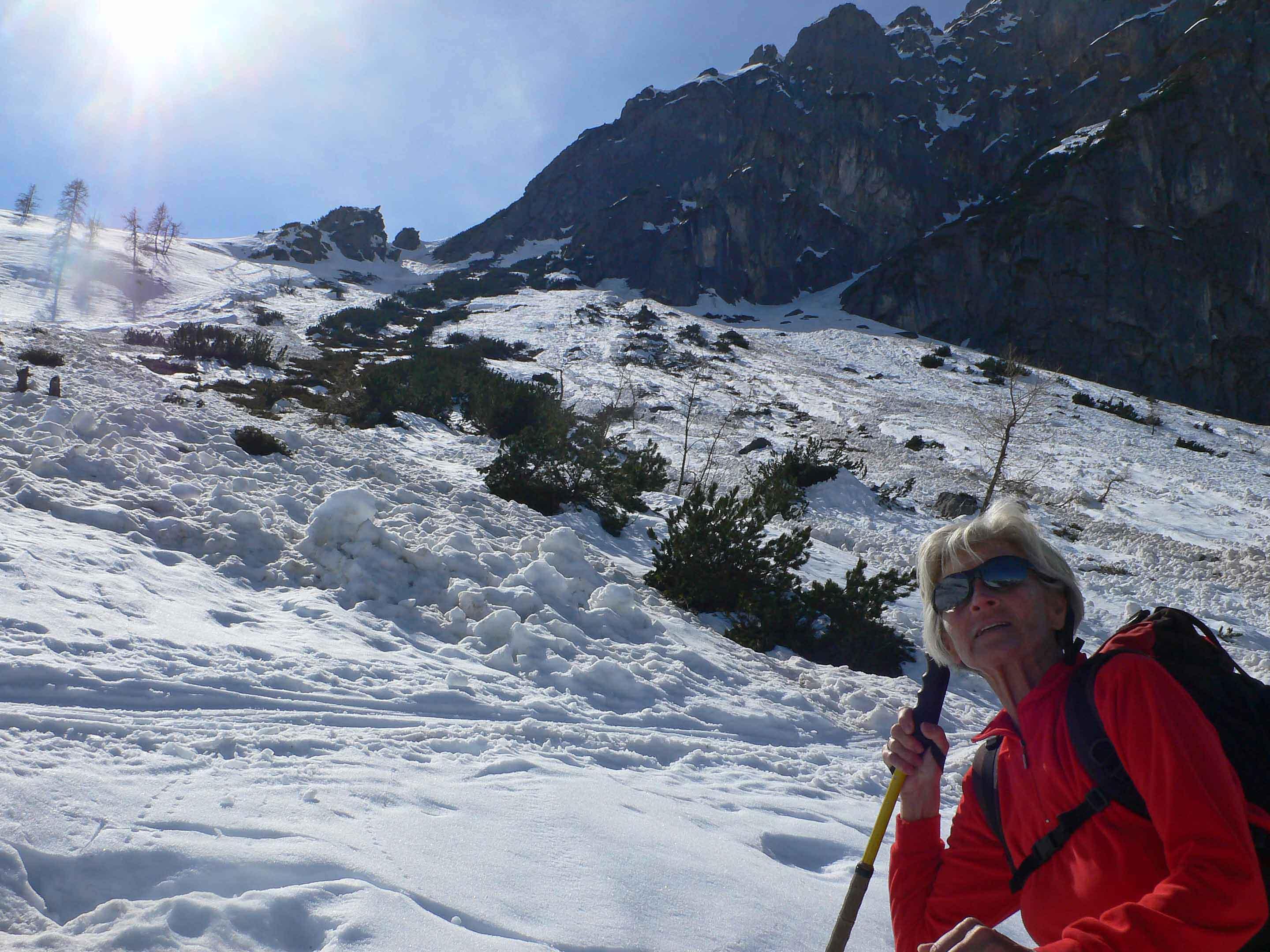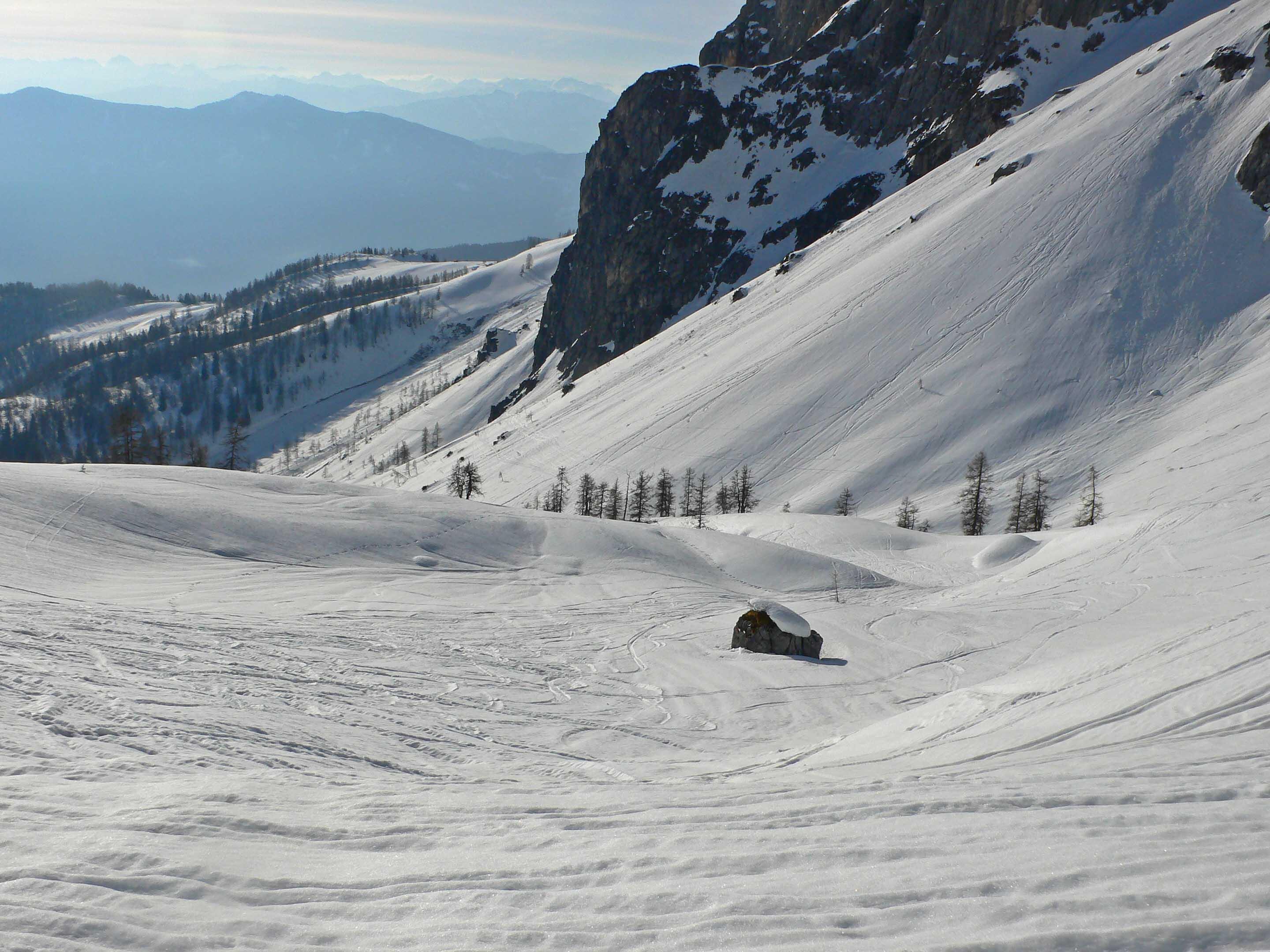 Es sind mächtige Lawinen im Abschnitt der Mandelwände bereits abgegangen, aber dennoch ist immer noch mit Naß-und Grundlawinen zu rechnen. Es ist daher wirklich ratsam zeitig in der Früh mit dem Aufstieg zu beginnen, um spätestens noch vor 12:00 Uhr vom Gipfel abzufahren. Hart und griffig im Aufstieg und weich (Firn) die Abfahrt.