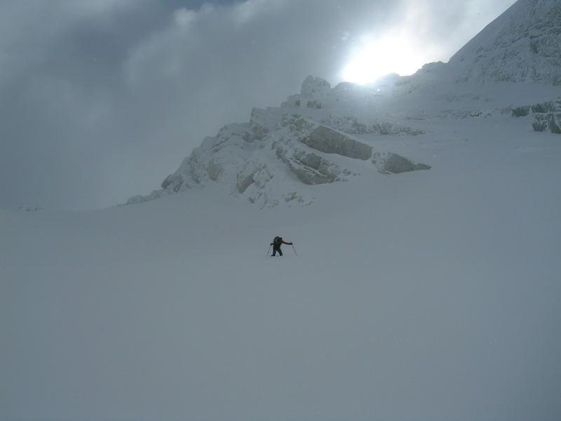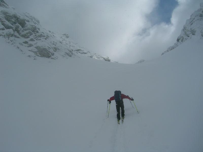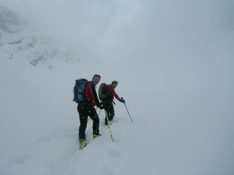 Steintal: Etwas weniger Neuschnee und schon gespurt. Dafür überhaupt keine Sicht mehr, schon gar nicht die vorhergesagte Sonne.