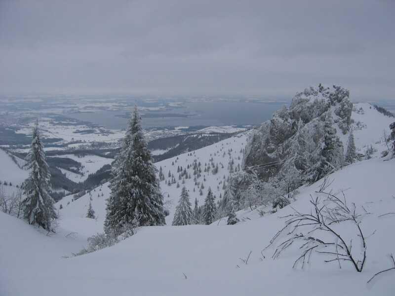 Bei den derzeitig widrigen Wetter- u. Schneeverhältnissen von Aschau/Ciemgau über die Piste auf die Kampenwand (bis ca.1600m). Die Schneeverhältnisse waren auf der Piste ideal, da übernacht ca. 10-15cm Neuschnee gefallen sind und die Piste nur z.T. neu gewalzt war. Das Wetter war wesentlich besser als vorhergesagt, vom Dauerschneefall keine Spur. Oben lebhafter W-Wind mit stürmischen Böen (->z.T. massive Schneeverfrachtung !).Nachdem gestern aus den N-Hängen oberhalb der Sonnenalm die Lawinen gesprengt wurden, tummelten sich in diesen Steilhängen heute wieder eine Menge Skifahrer. Leider konnte man auch in so manchem "nichtkontrolliertem" Steilhang Variantenfahrer beobachten, die vermutlich den Lawinenlagebericht nicht kannten oder ignorierten !
