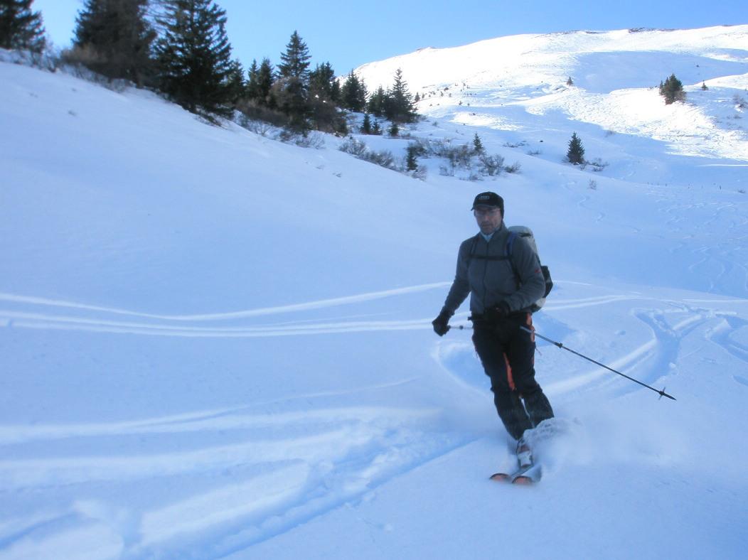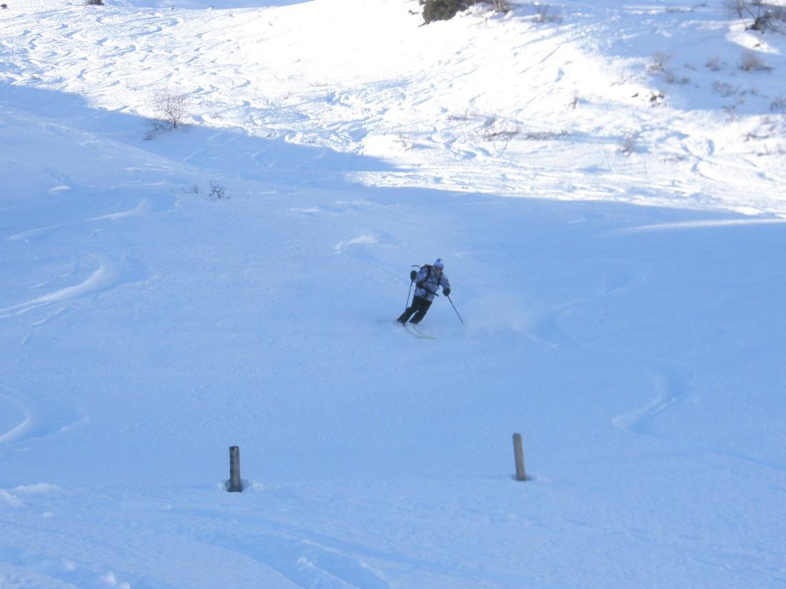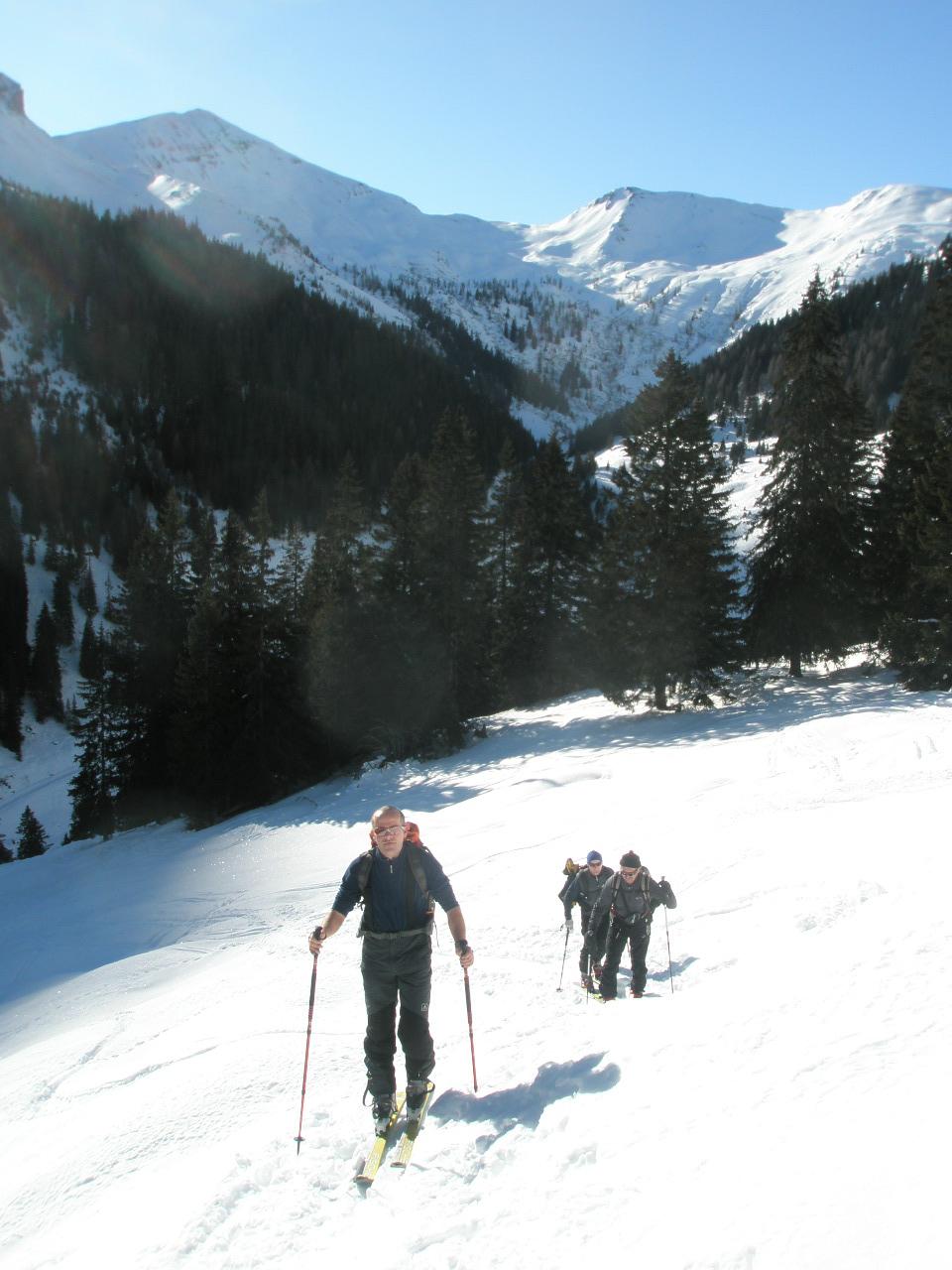 Gute Tourenbedingungen am Frauenkogel in Großarl. Aufstieg vom Gehöft Hinterfeld (Hüttschlag) vorbei an den Ebenalmen steil zum Gipfel. Schnee im oberen Bereich pulvrig fest und gut zu fahren. Erstaunlicherweise fanden wir zum Teil auch noch unverspurten Pulver vor.