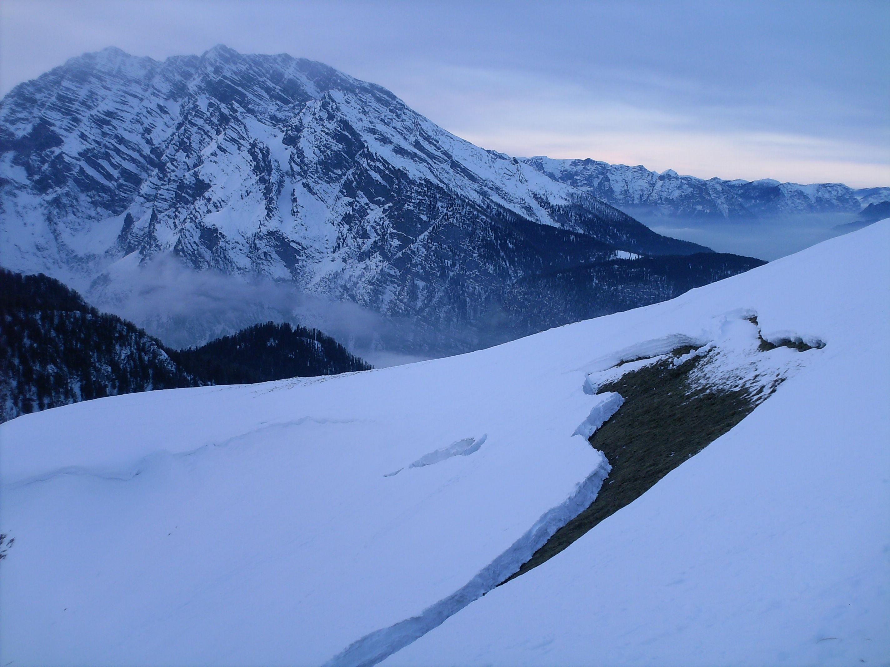 Aufstieg über Loarmoas zum Stahlhaus und weiter auf den Schneibstein. Die Schneeverhältnisse und Aufstiegsbedingungen zeichneten sich durch harte aber griffige nur sehr selten vereiste Spur aus. Auf der Abfahrt waren die Schneemengen ab Schneibstein bis Seeleinsee verweht aber ausreichend ohne wensentlichen Feindberührung. Die Abfahrt über die Roßfelder war beste Pistenqualität.Der Wetterbericht hat mal wieder versagt...Vormittag nach schneller Auflösung der Hochnebelfelder war sonnig - ab Mittag zog von SW dichte hochnebelartige Bewölkung heran, welche die südlichen Gipfel einhüllte und uns durch sehr diffuses Licht die Sicht erschwerte.