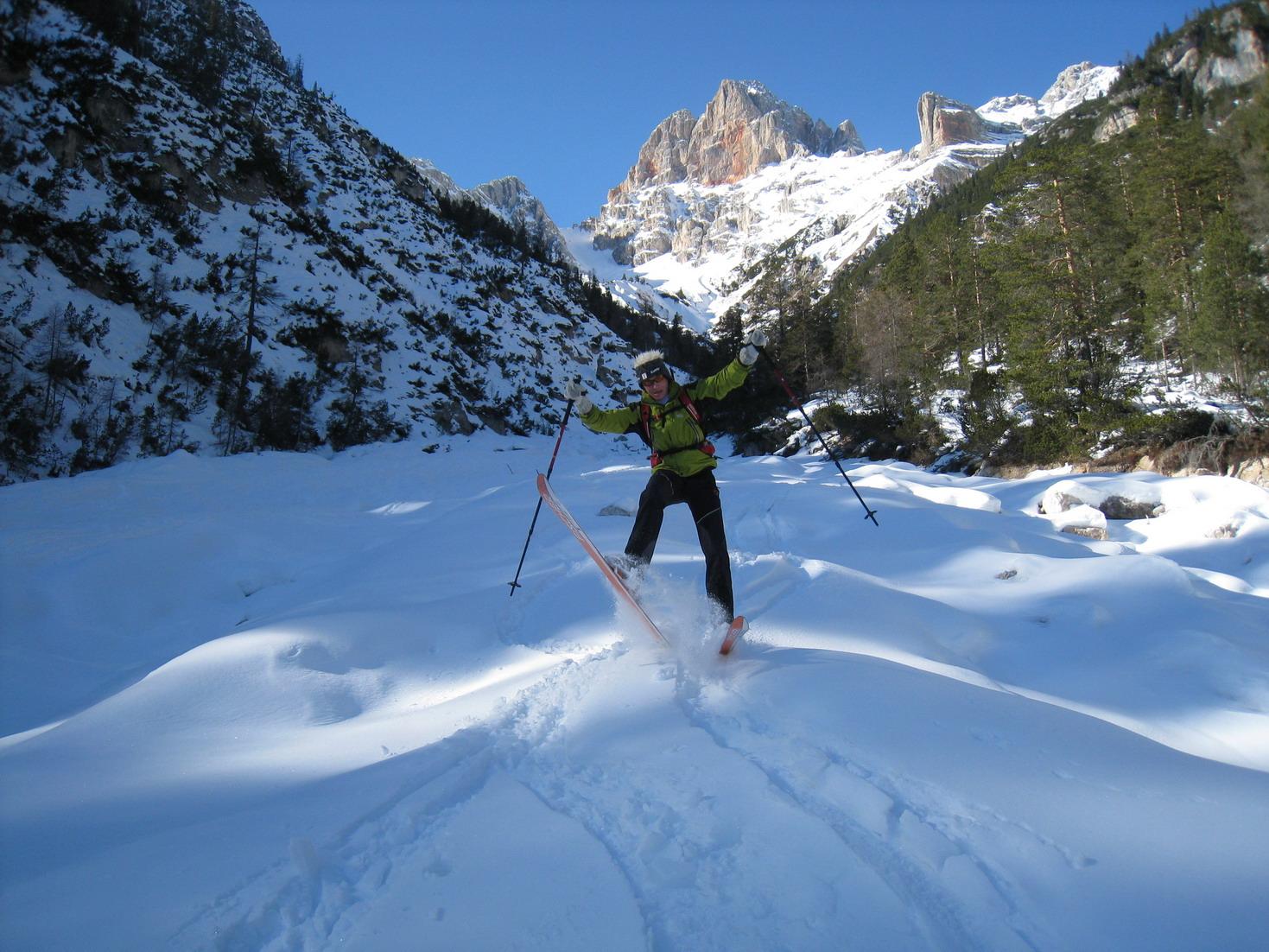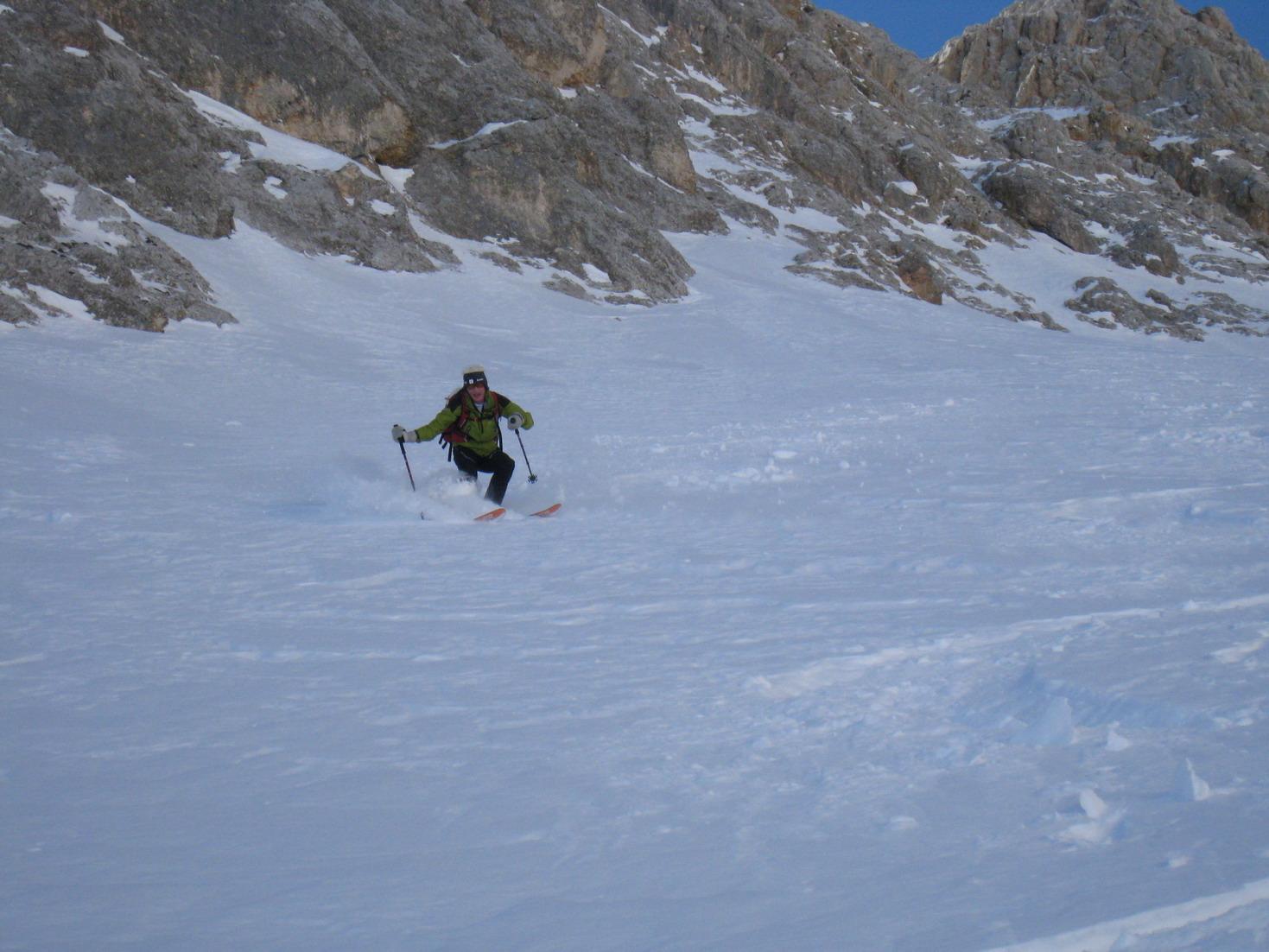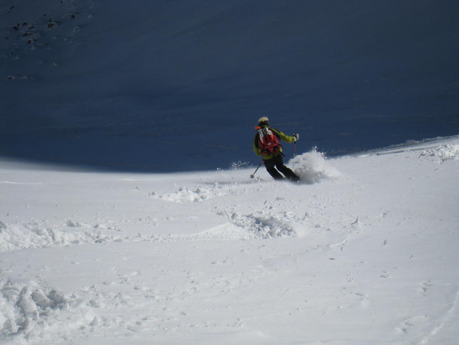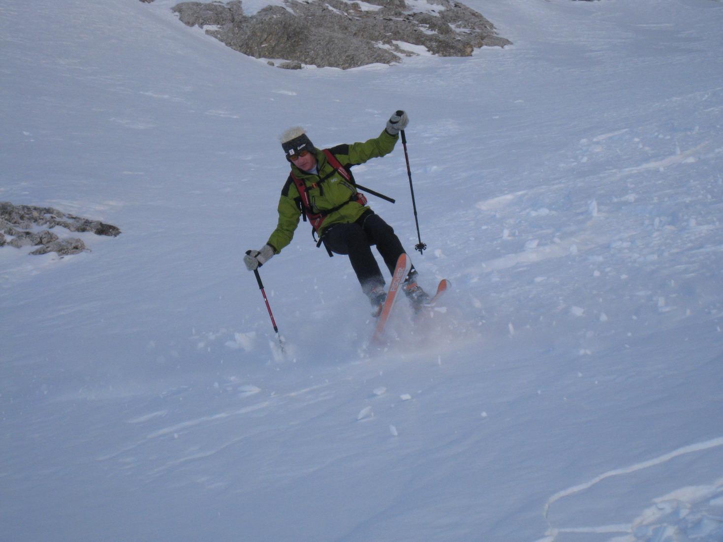 (Pulver) und der sonnigen seite (Firn) wählen, also Luxus Pur. Unten fanden wir dann wieder Pulver vor. Der letzte Teil durch ein relativ steiles Waldstück forderte uns noch einmal