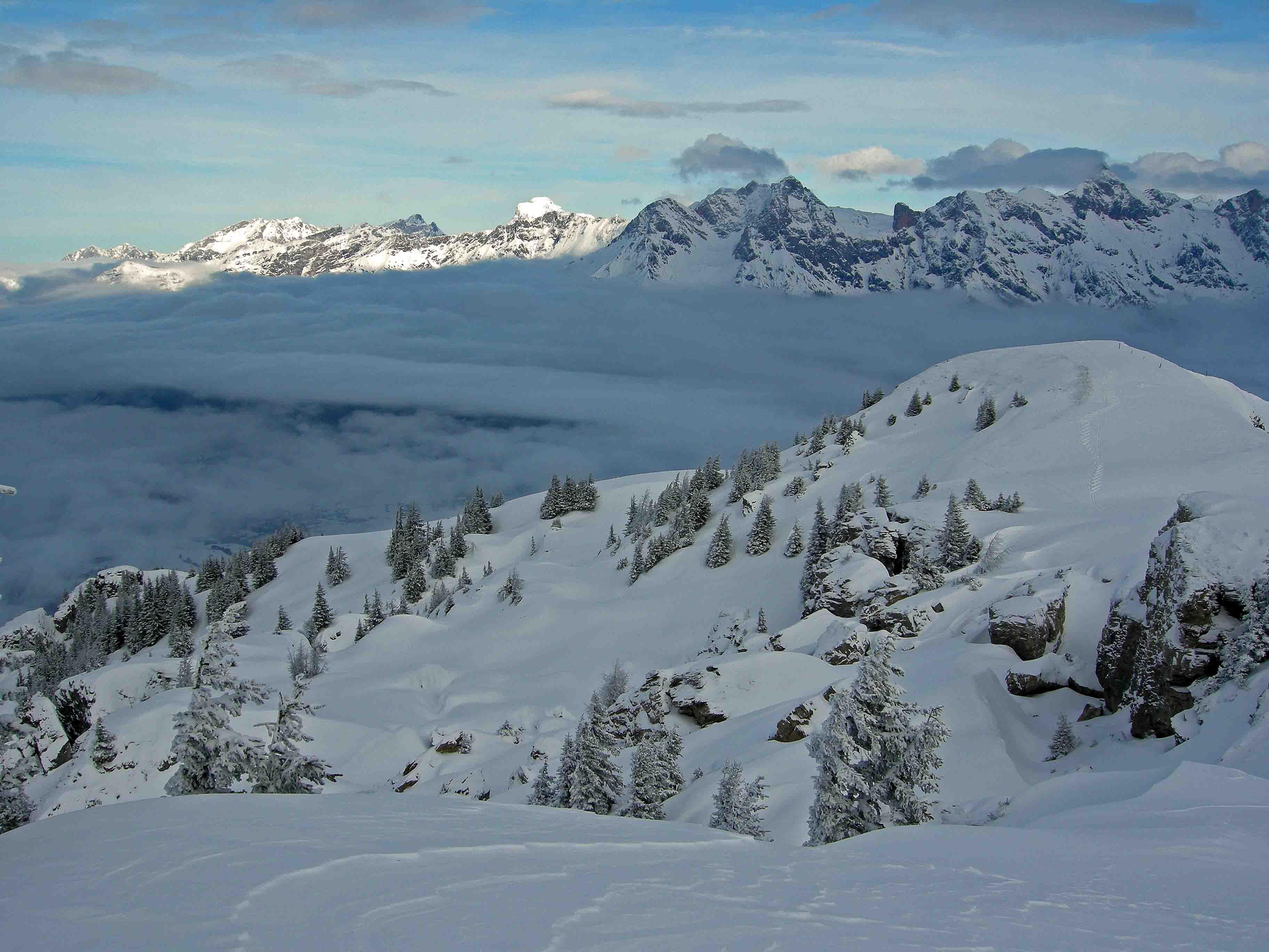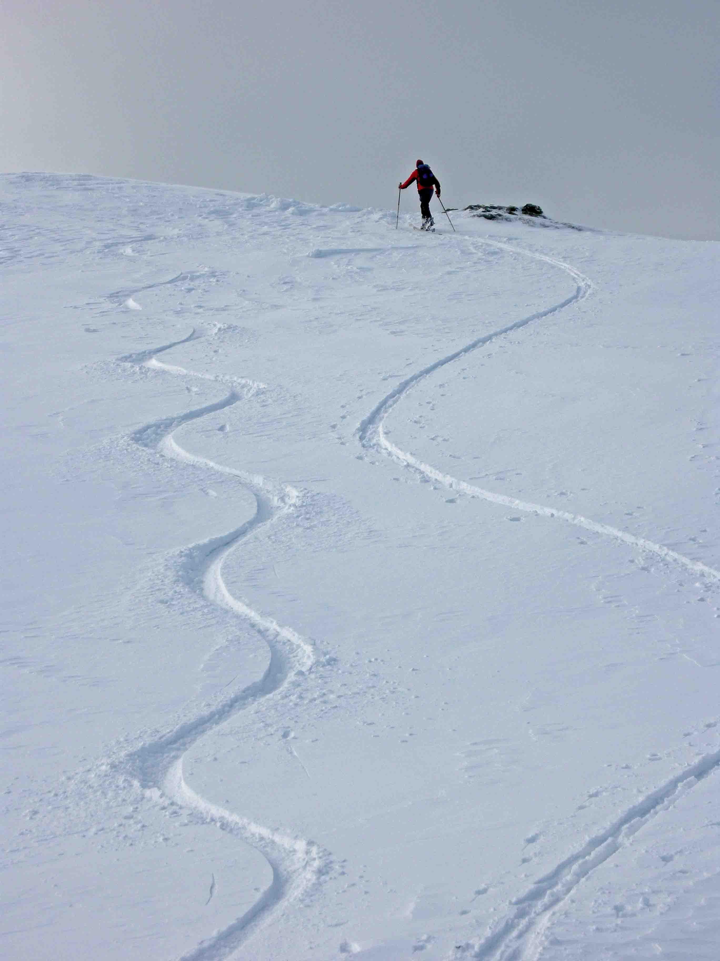 Von Gerling aus auf den Brunnkopf. Herrliches Schivergnügen bis 1300m. Durch den Wald teilweise aper. Unter einer 10cm Neuschneeschicht Bruchharscht auf der die geringe Neuschneemenge wegrutscht.