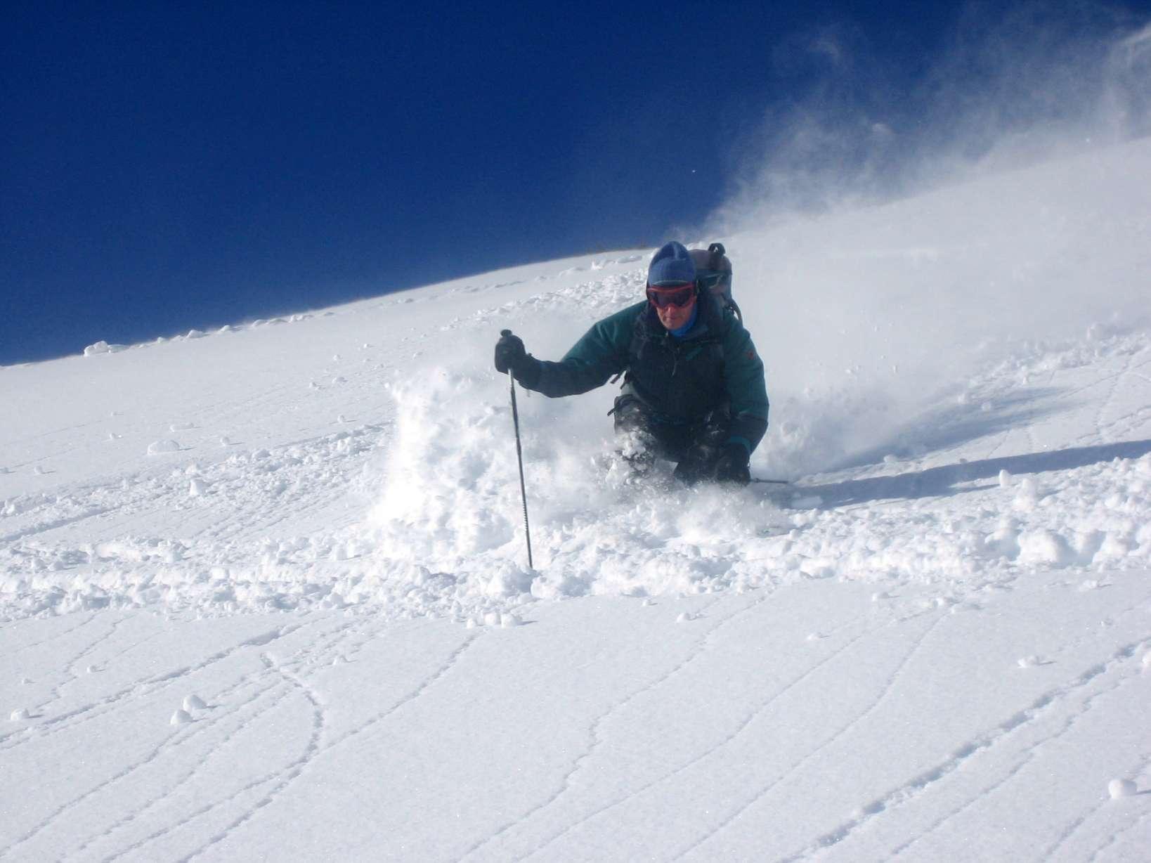 "Im Banne der Dachstein-Südwand" - ein Alpin-Klassiker, heute aber auch unsere Devise! Bei stürmischem Wind war´s beim Kreuz auf der Eiskarschneid wirklich schneidig kalt, dafür die Abfahrt zum Schnittlauchmoosboden gleich wieder"herzerwärmend". Anschließend hinauf ins schattig-zugige Tor.
