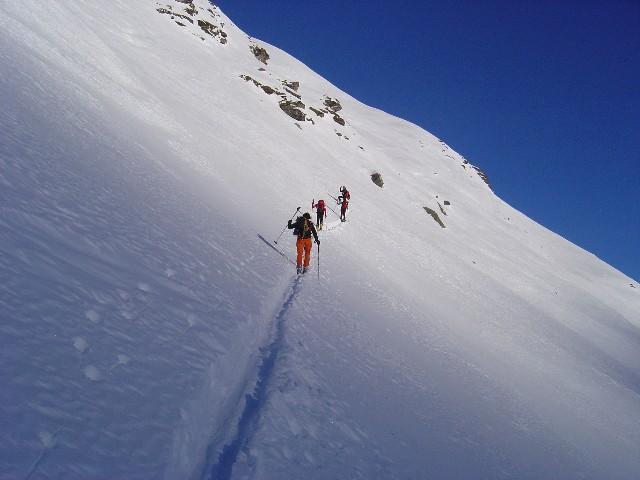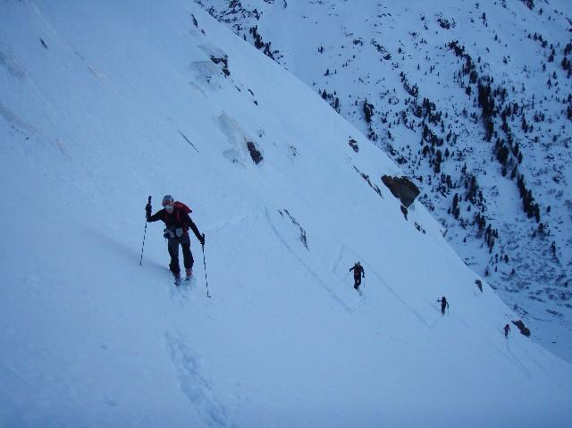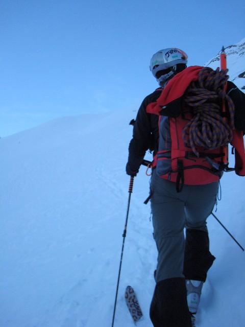 Ausrüstung: Komplette Hochtourenausrüstung inkl. Seil, Steigeisen, Eisgerät, 2 Eisschrauben, Helm (!). Für den Gipfelgrad ein paar Bohrhaken.