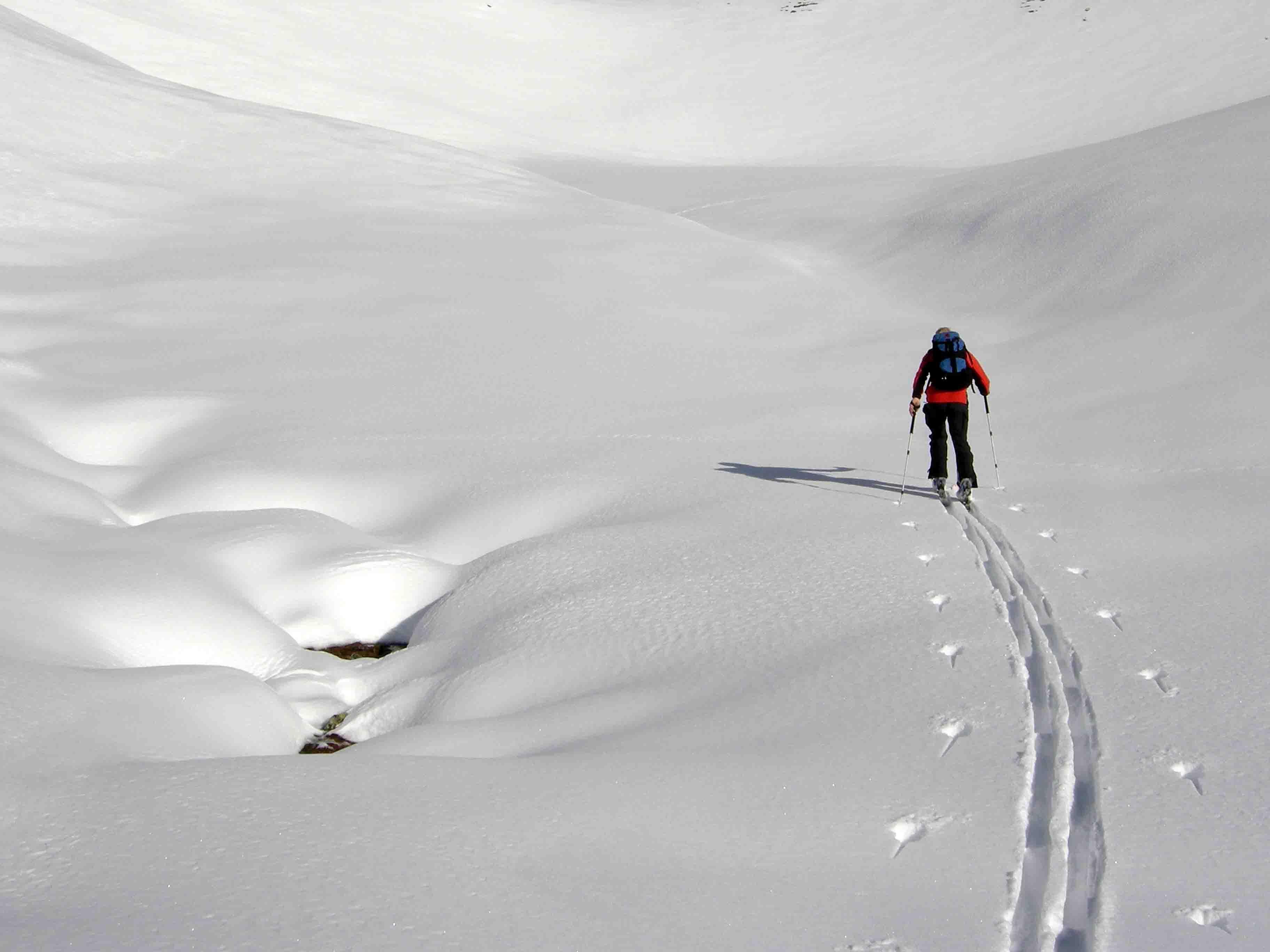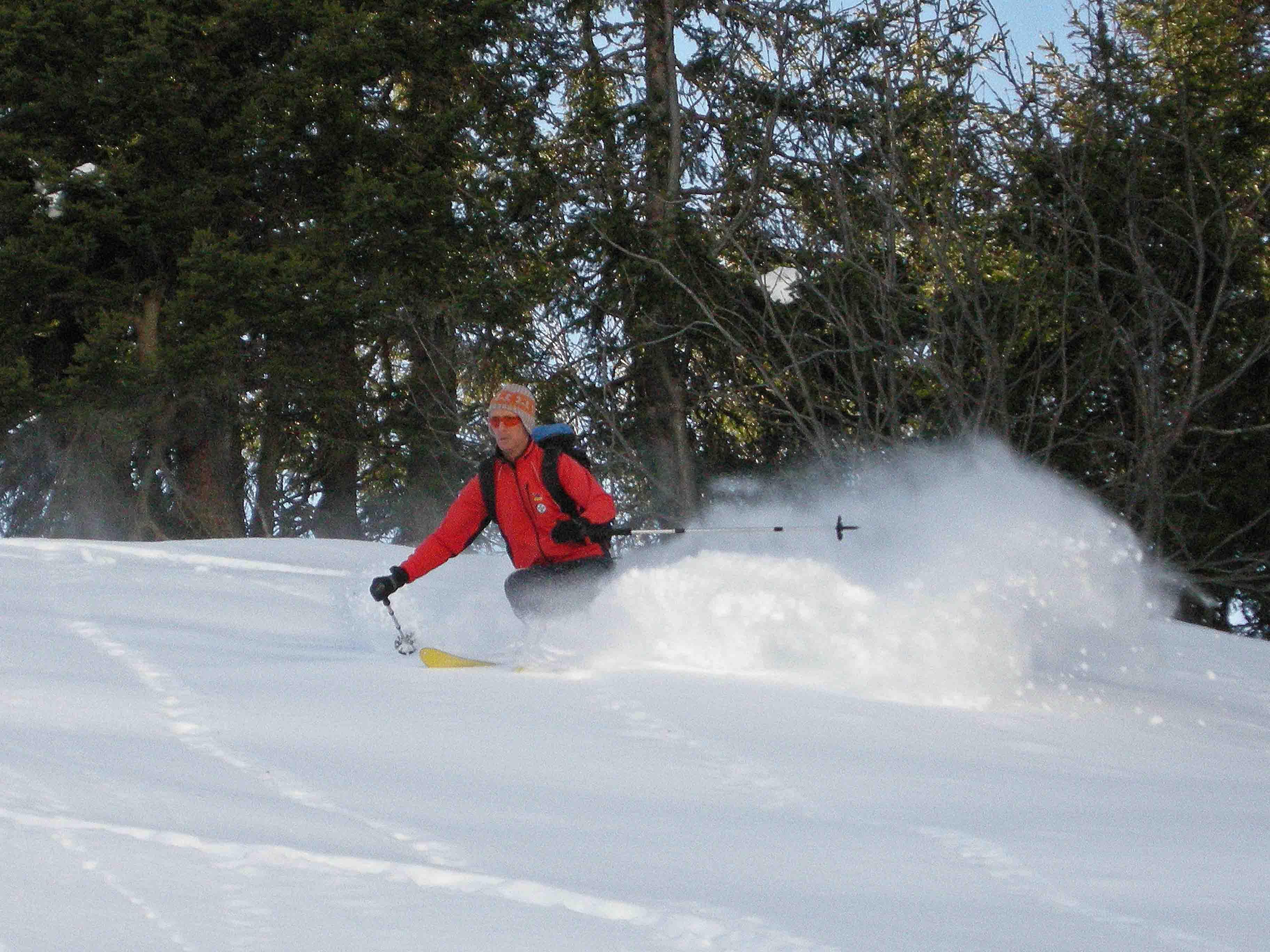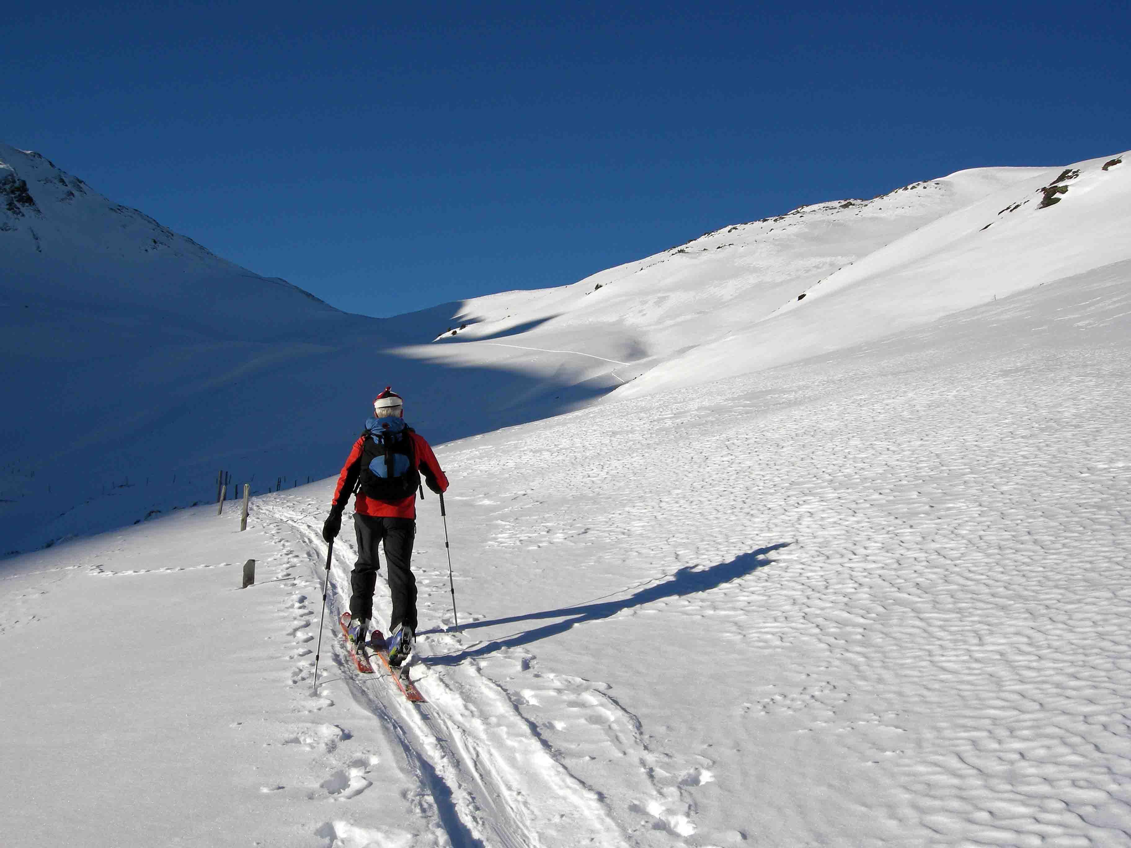 Wir erwarteten heute an Nordseitigen Hängen Pulver und wählten den Manlitzkopf aus. Aufstieg vom Glemmtal über die Stoffen Nieder. Südseitig lagen die Hänge derartig verführerisch vor uns, dass wir bis zur Baumgrenze abfuhren. Als Belohnung gab es an den Hängen die sich etwas von der direkten Sonneneinstrahlung abwandten herrlichen Pulver. Dann Wiederaufstieg und Abfahrt gegen Norden.