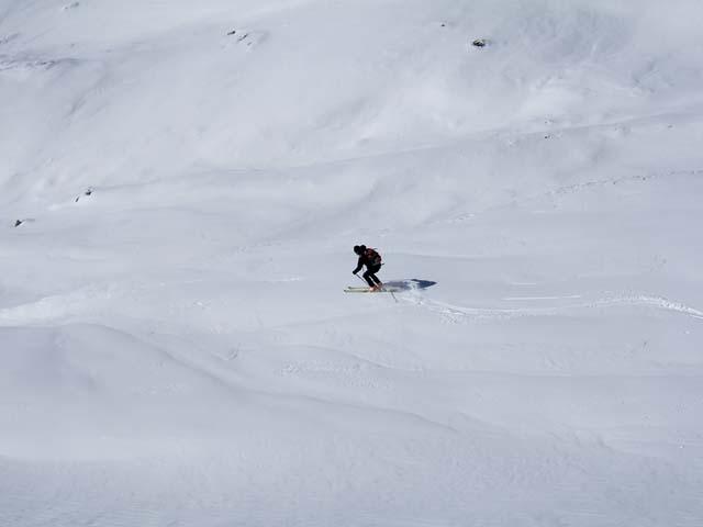 Für die Jahreszeit schöne Abfahrt bei nur minimalem Bodenkontakt.