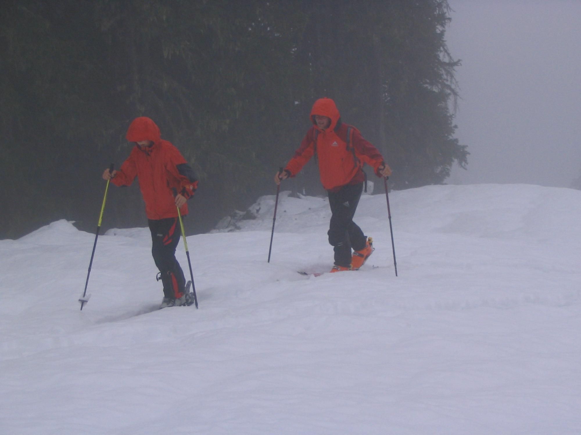 Der frühe Wintereinbruch verleitete dazu, die alten Tourenschier auszupacken und mal zu schauen, wie´s oben aussieht. Und tatsächlich fanden sich am Hocheil Verhältnisse, die über die Saukarpiste ein vergnügliches aufsteigen und ein brauchbares abfahren ermöglichten.