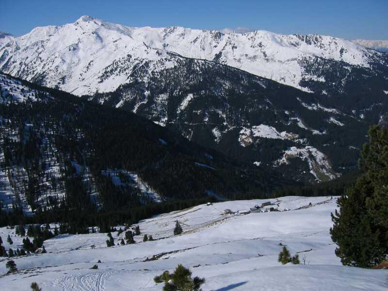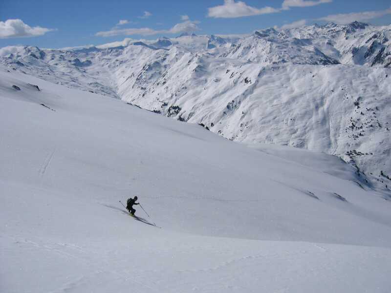 Abfahrt über Nonsalm(1785) auf gutem Firn; zurück auf die Piste und nach Hausstatt auf Ziehweg , bis auf 2 kurze Unterbrechubgen durchwegs gut fahrbar.