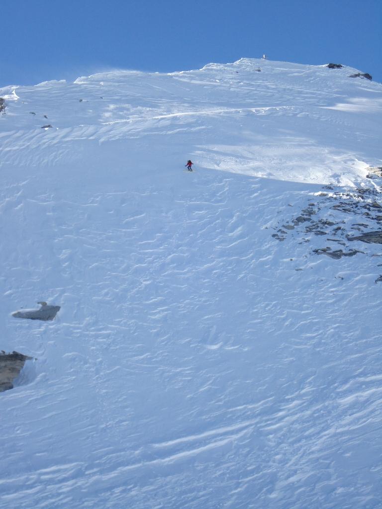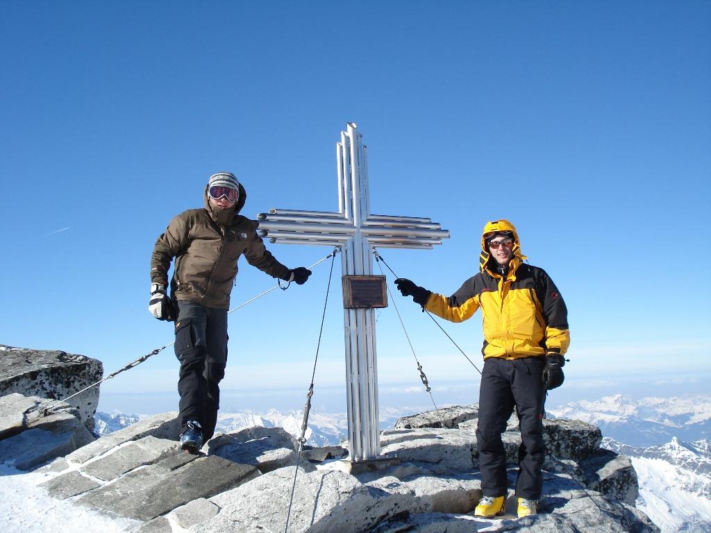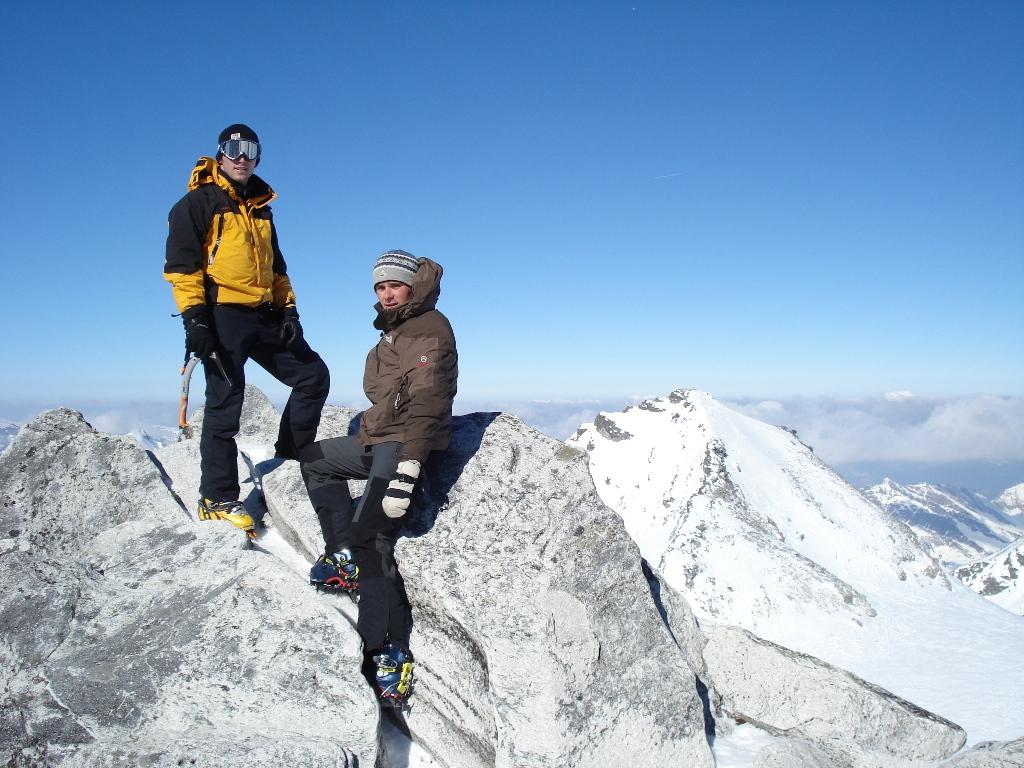 Der Tag brachte wirklich ab 10.30 reinsten Sonnenschein und nebenbei noch die eine oder andere Überraschung (Steigeisenzackenbruch, Kraxeleien, Horden von Schitourengehern).