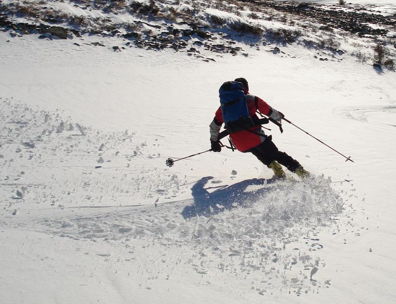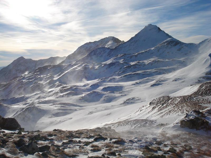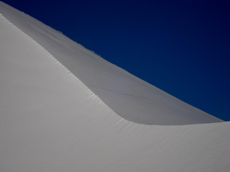 Verhältnisse: wieder Erwarten gute Bedingungen in allen Schneearten (vielleicht auch mit Glück kein einziger Steinkontakt bei der Abfahrt!); stürmischer Westwind!