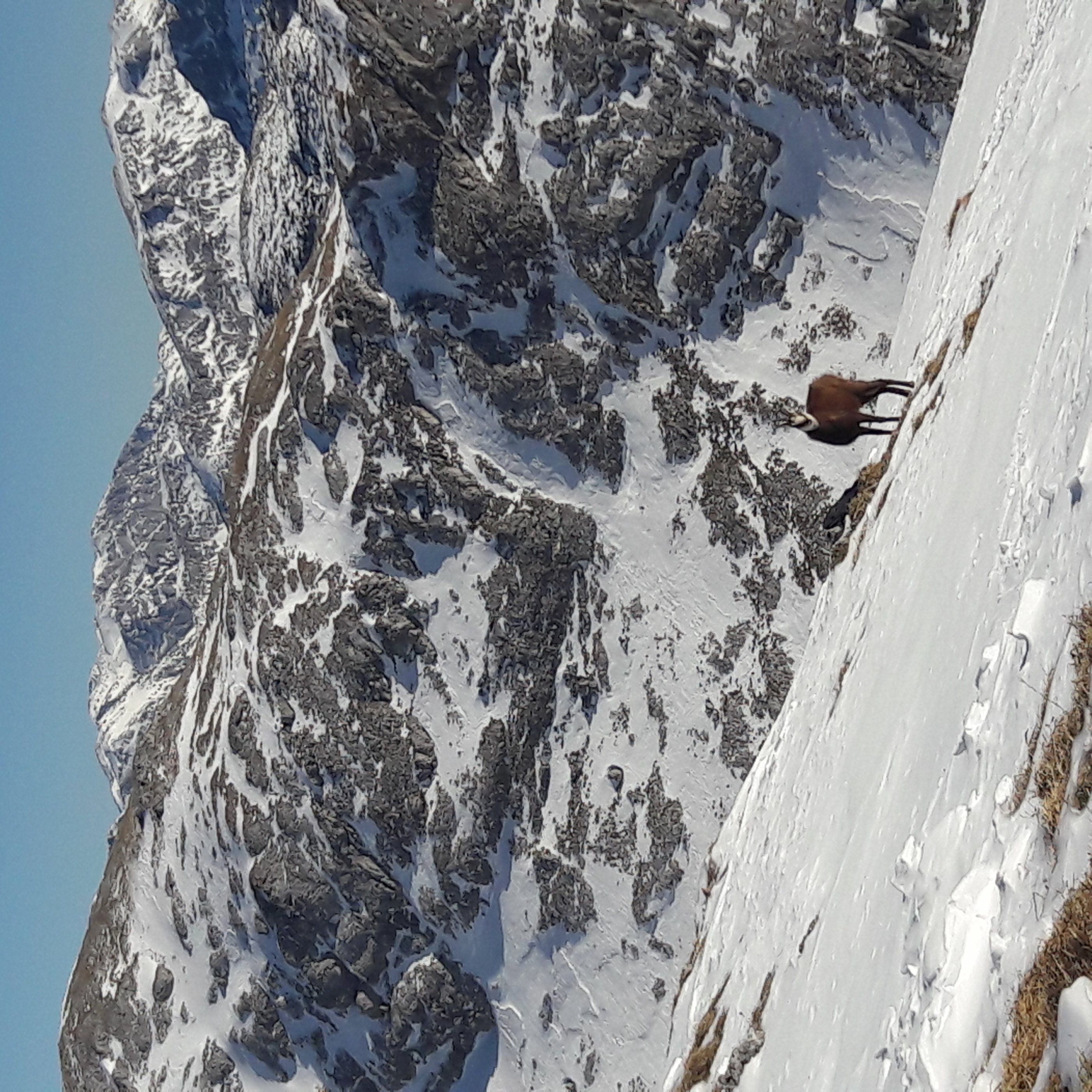 Aus den steilen Südwänden vom Hohen Brett hat es minütlich gekracht, die Lawinen ergossen sich wie grosse Wasserfälle. Die Sonneneinstrahlung macht sich jetzt auch in grossen Höhen bemerkbar. An den steilen Leiten vom Ruck gingen Rutscher bis zum Grund ab.