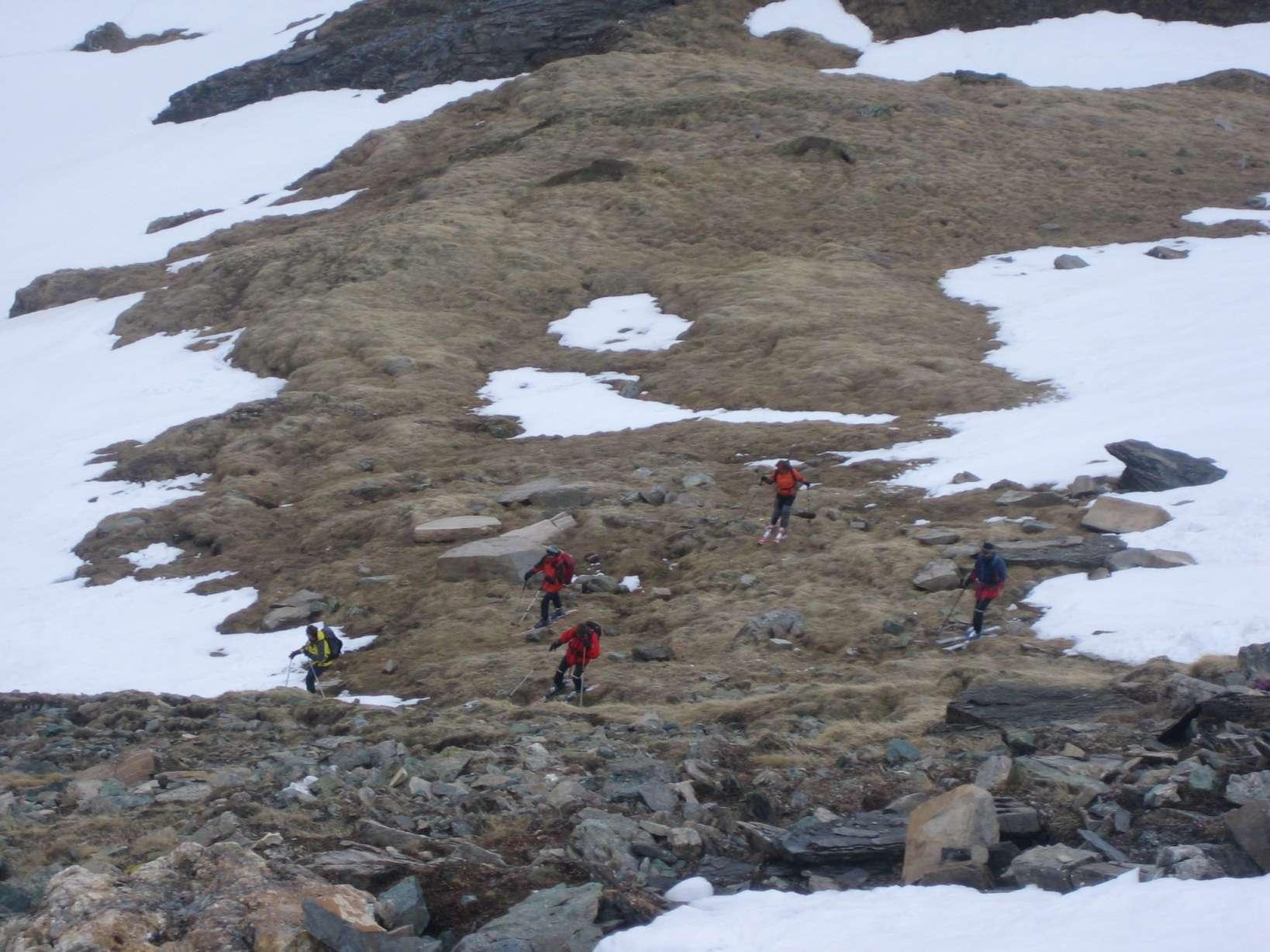 Brennkogelscharte, dann flache Querung in die Mulde unterm