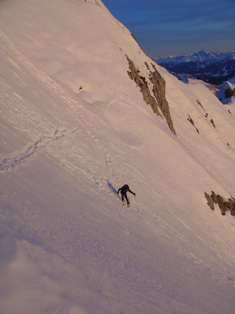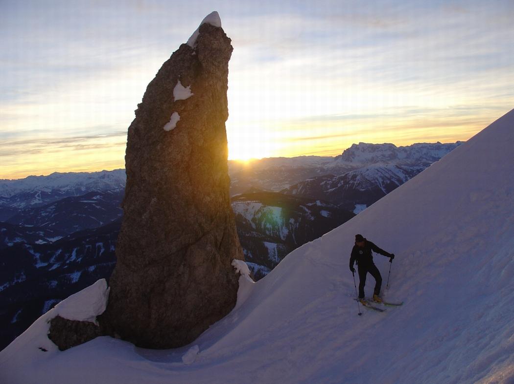 Heute brach ich mit Hannes um 13:30 von Lungötz über den Schichlbauer über das Sulzkar zum Kampl und weiter zur Kleinen Bischofsmütze auf. Beste Bedingungen, in der Westwand noch ein wenig Anraum vom letzten Stau. Abfahrt über die steile Südflanke zum Kampl ( zu spät, daher schon Bruchharsch ) Im Sulzkar war orogr. links noch bester Pulver zu finden, ebenso bei der Abfahrt zum Schichlbauer.