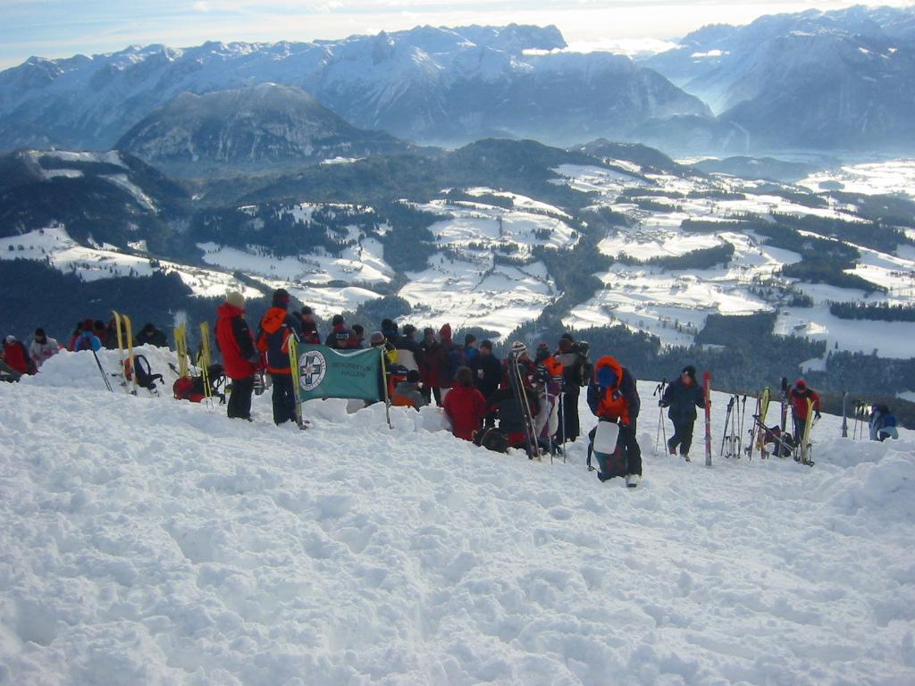 Trotz des Lanwinenabganges in der Schlenkenrinne besuchten viele Freunde den Schlenken. Die Bergrettung Hallein war am Gipfel vertreten und wärmte die Gipfelstürmer...