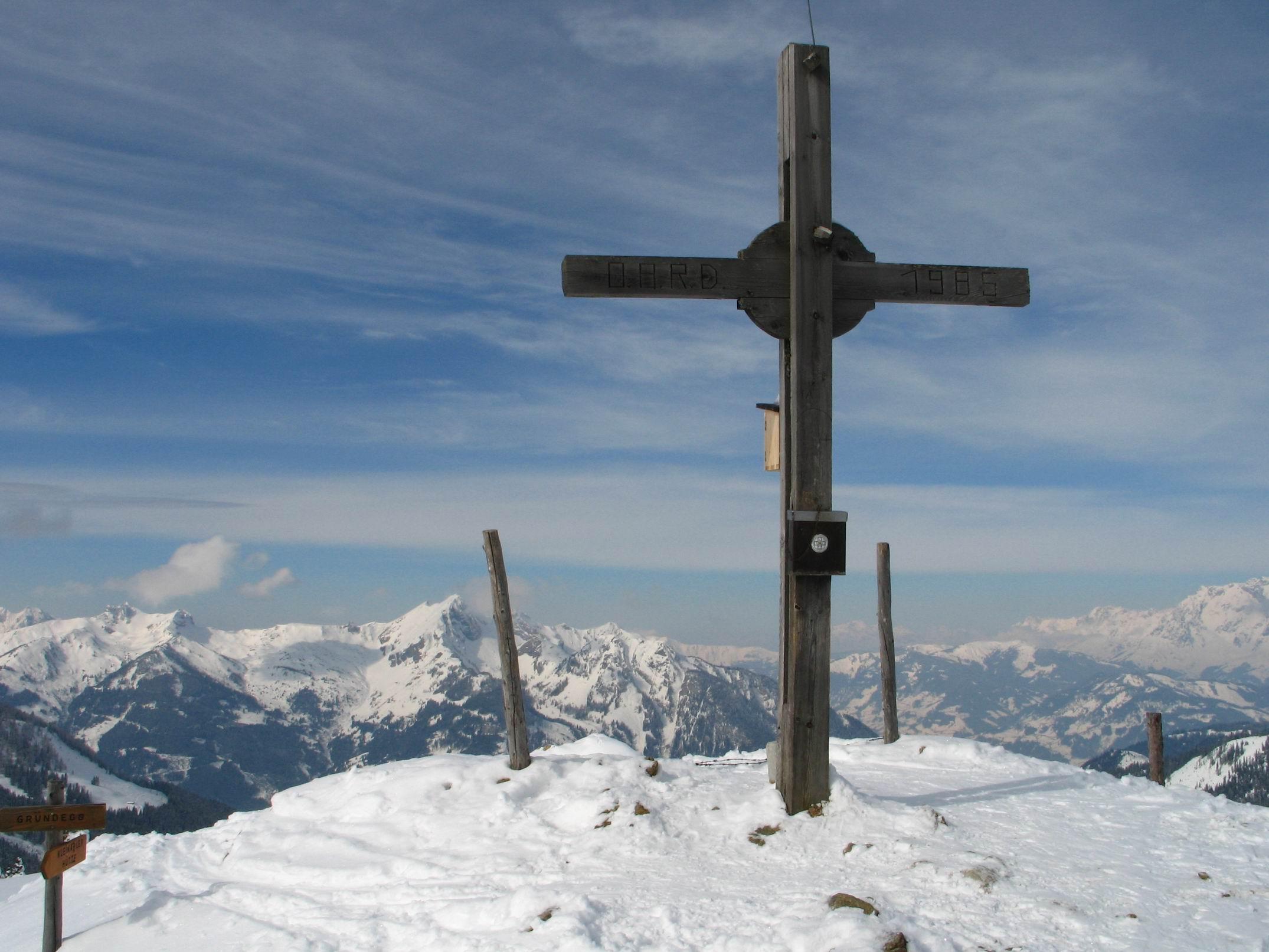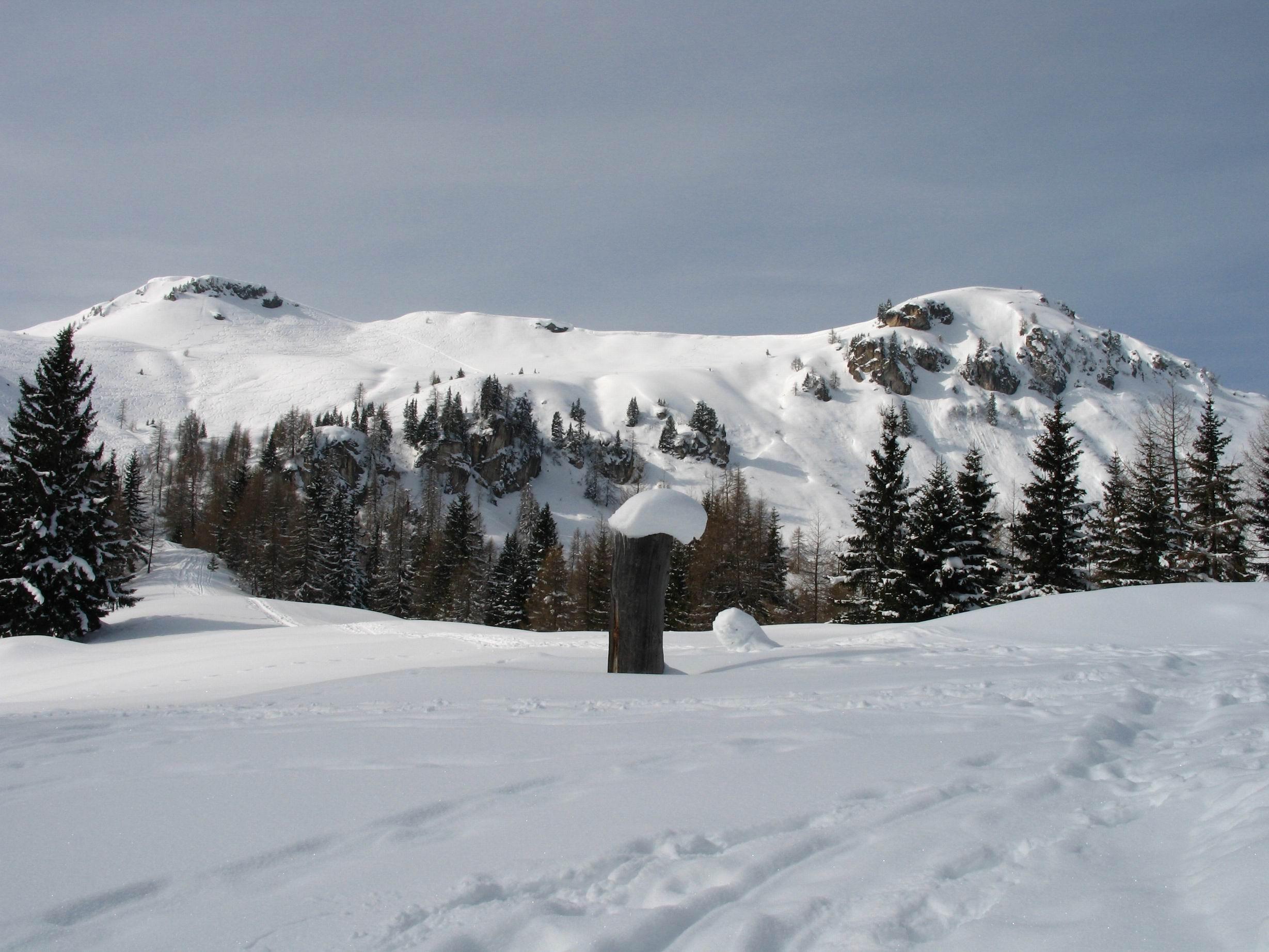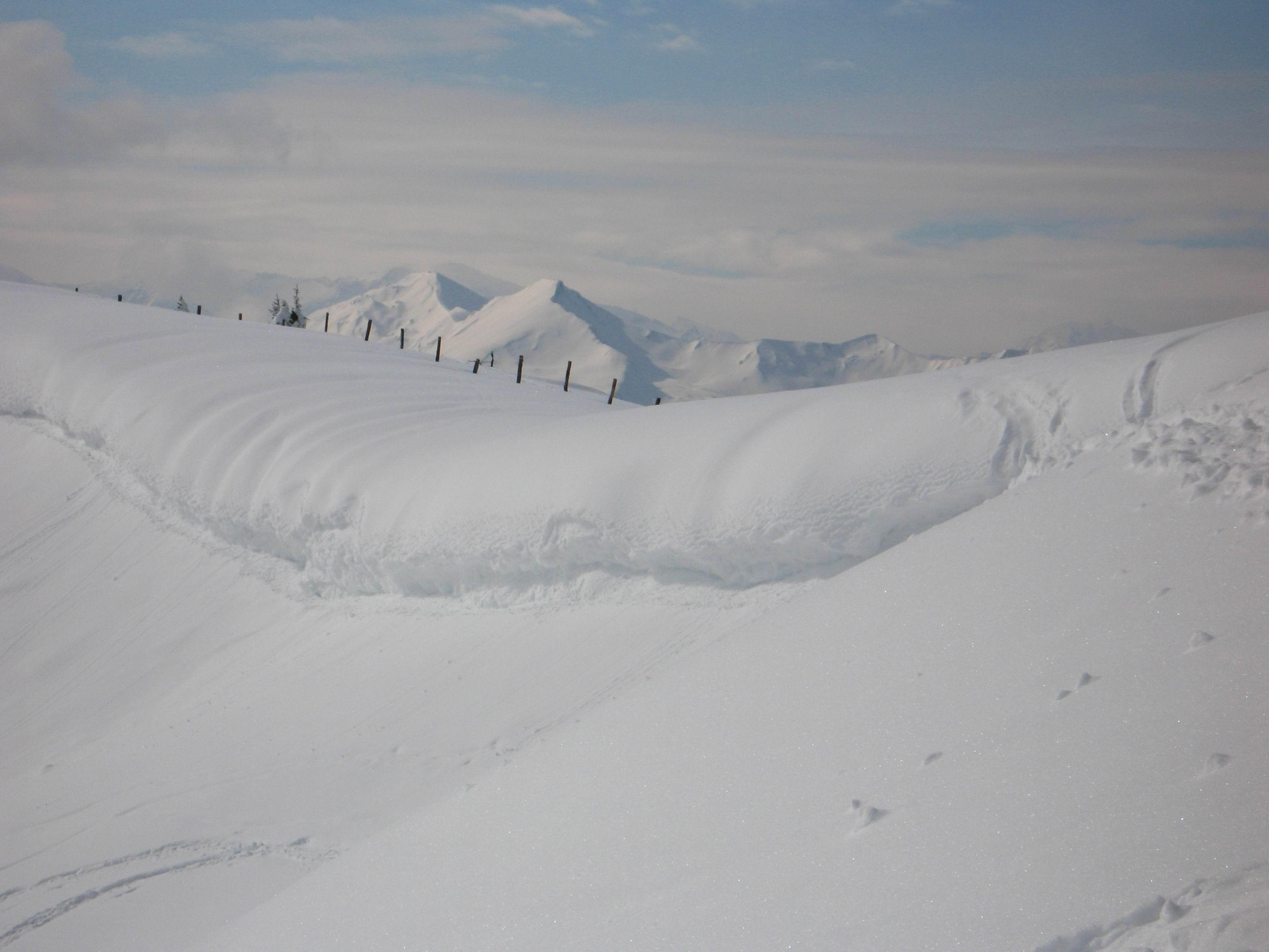 Von Kleinarl gings über die Kleinarler Hütte auf den Penkkopf . Sonnseitig hatte der Schnee bereits einen dünnen Harschdeckel, aber nicht tragfähig. Trotz stark verspurter Hänge gibt es immer noch Abfahrten im unberührtem Pulverschnee.