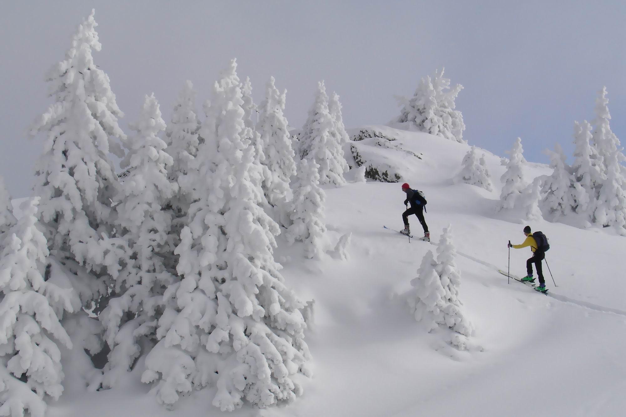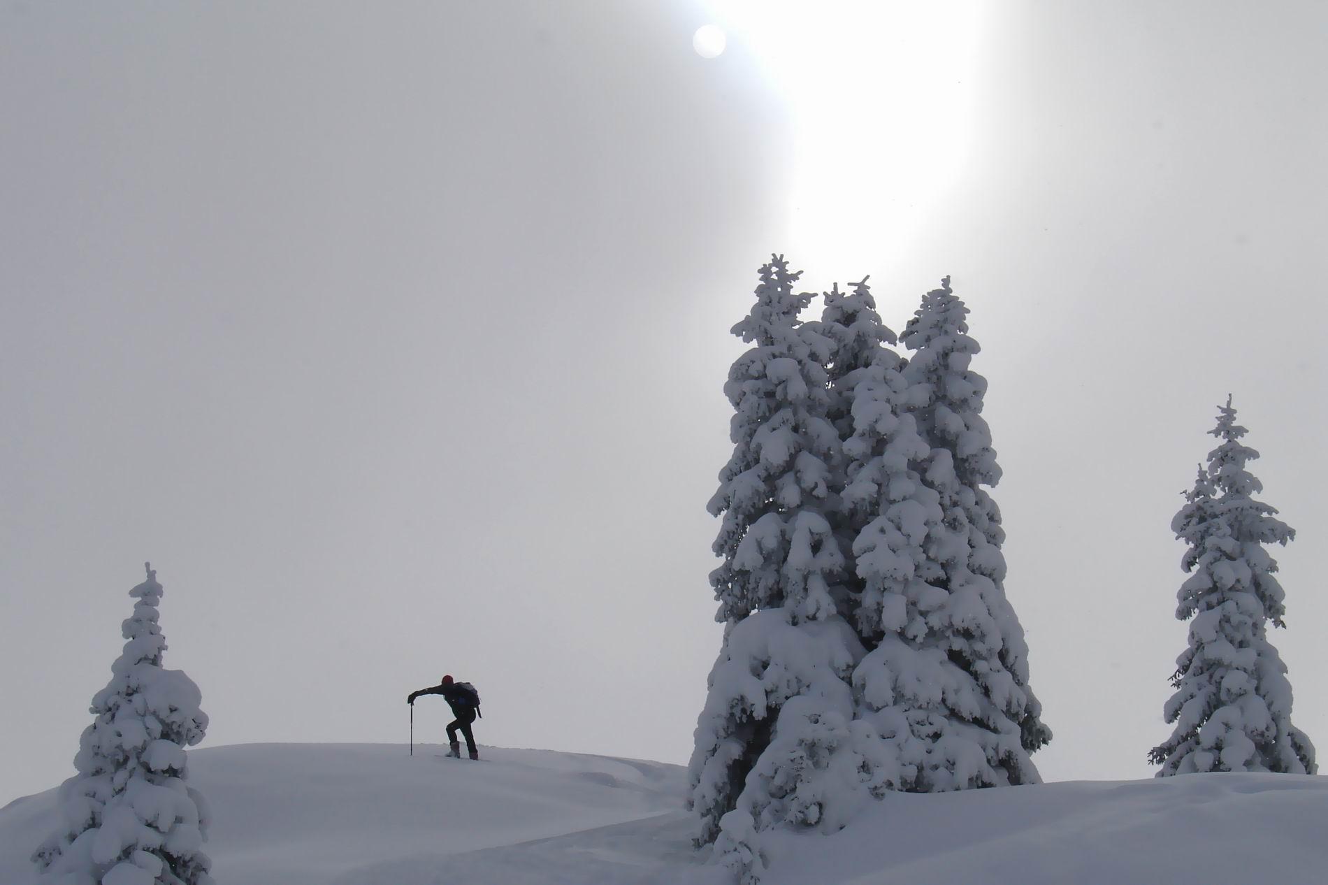 Wieder einmal von Unterberg aus auf die Schwalbenwand. Teils sonnig, teils nebelig, ca 15cm Pulver auf tragendem Untergrund, großartige Verhältnisse, schöne Stimmungen.