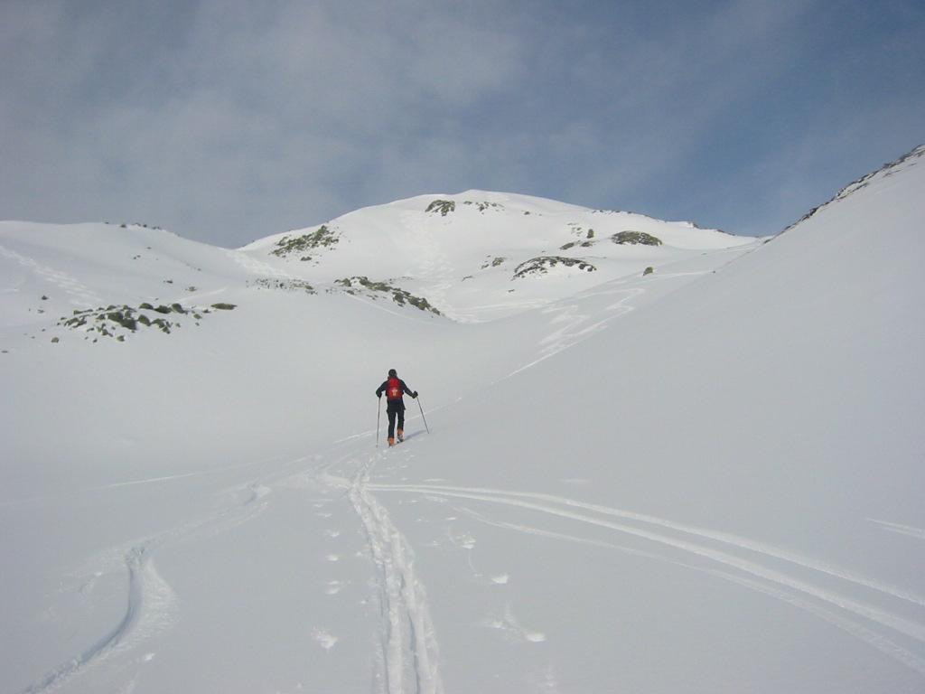 Winteraubildung des AV Hallein Als krönender Abschluss ging es von der Skiarena Wildkogel zur Frühmesserscharte und weiter in den Dürrrnbachgraben. Unverspurt weiter zum Steinkogel und danach Abfahrt zur Steineralm und über die Taubensteinwiesen zurück ins Ortszentrum von Neukirchen.