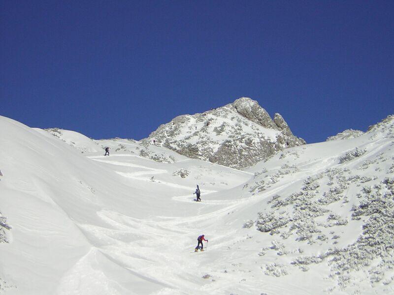 Aufstieg über die Normalroute von Astauwinkel. Im oberen Bereich lag die neue, geringe Pulverschneeauflage auf einer harten, tragenden Harschschicht. Eine Verbindung zu dieser Schicht war nicht gegeben. Die Abfahrt erfolgte über die Stuhlalm. Schneeverhältnisse dort ebenfalls eine tragende Schicht mit 15 cm Pulverschnee.