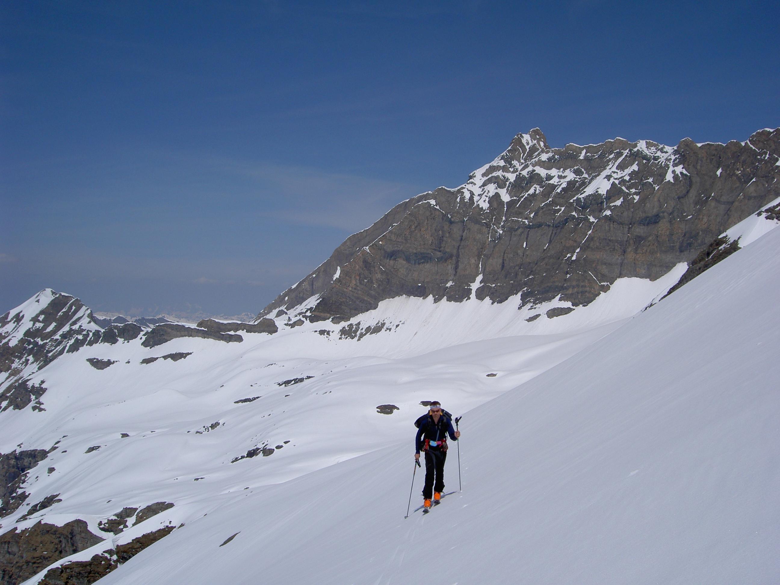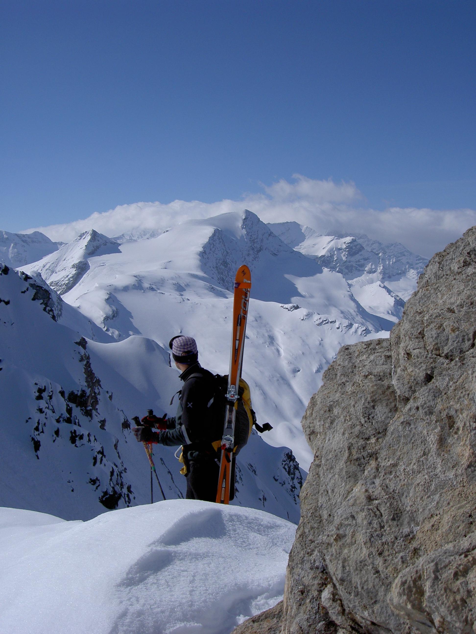 Mit der Gletscherbahn in Kaprun und dem Maurerlift bis unterhalb des Großen Schmiedinger. Von dort abseilen in Richtung Wintergasse und weiters Abfahrt in teilweise steilem Gelände. Bei der Wintergasse unter dem Maurerkees queren in Richtung Geralscharte. Zum Schluß über das Obere Hocheiserkees auf den Hocheiser. Abfahrt Richtung Enzingerboden.