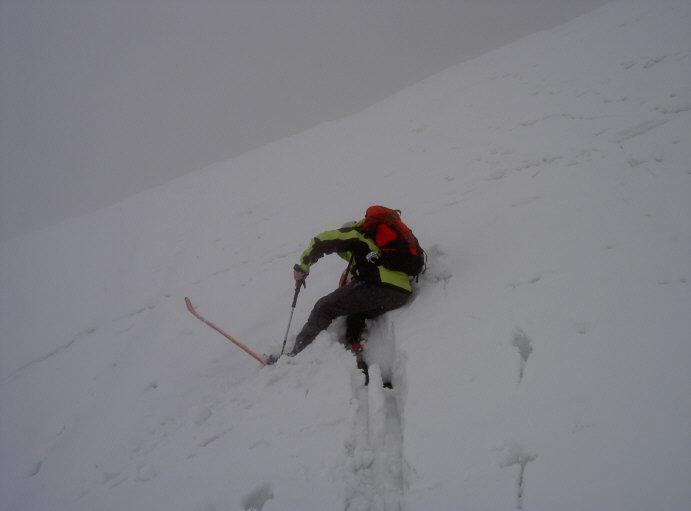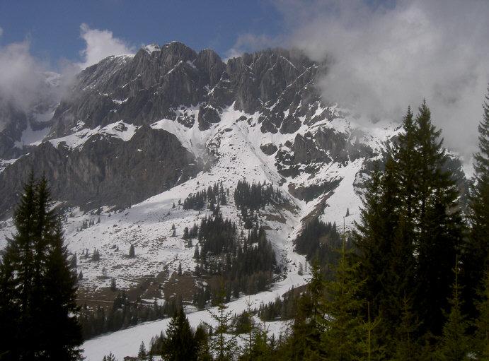 Schitourenwochenende auf der Sporta-Hütte: Regen (anfangs bis auf über 2000 m) und Nebel verhinderten eine Schitour auf den Hochkönig. Die Alternative: Schitour vom Mitterberg über das Brandholz an den Fuß der Mandlwand und Ggenanstieg auf den Hochkeil. Verhältnisse: Trotz starker Durchfeuchtung ganz passable Bedingungen.