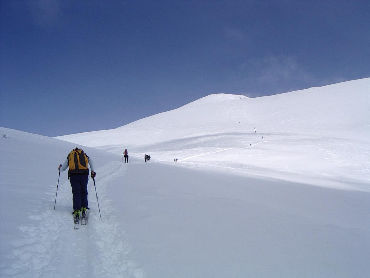 Wetter-Schnee und Lawinensituation im Lungau momentan günstiger, daher der Preber,2740m, (Schladminger Tauern) unser Ziel. Sonnenschein, beinahe windstill, ca. 15 -20 cm Pulver, beste Tourenbedingungen, der übliche Aufstieg vom Prebersee aus, fernab jeder Lawinengefahr.