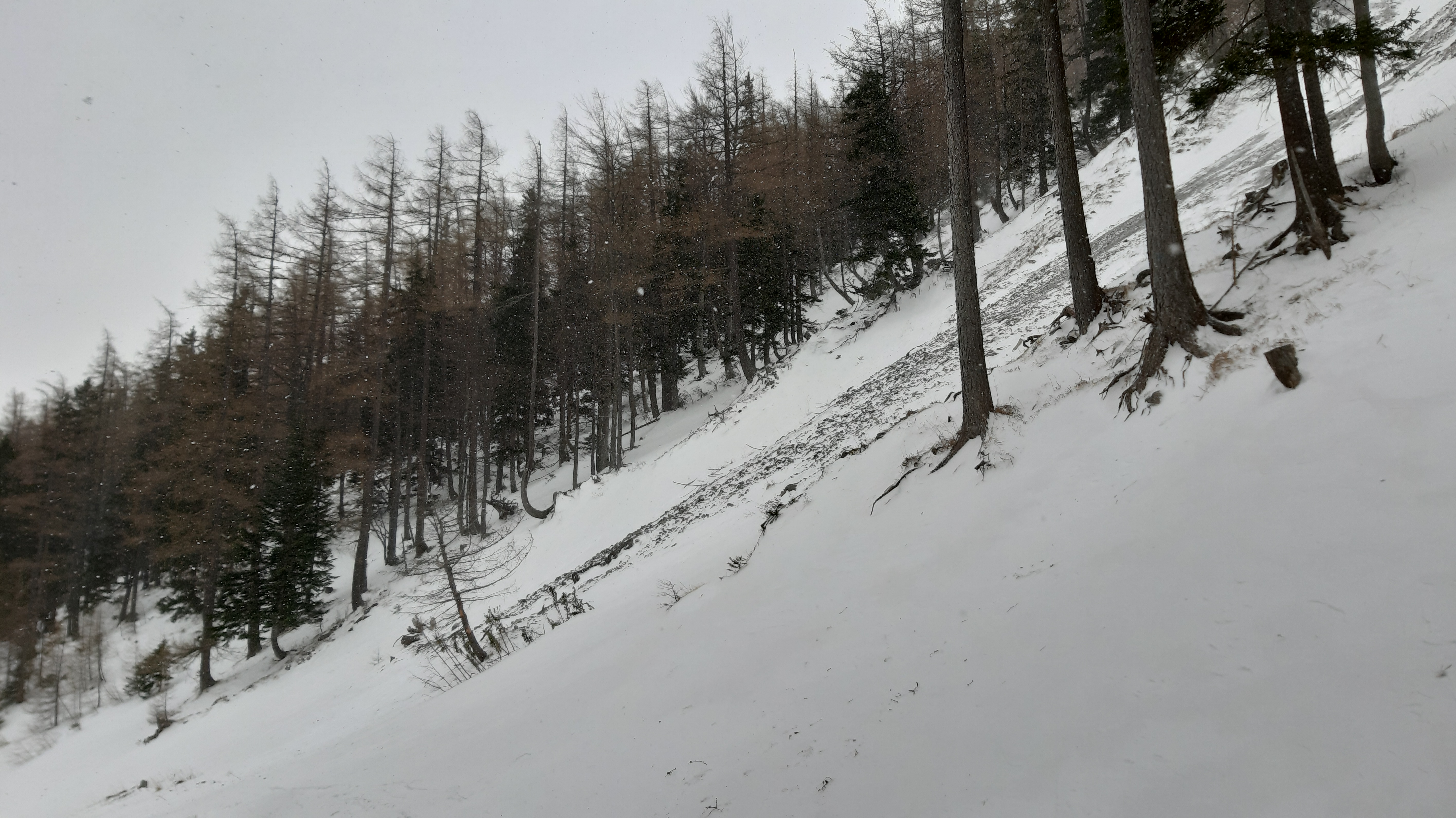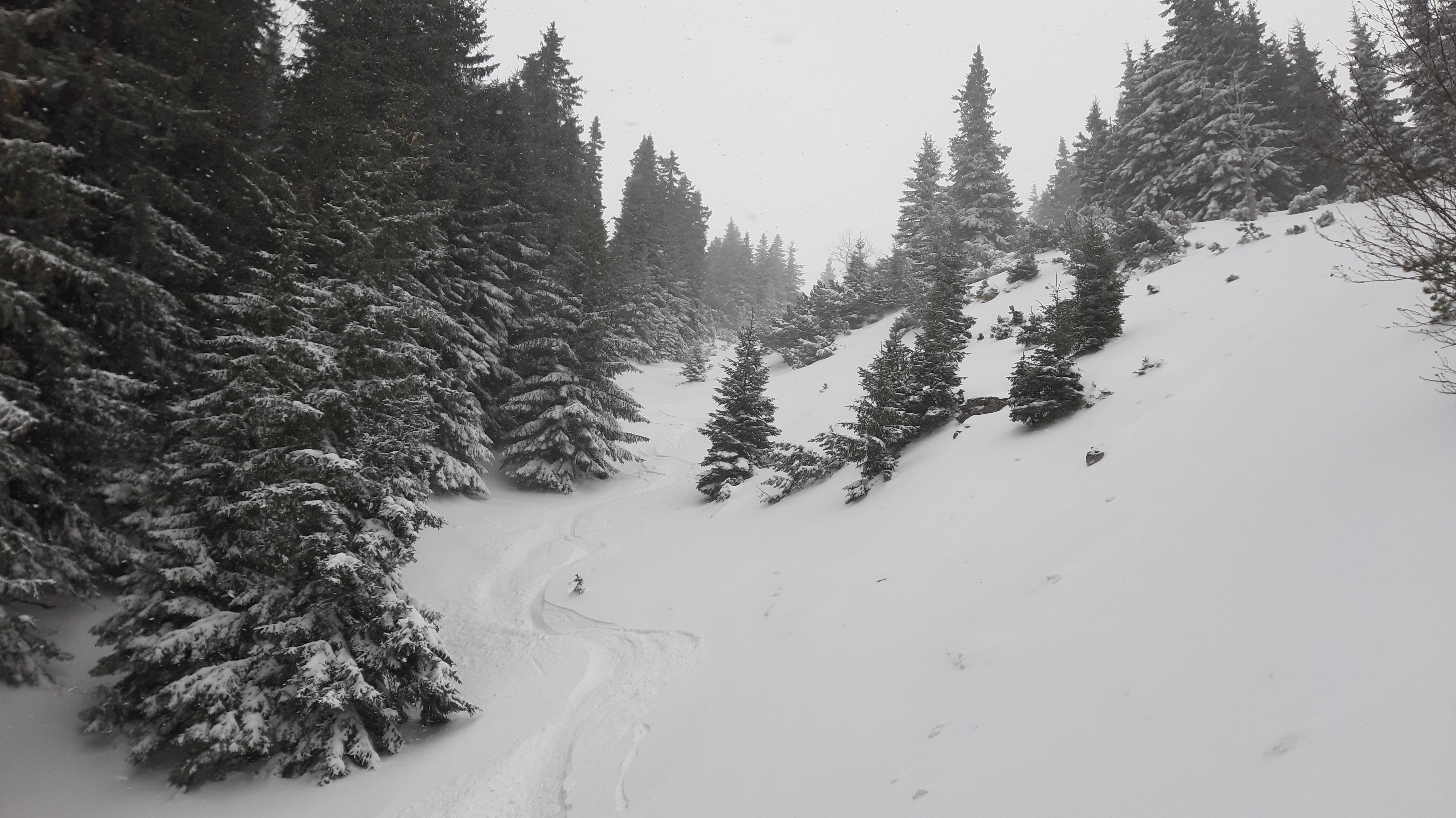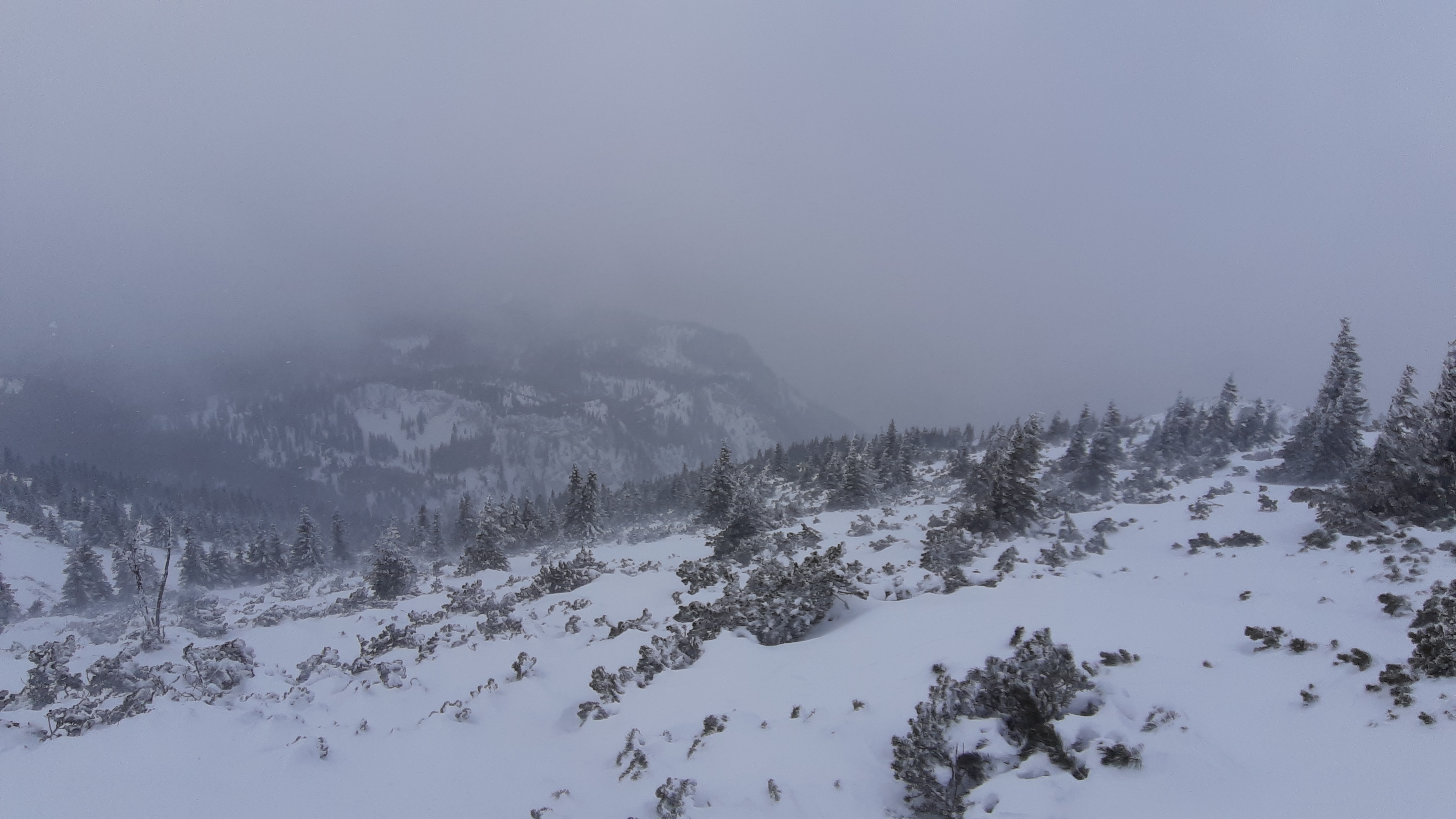 Erkundungstour zwecks Schneelage hat sich als Pulvertagerl entpuppt. Genug Schnee für Aufstieg und Abfahrt aus dem/ins Klostertal. Ab dem Fadenweg: Aufstieg Fadenschneise, Abfahrt Fadengraben, Aufstieg Hoyosgraben (rechter Rücken), Abfahrt Hoyosgraben. Alles unverspurt, außer dem Aufstiegsgraben. Wir sind genau 4 Personen begegnet. Oben hat sich der Schneeberg grimmig gezeigt: Sicht ok, aber Schneefall, Sturm, alles abgeweht, Latschen und Steine heraußen, kein Gipfel heute. Die Gräben gut mit Pulver gefüllt, aber Achtung: Schneebrett (paar Tage alt) in den Hoyosgraben hinein zeigt, dass die seitlichen Einfahrten vorsichtig beurteilt werden müssen. Nicht allzu kalt: um die 0 Grad.