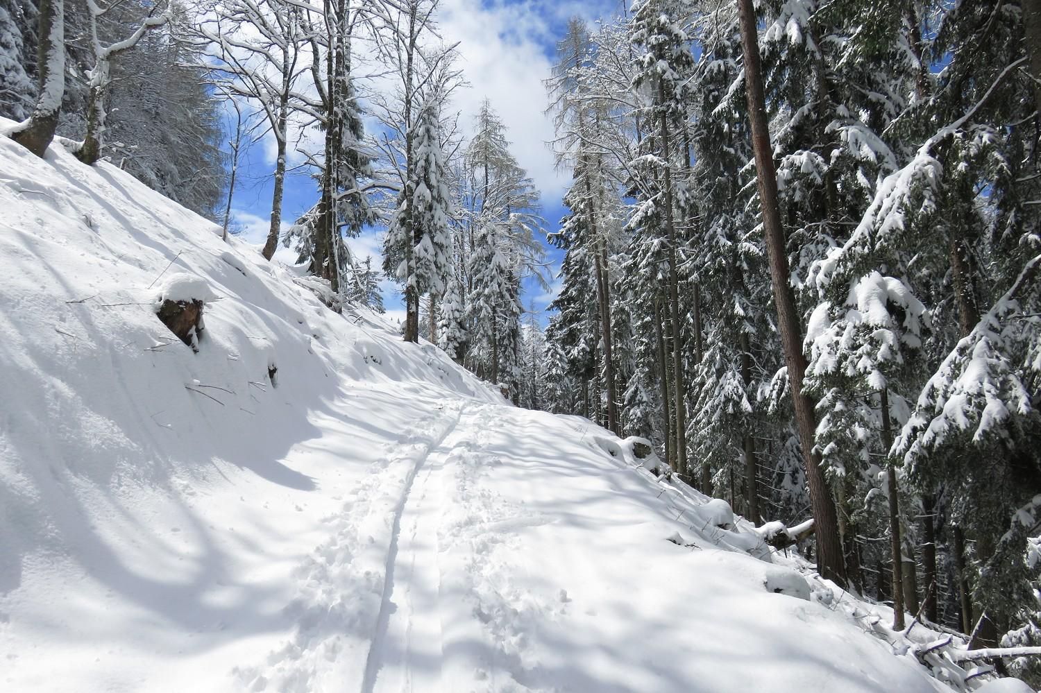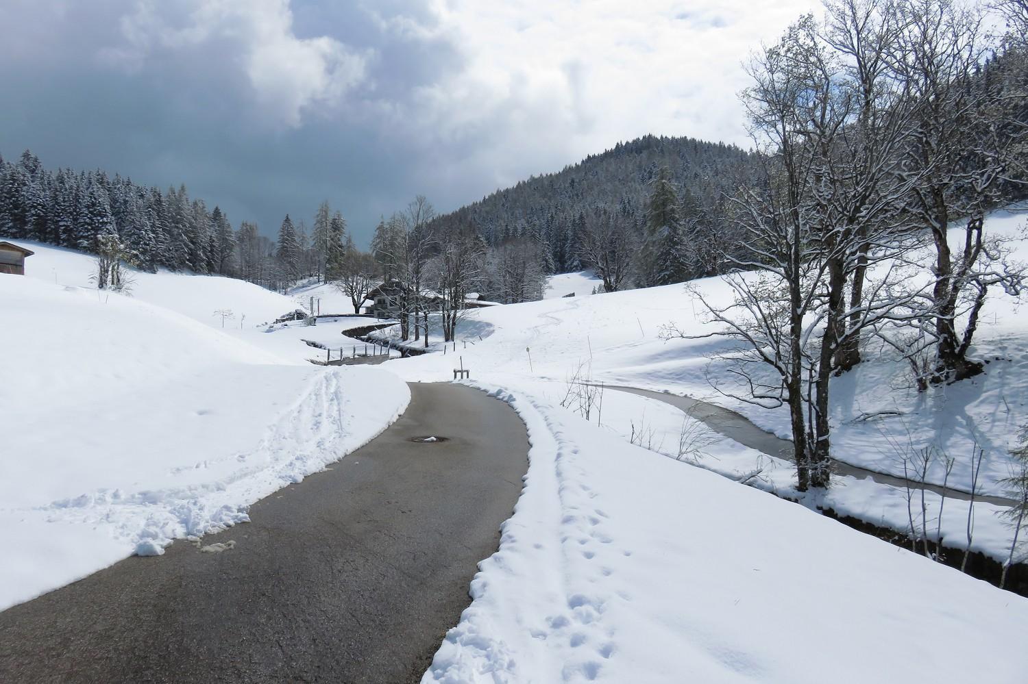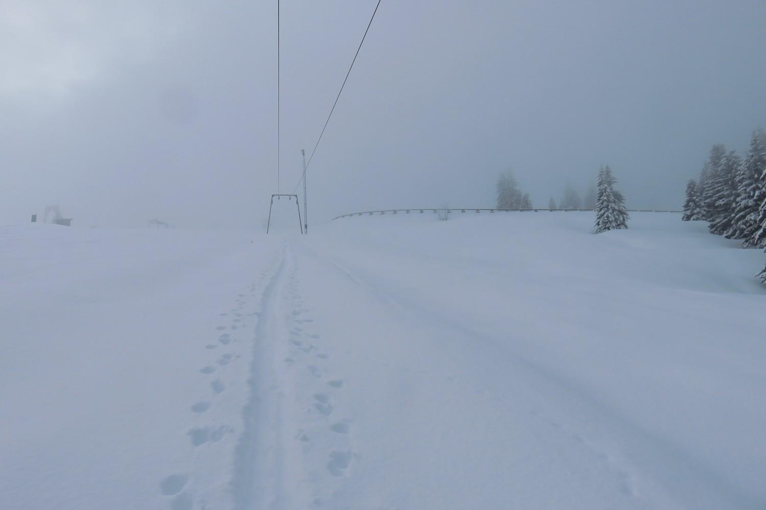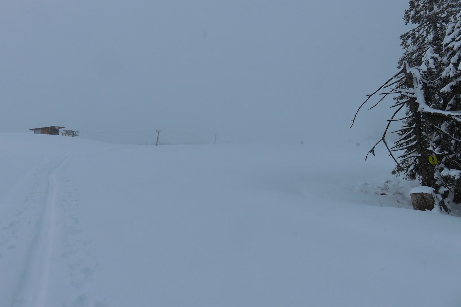 Start an der Mautstelle, bis zum Gipfel leichter Schneefall, aber es hat rechtzeitig für die Abfahrt aufgerissen. Runter bis kurz vor den letzten Hang vor Oberau (920 m), dann verlockte die Sonne, nochmals an der Mautstelle vorbeizugehen und zum Gipfel durchzustarten.