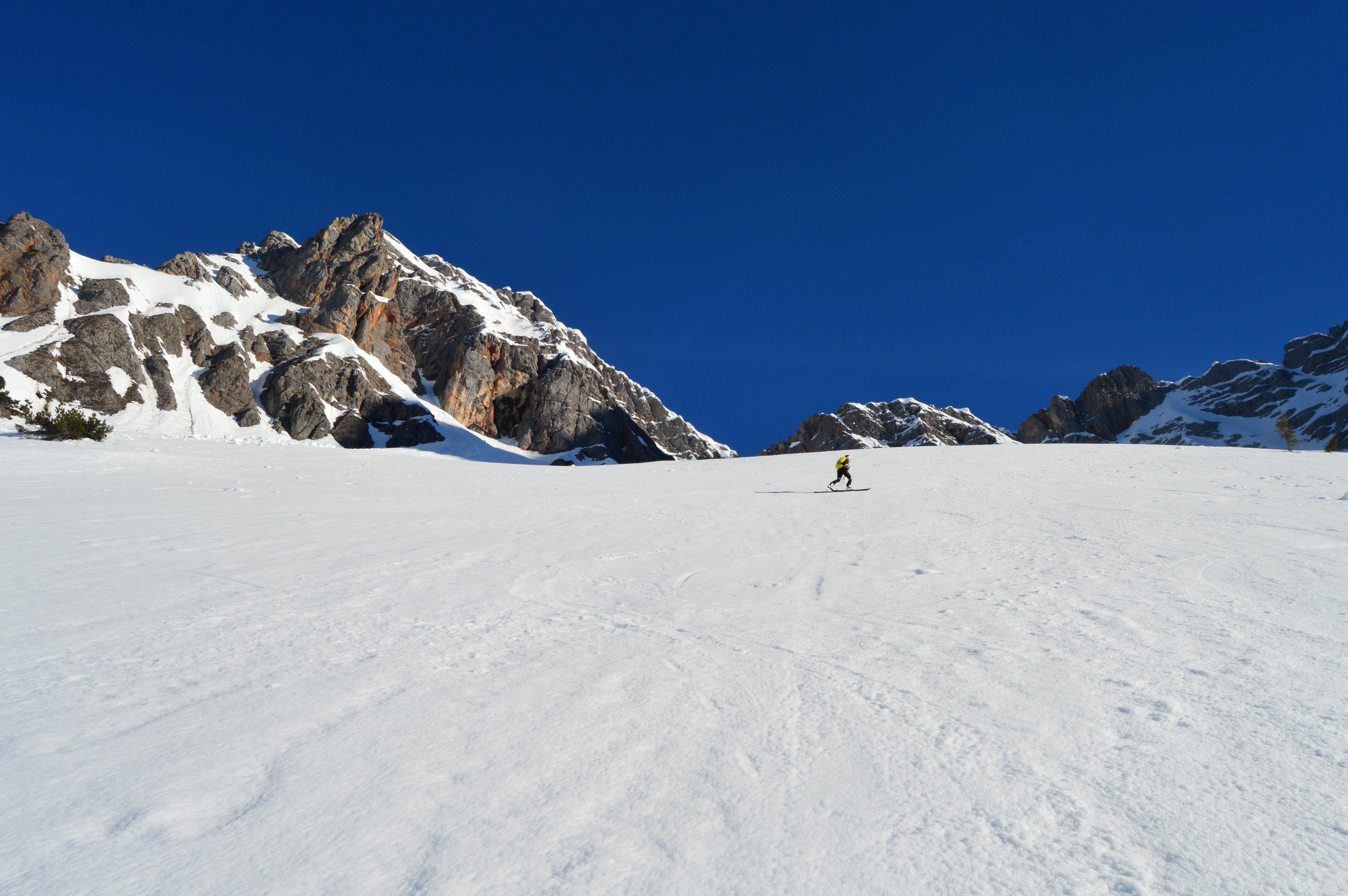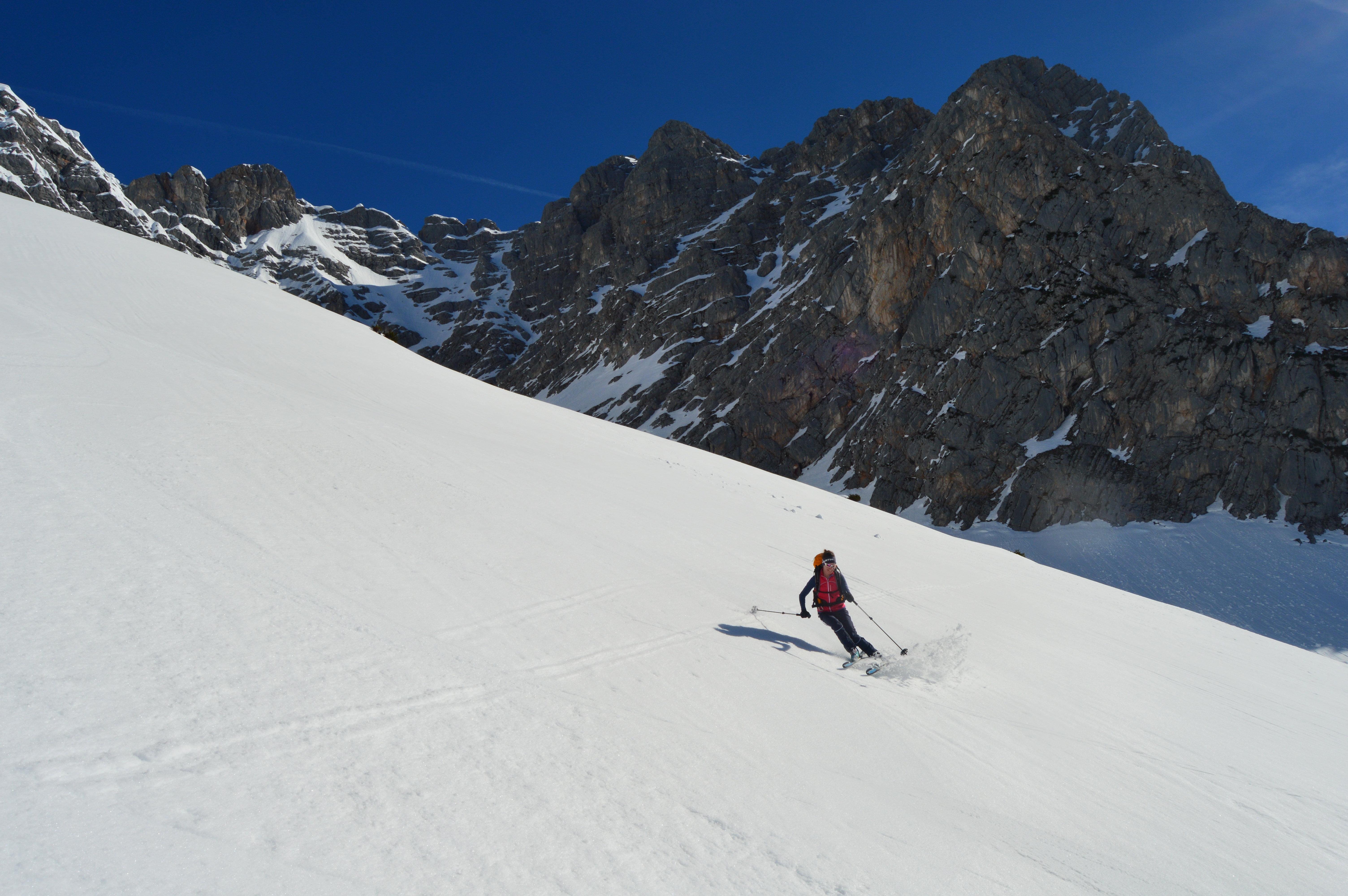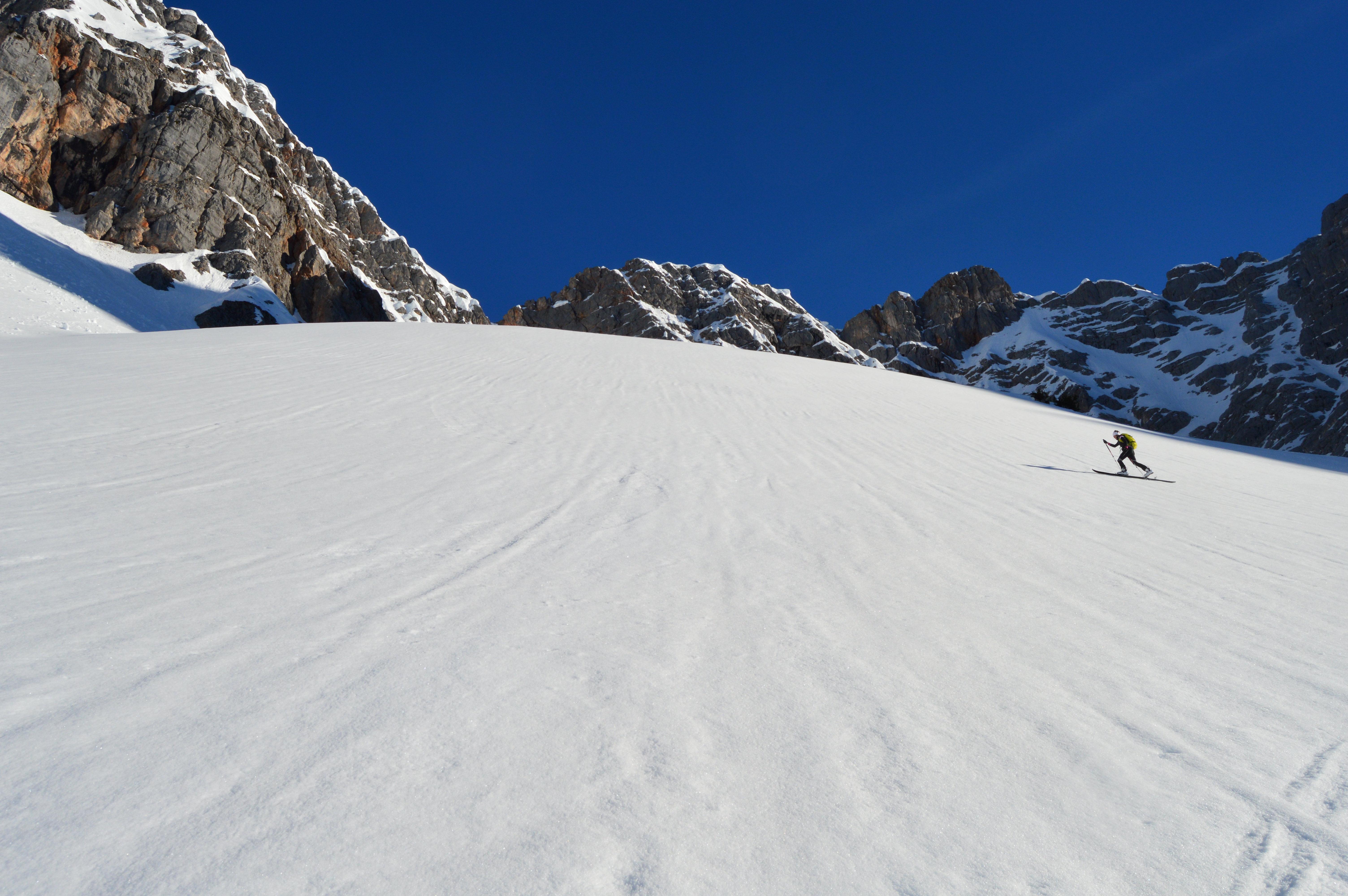 Im Steinernen Meer ist immer noch sehr viel Schnee auf der Südseite. Um 9.30 Uhr hatten wir perfekte Firnverhältnisse bei der Abfahrt - wieder mal die berühmten Zentimeter.