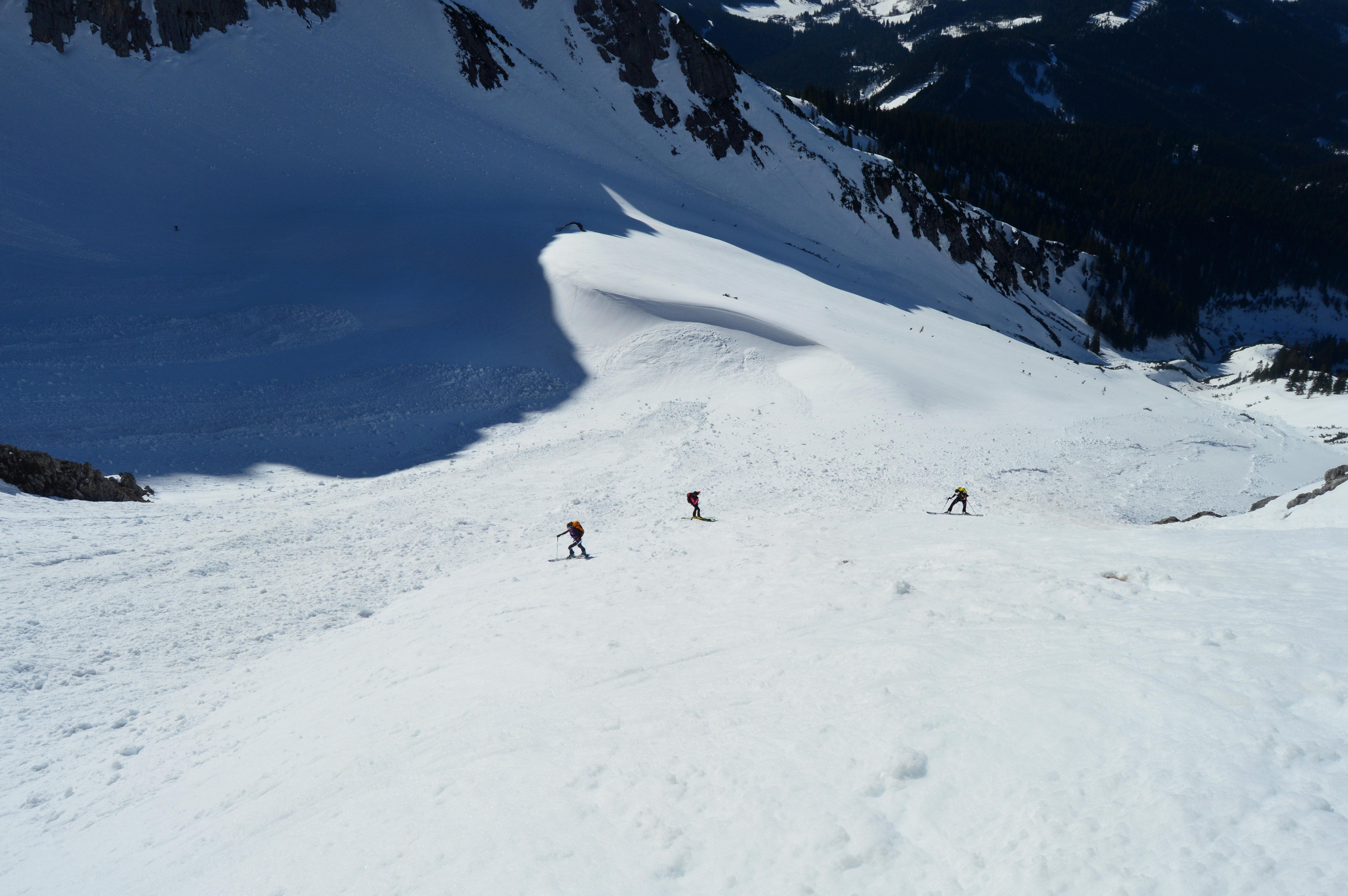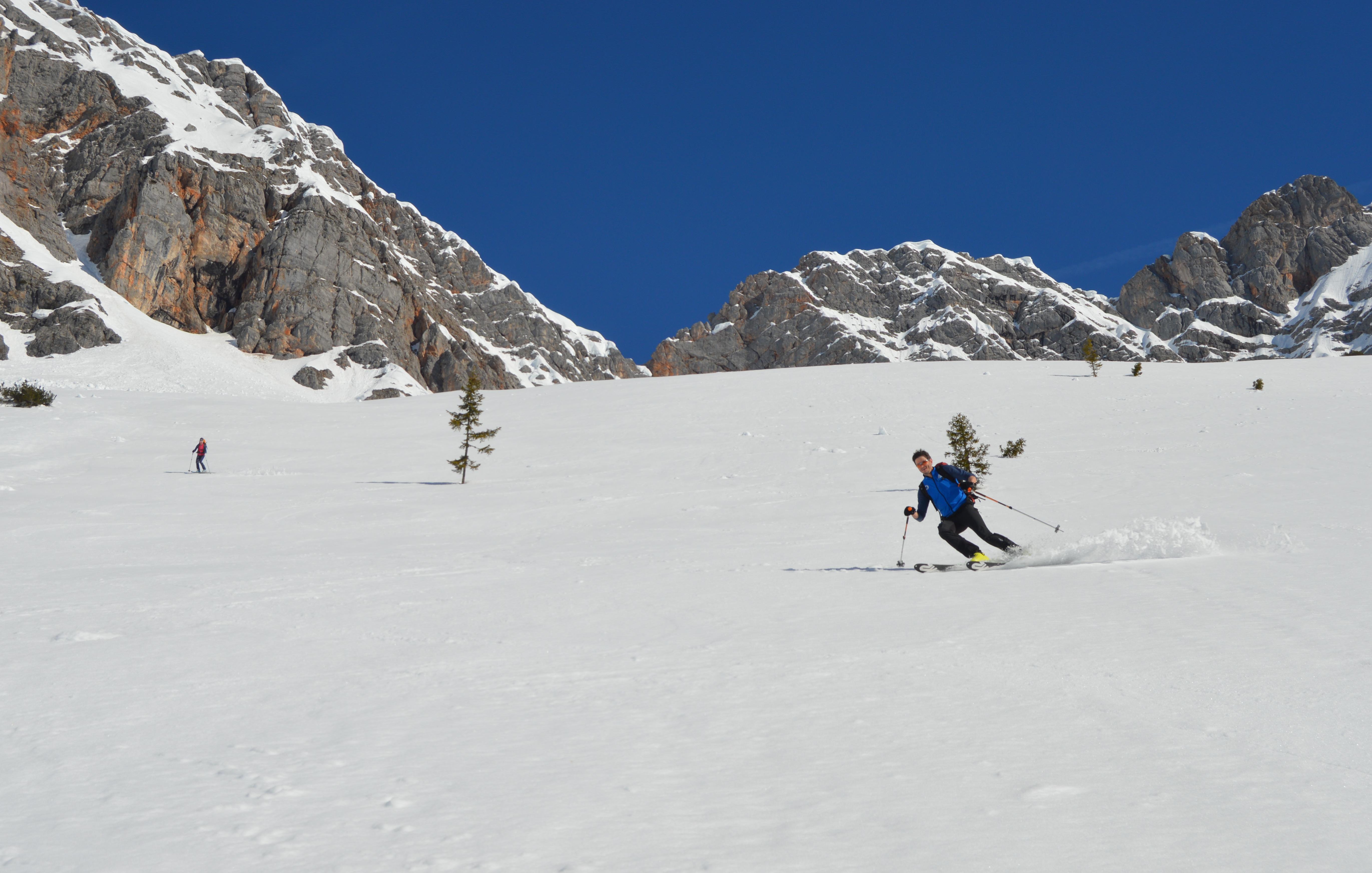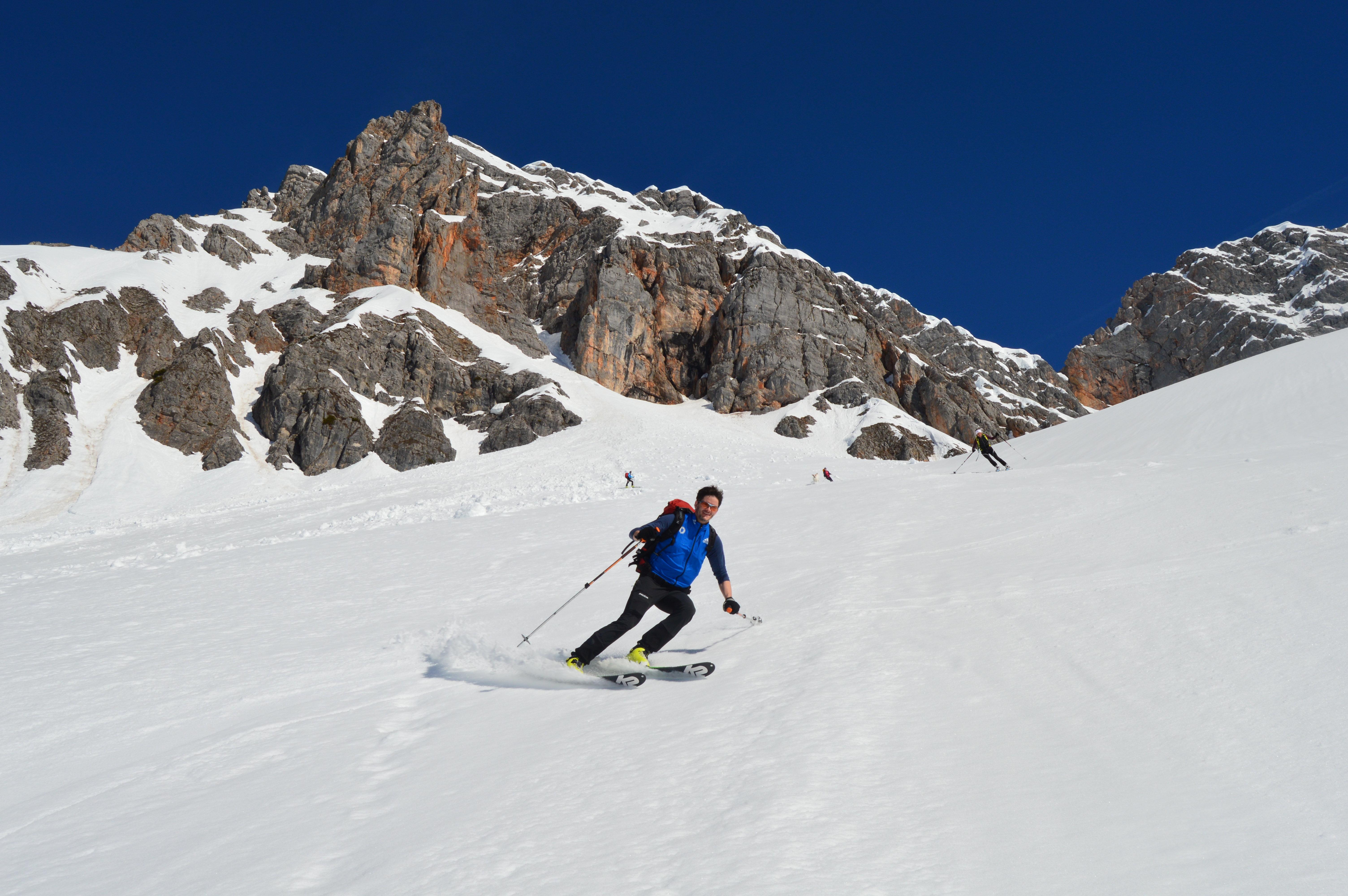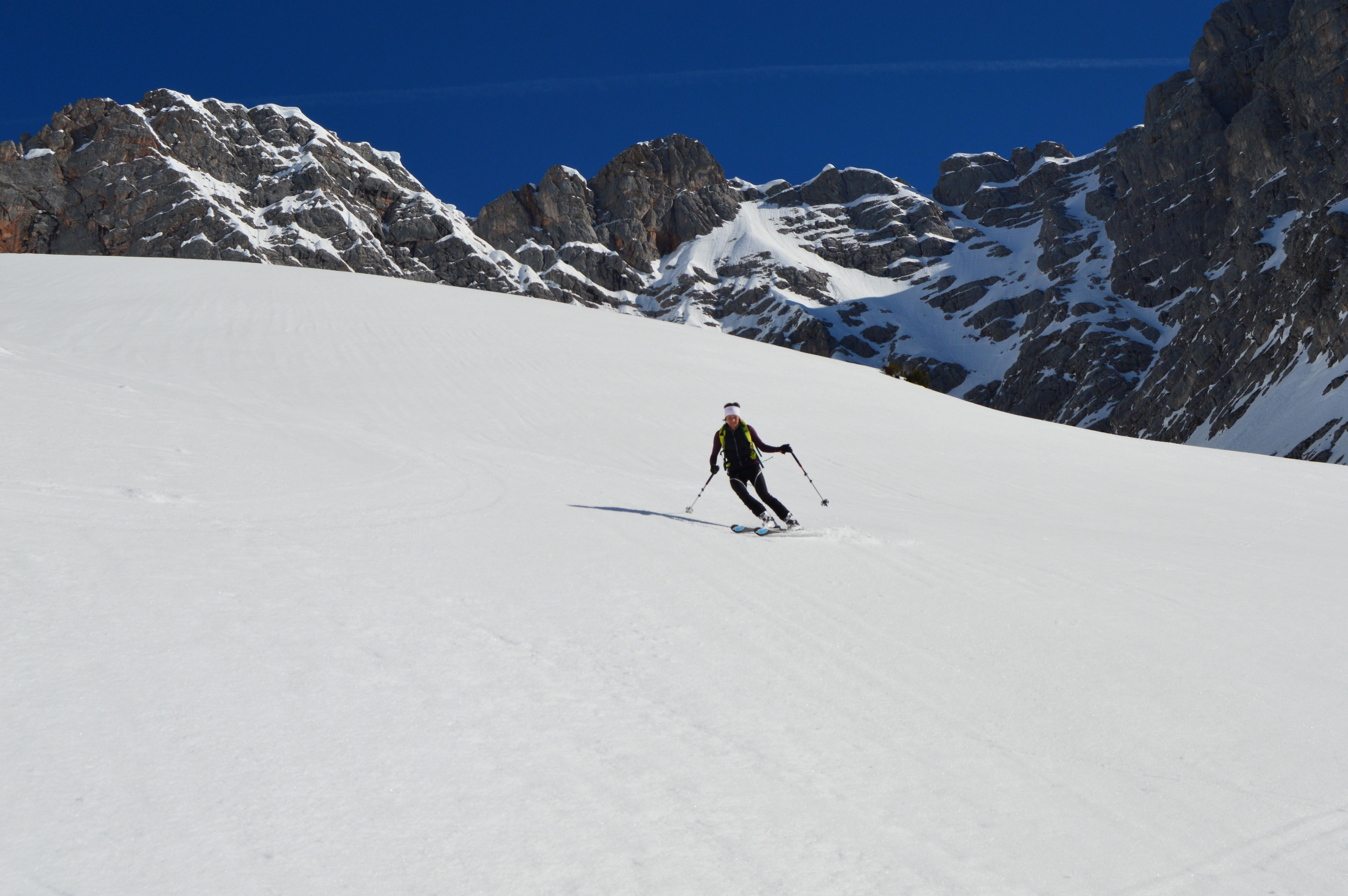 Im Steinernen Meer ist immer noch sehr viel Schnee auf der Südseite. Um 9.30 Uhr hatten wir perfekte Firnverhältnisse bei der Abfahrt - wieder mal die berühmten Zentimeter.