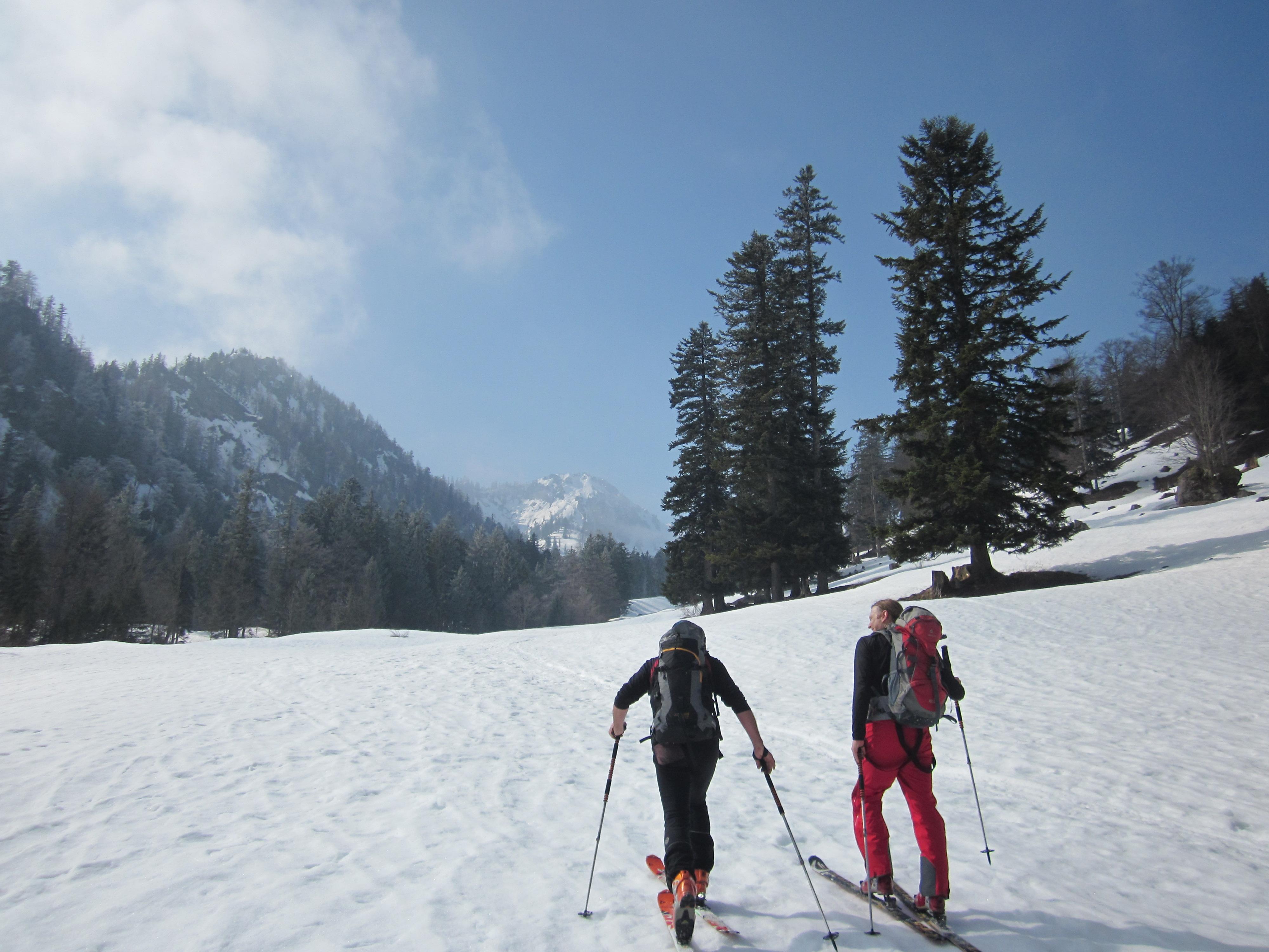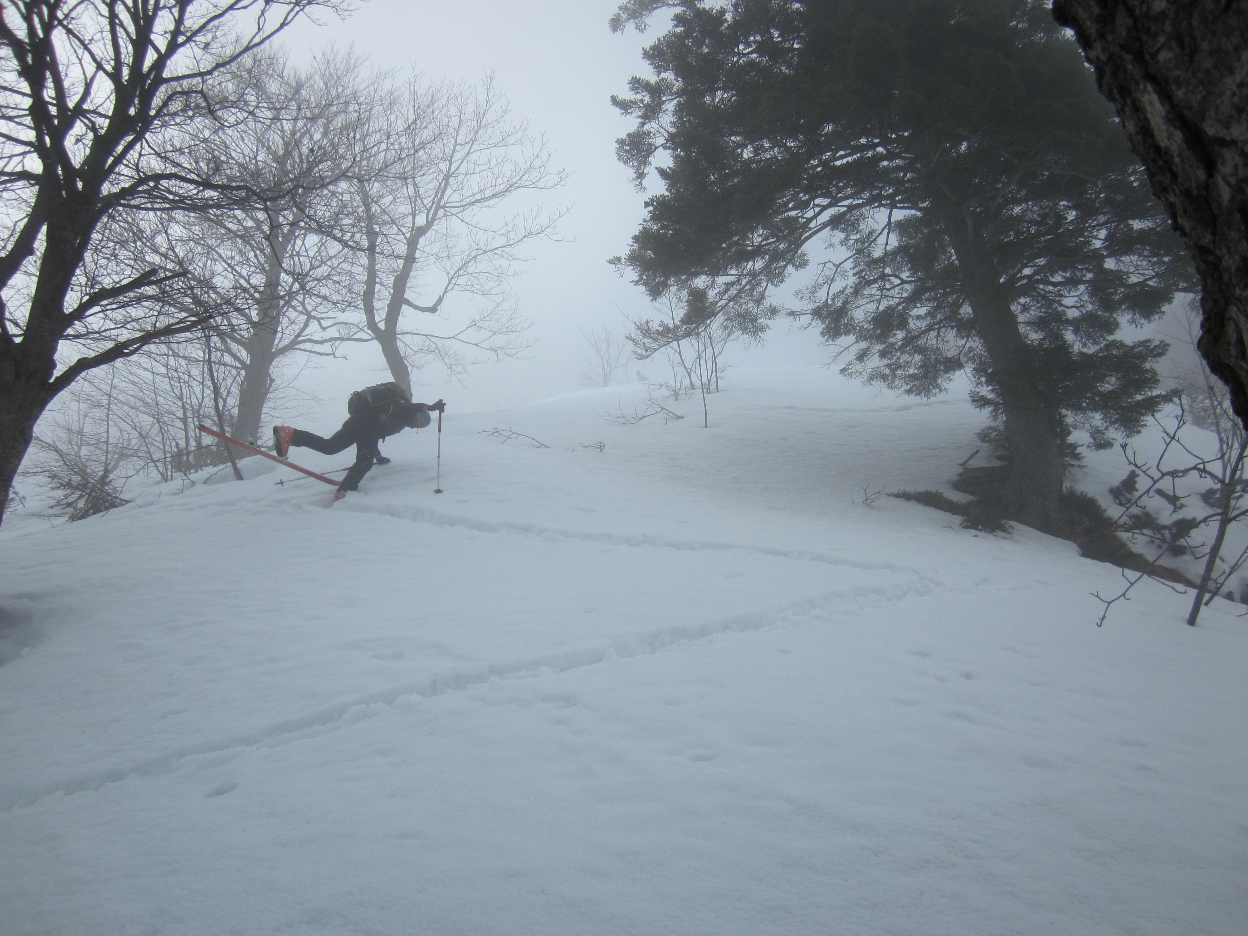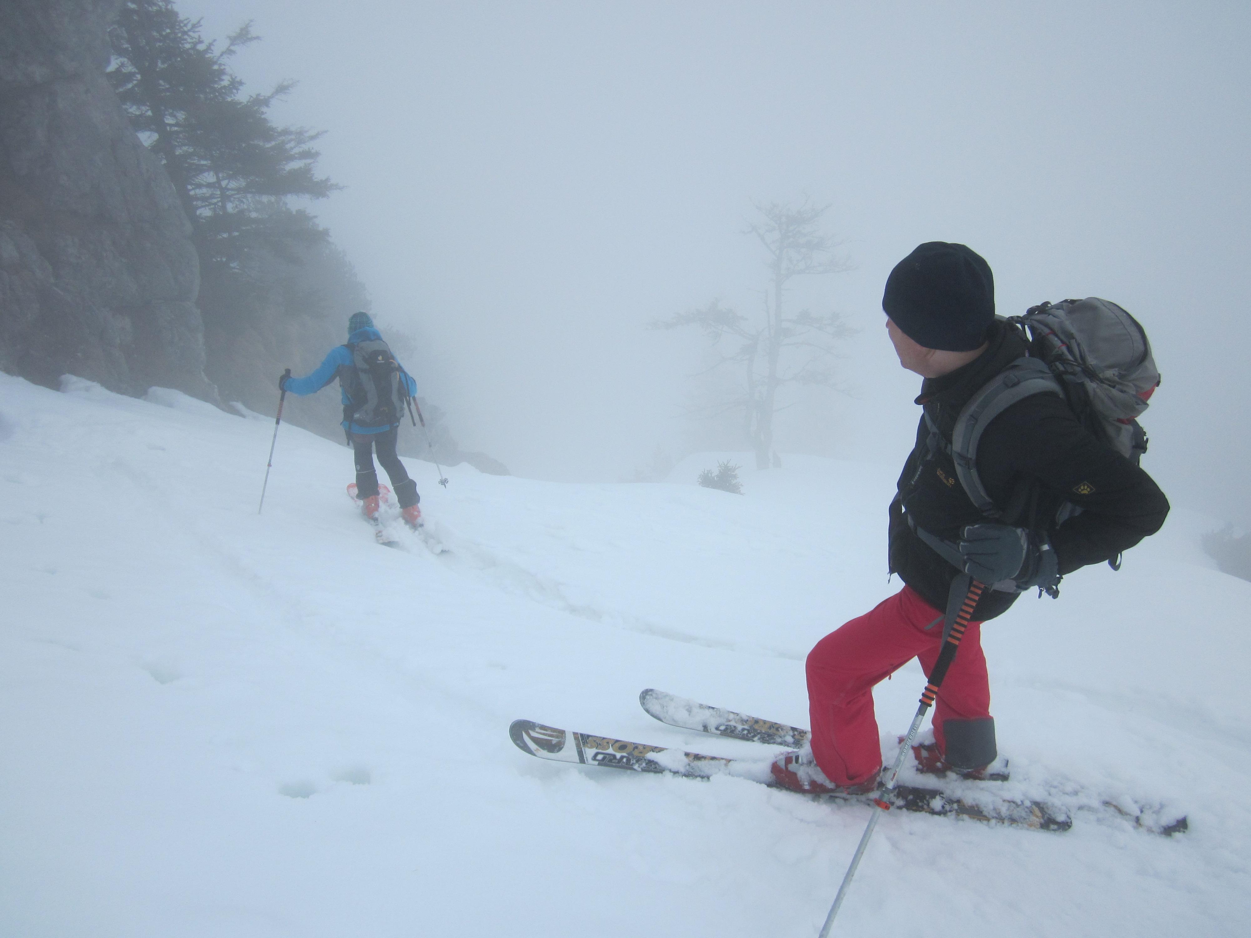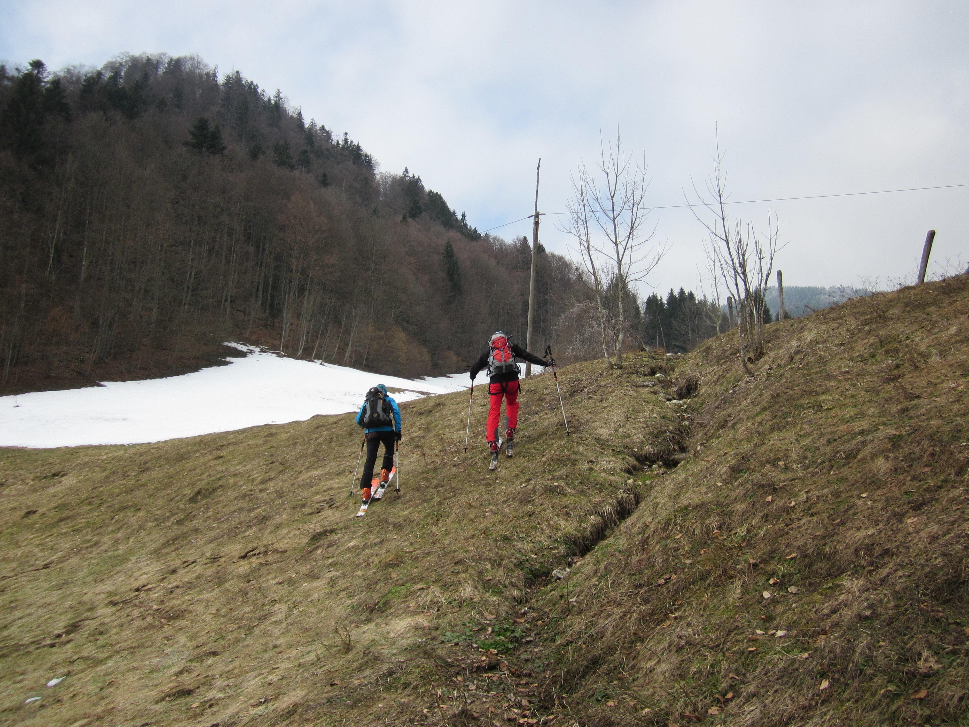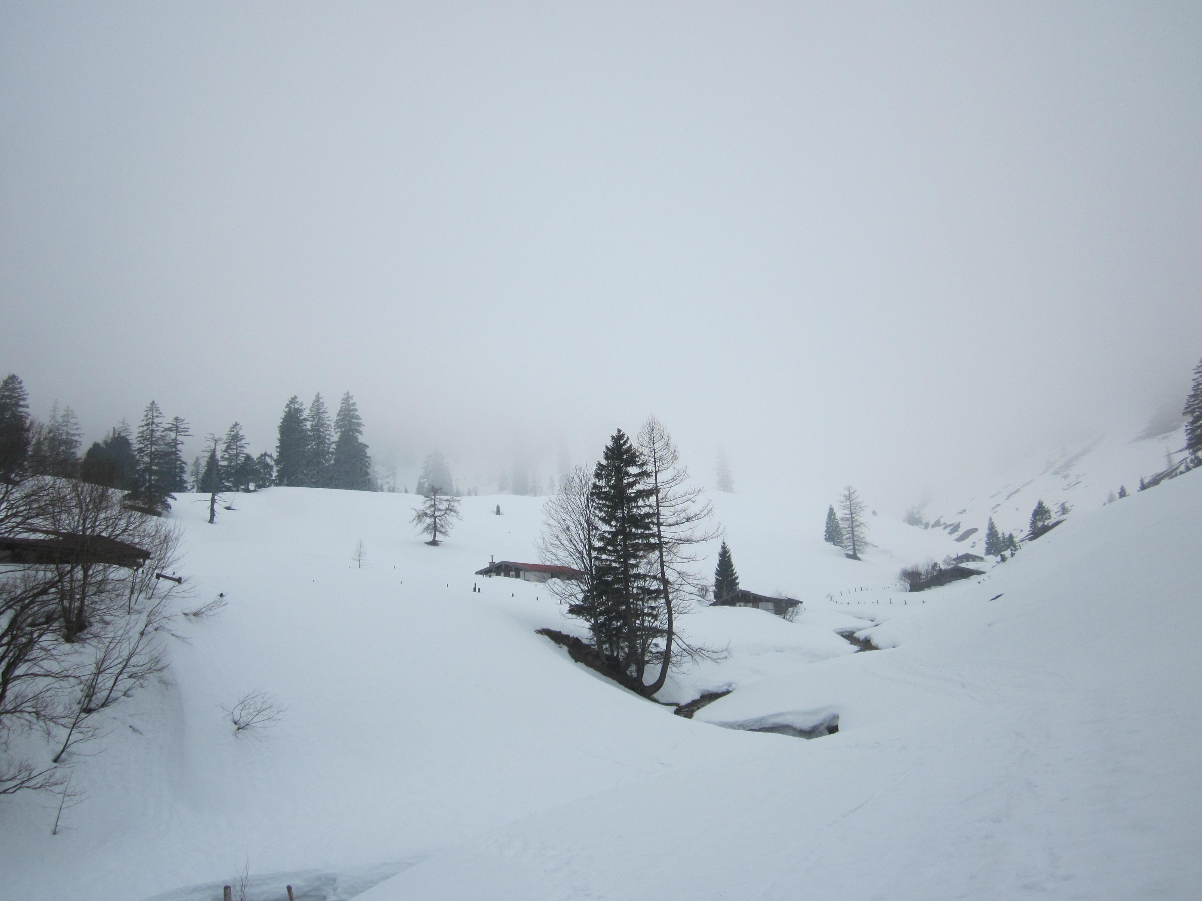 Dem Wetterbericht nach schön brav ab Mittag gestartet - bei Sonne. Zuerst auf die Thorauschneid. Damits drüben durch die erwartete Sonne no a bisserl mehr auffirnt. Auffirnen sollte ....Von der Thorauschneid runter noch schöne, weiche Schwünge bei Sicht, dann auf den Weißgrabenkopf direkt über seine Ostseite - wieder mal im Nebel. Im Aufstieg war der Schnee griffig und weich, pünktlich zur Abfahrt in Bruchharsch umgewandelt.