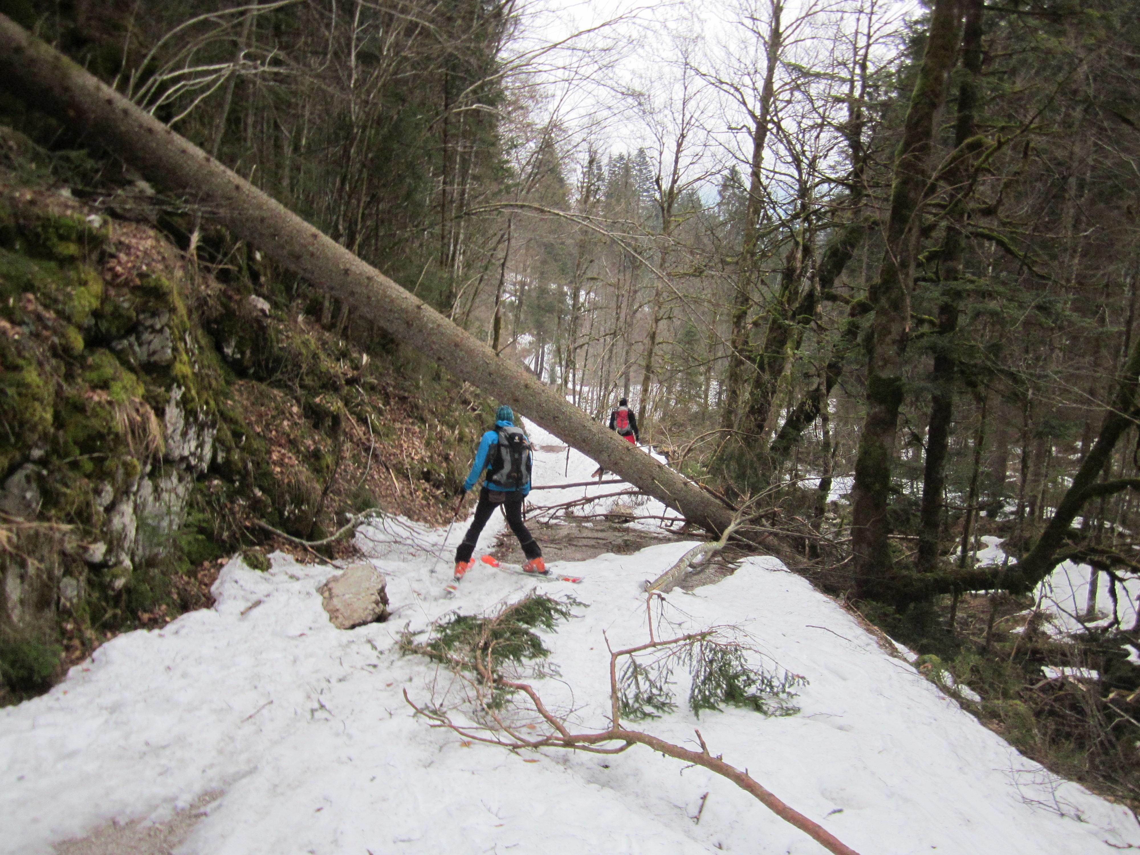 Durch die Kälte und Nebel war der Schnee ziemlich überall (wieder) hartgefroren, was auch die Abfahrt auf der Forststraße kraftraubend machte.