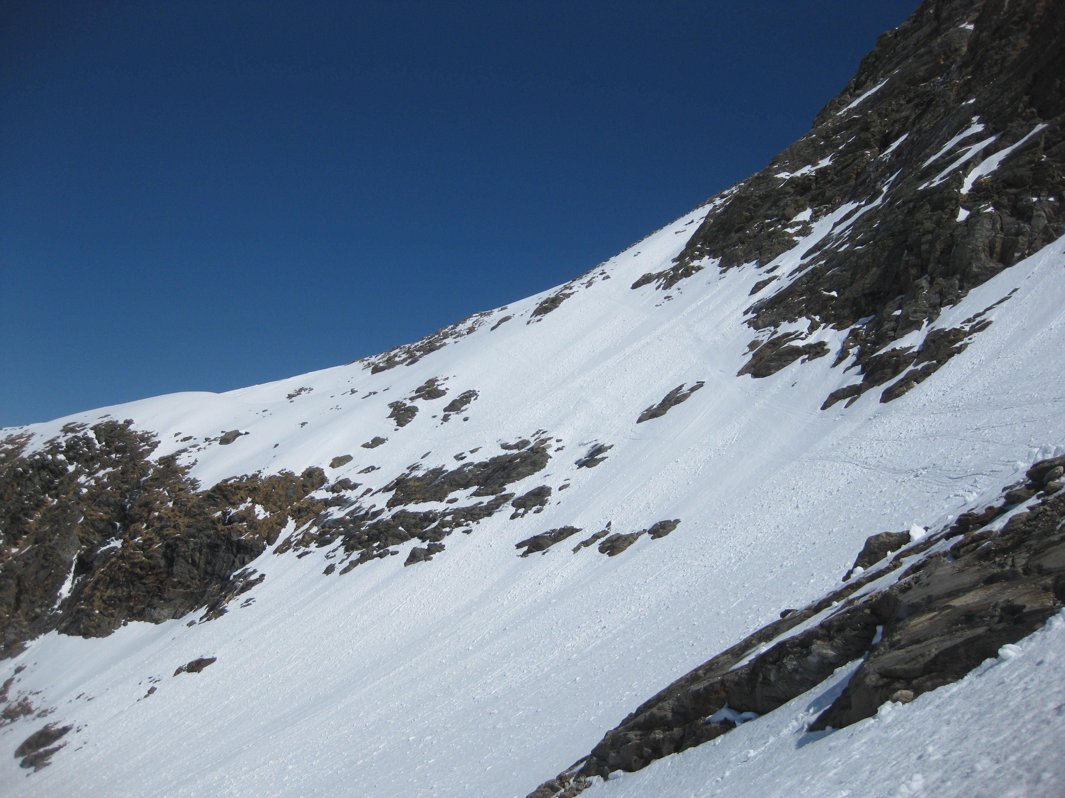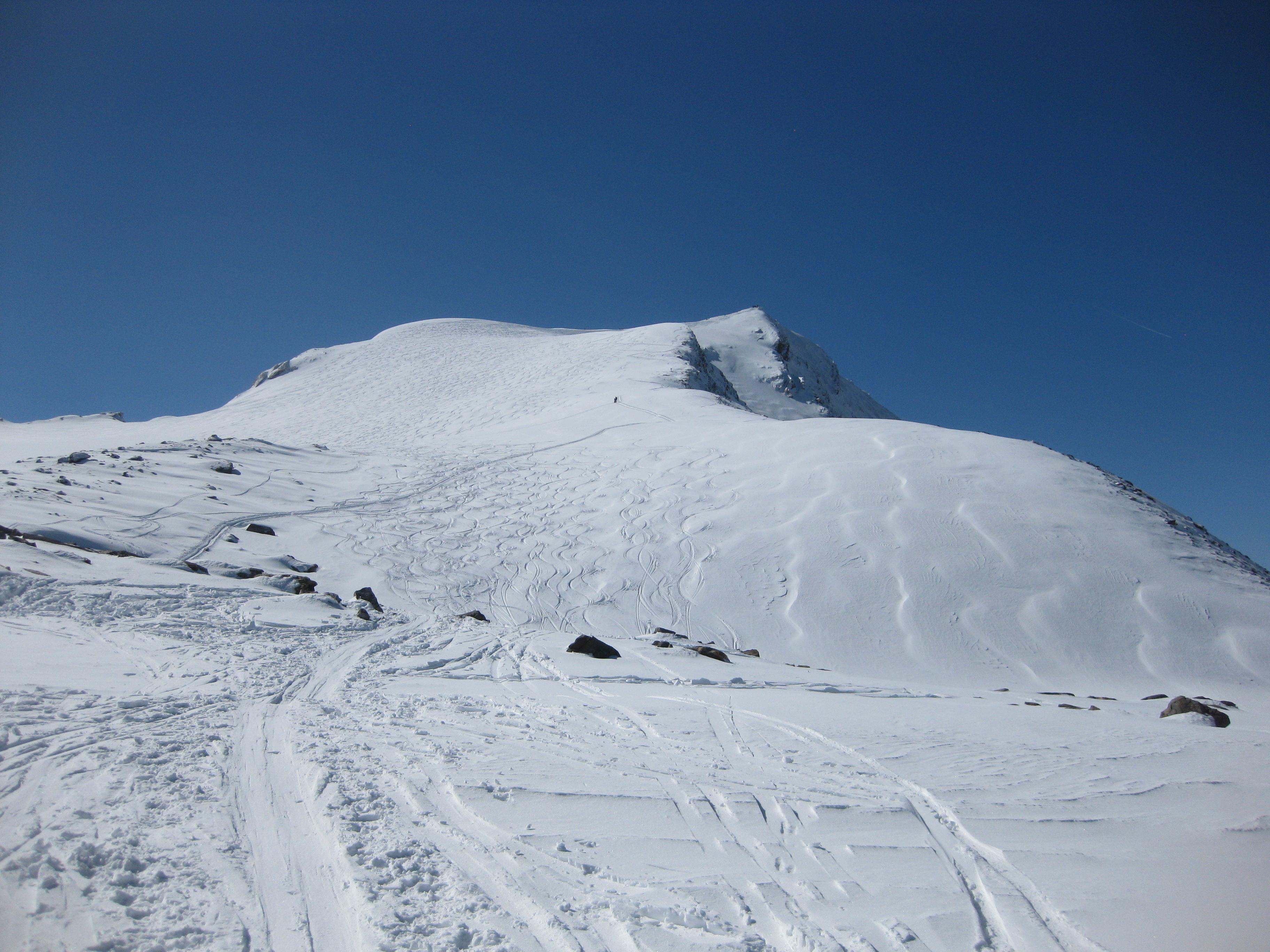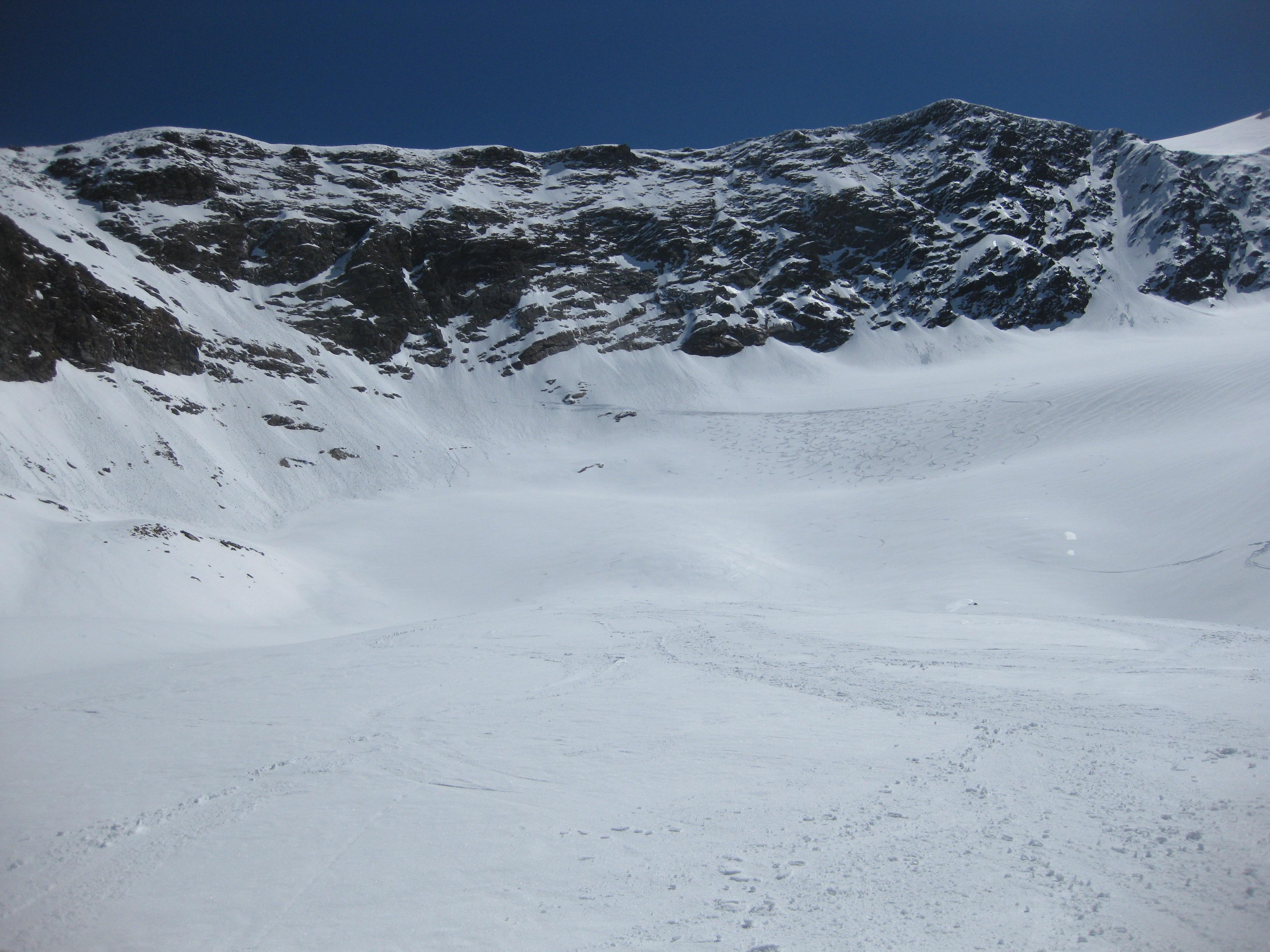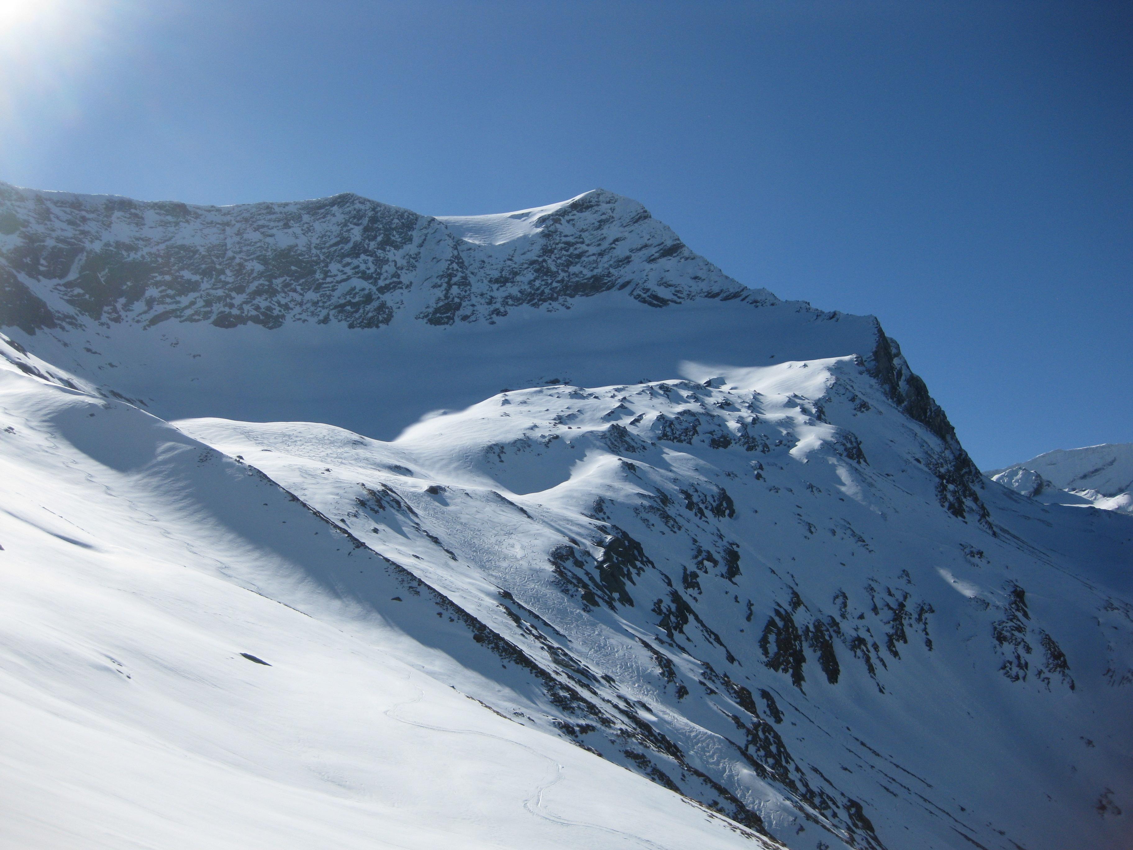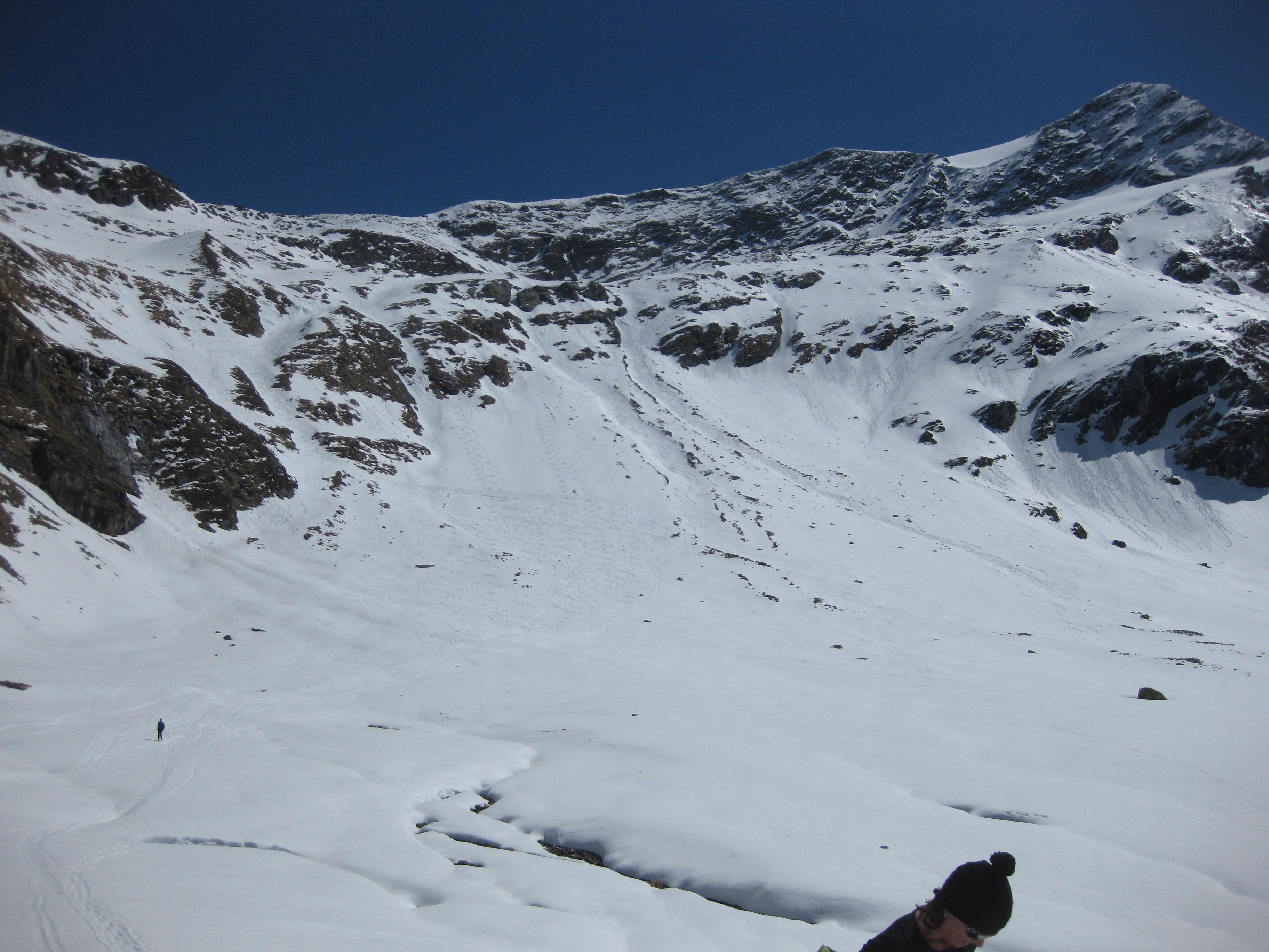 Der Frühling kommt immer näher, man muss schon gut eine 3/4 Std die Ski tragen, aber es lohnt sich. Sehr gute Bedingungen vom Gipfel noch Pulver, darunter die Querung hart dannach gut tragendender Deckel und das Finale schöner Firn.