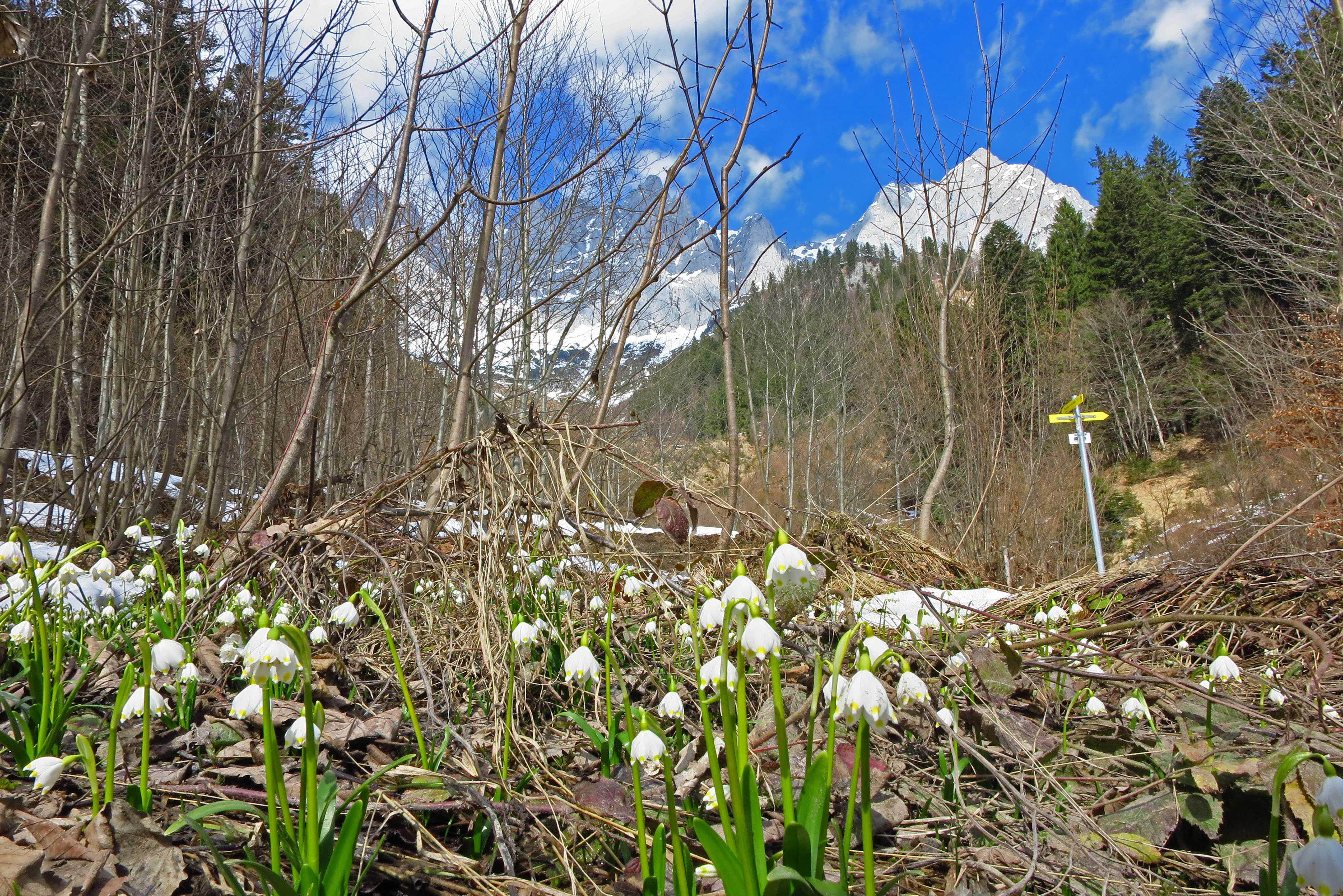 Schneelage: Vom PP 5 Min Ski tragen, dann ca, 15 Min mit Ski in den Sinnersbachgraben bis dieser aper wird. Wieder ca. 15 Min Ski getragen bis zur Forststraße. Auf dieser mit Ski mit ein paar kurzen aperen Stellen zur Oberen Regalpalm und weiter über den Riesenhang zum Herrenstein. Schnee im Aufstieg war im bewaldeten Gelände nicht durchgefroren, auf Forststraße und im freien Gelände durchwegs fester Harsch. Aufstiegsspur sehr griffig, nur vom unteren Brotzeitfelsen zum oberer Endpunkt legte ich für den Steilhang sicherheitshalber Harscheisen an. Abfahrt um 09:30 war genau richtig, Butterfirn von oben bis zur Regalpalm. Was macht ma mit so an angebrochenen Tag ? Schaugn ob no was geht. Also wieder aufgefellt und über die noch kompakten W-Hänge zur Ackerlhütte (1455) aufgestiegen. Da der direkte Weiterweg von der Hütte über die SO-Hänge ins Hochgubachkar schon recht batzig war, Abfahrt auf dem Rücken bis unterhalb der Graspoint Hochalm (ca. 100 Hm) und Anstieg über die noch nicht so stark besonnten Hänge ins Kar bis unter die Wände der Maukspitze (ca. 1730). Abfahrt Hochgrubachkar um ca. 11:30 im weichen Firn, zwischen den Latschen brach man manchmal etwas ein, aber sonst alles noch schön fahrbar.