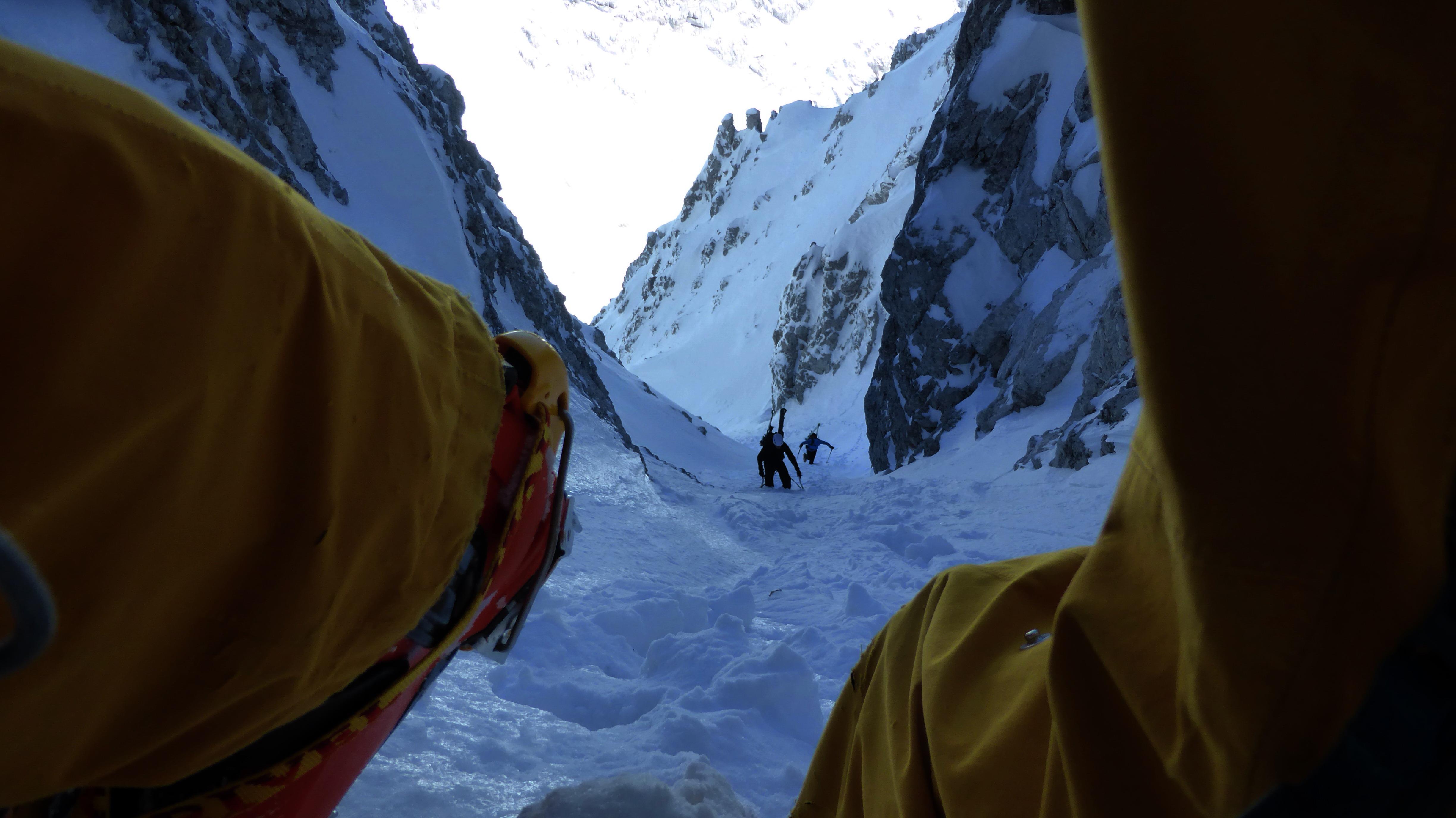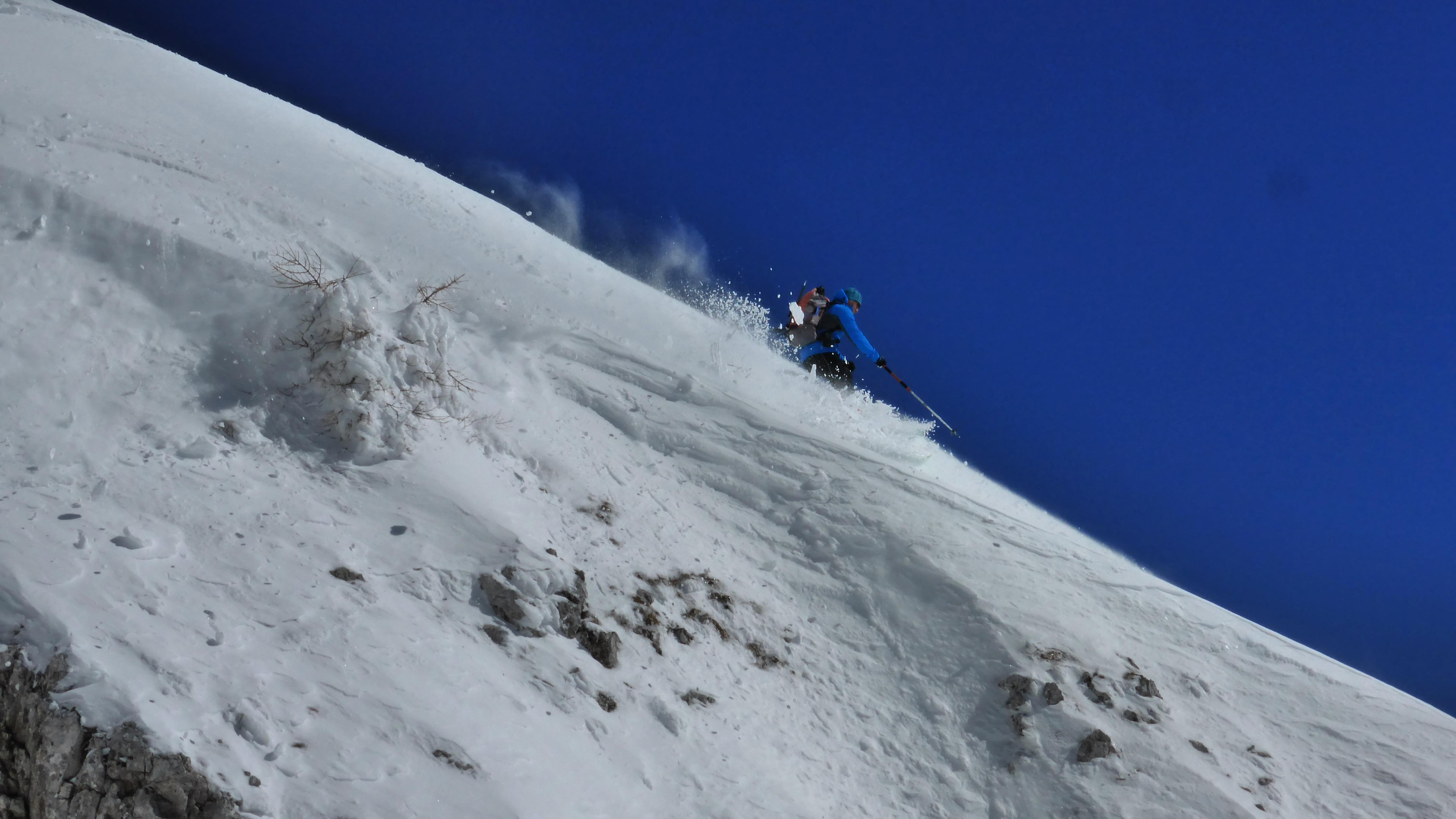 Ab der Schihütte aber sehr gute Bedingungen in der Y-Rinne gut begehbarer trittfester Schnee, bei der südseitigen Abfahrt teils noch gepresster Pulver, weiter unten dann Firn...