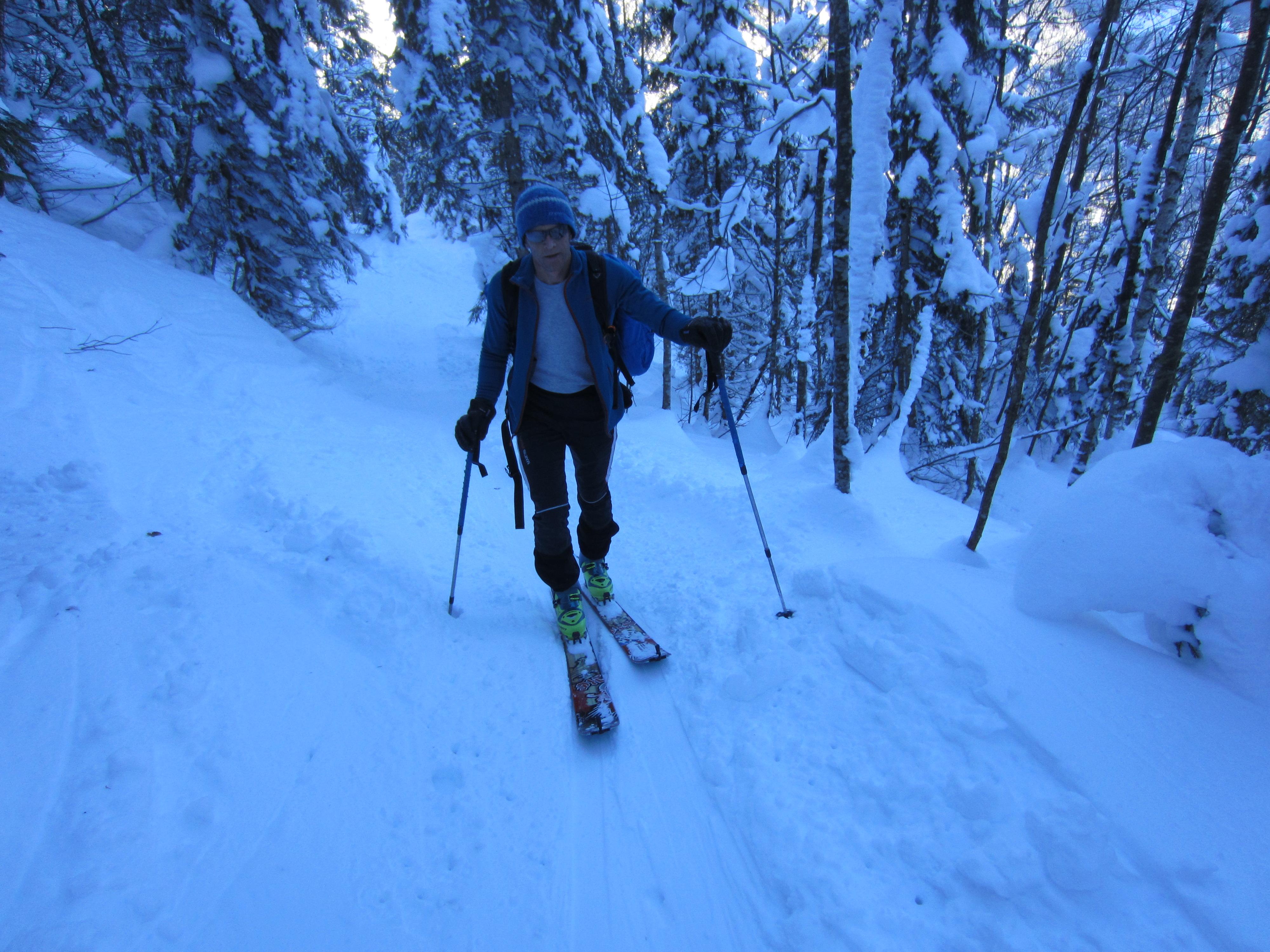 Am Gipfel wenig Wind und die Abfahrt im oberen Teil windgpresst, im Wald gut zu fahren.