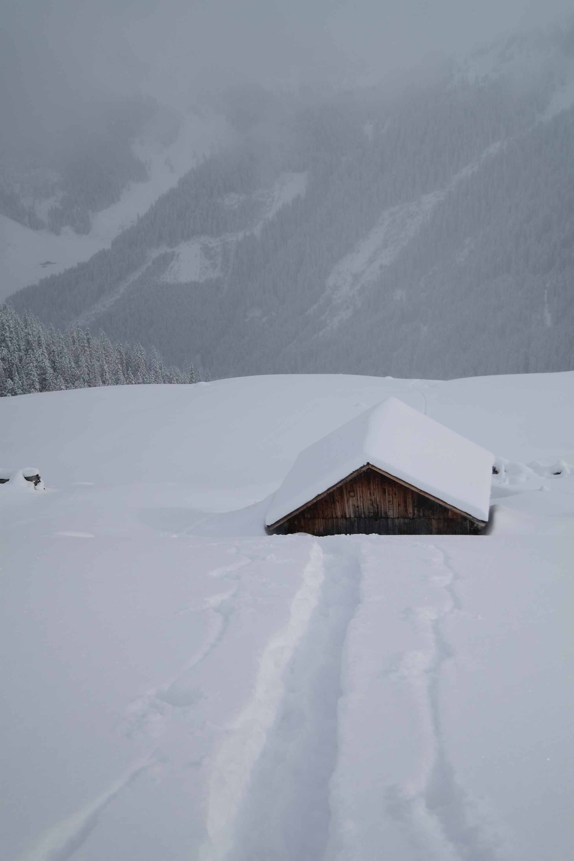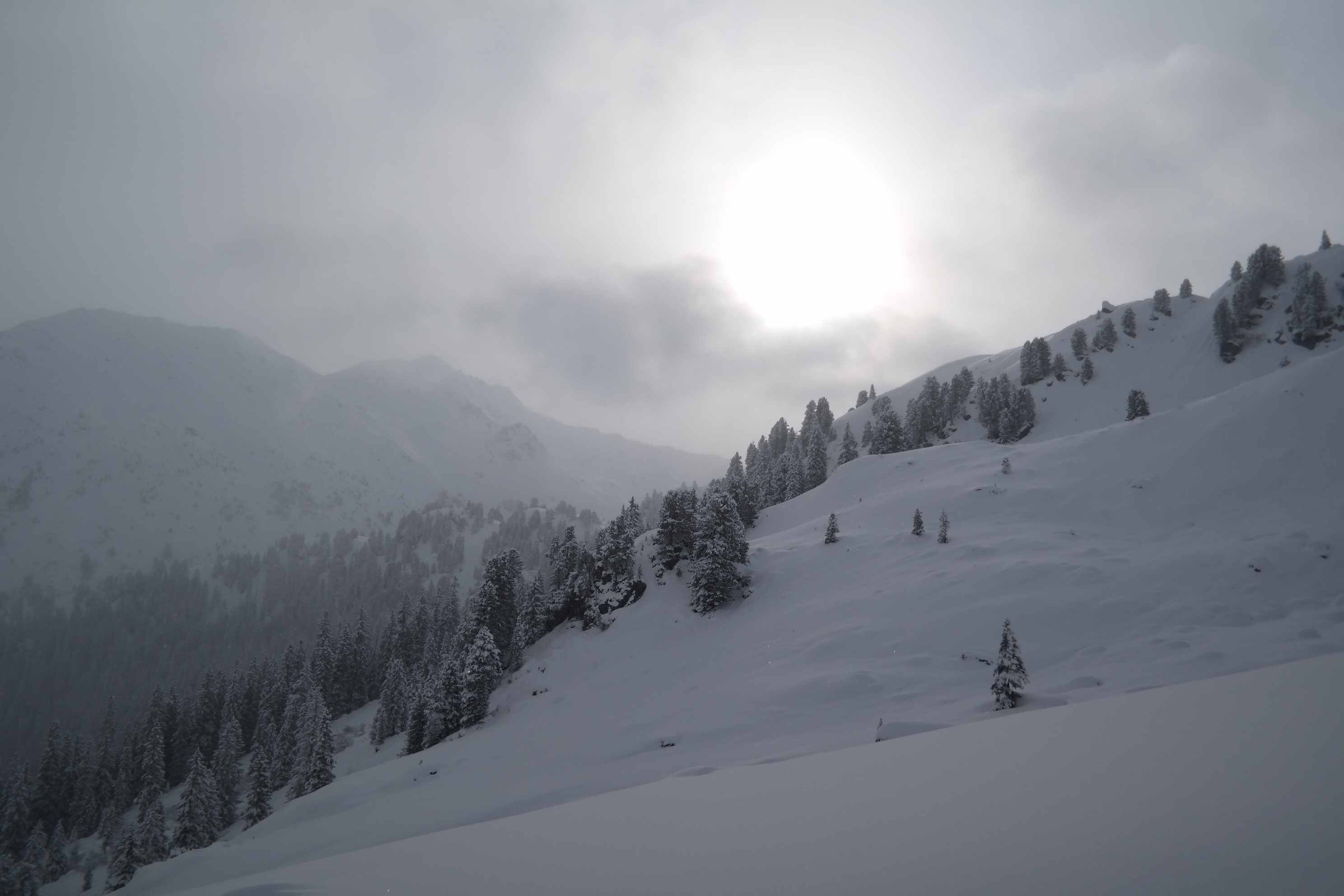 Endlich hält der Winter auch in den Nordalpen Einzug! Bis vor wenigen Tagen war es in den Kitzbüheler Alpen mehr Grün als Weiß, doch jetzt hat´s geschneit und es soll ganzes Wochenende weiter schneien. Heute hatte es im Umfeld der Neuen Bamberger Hütte bereits 30-50 cm locker-flockigsten Powder. Aber bis in große Höhen hinauf de facto ohne Unterlage - was einen unbeschwerten Abfahrtsgenuss derzeit noch verunmöglicht, da ständig Steinkontakt droht. Aufstieg über den Sommerweg geht, Abfahrt nicht - für die Abfahrt unbedingt die Forststraße orografisch links des Wildbaches nehmen, die geht sehr gut und durchgehend bis ganz hinunter. Im Manzenkar und auf der Stangelhöhe heute komplett alleine durch den Tiefschnee gespurt - und dabei überraschenderweise vormittags sogar teilweise Sonnenschein gehabt.