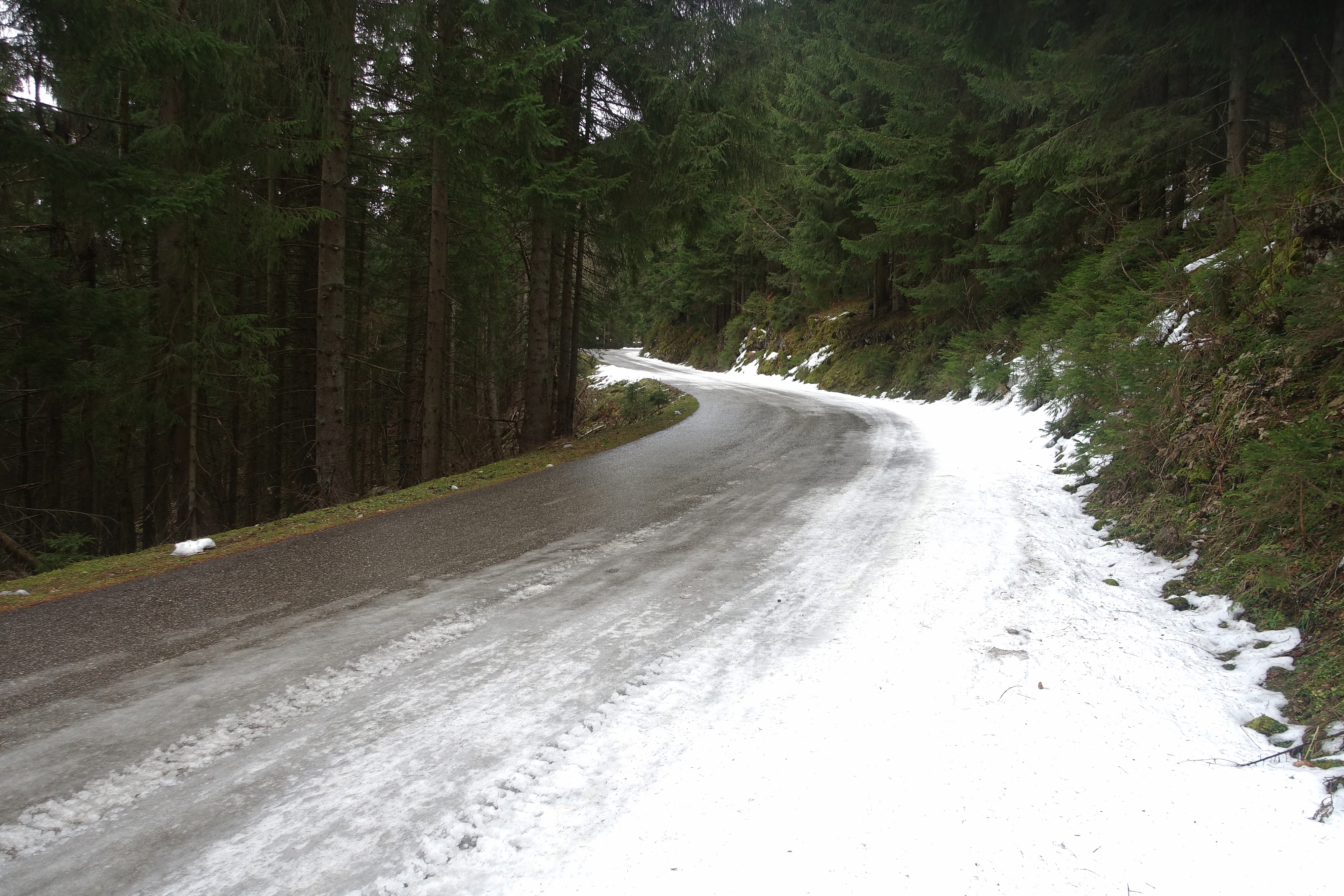 Der Schnee schwindet auch am Trattberg rasant, man kann zwar mit den Fellen noch vom Schranken weggehen, für die Abfahrt reicht es aber nicht mehr, ca. 10 Min. tragen - wer die Ski schonen will. Gipfelhang und Hang zur Enzianhütte auch sehr schlechte Verhältnisse, tiefer nasser und fauler Schnee - am besten fahren, wo die letzten Tage alle gefahren sind. Die Mautstraße ist zu 2/3 noch OK, obwohl der Asphalt an vielen Stellen schon gewaltig durchglänzt. Die frische Luft trotzdem genossen.
