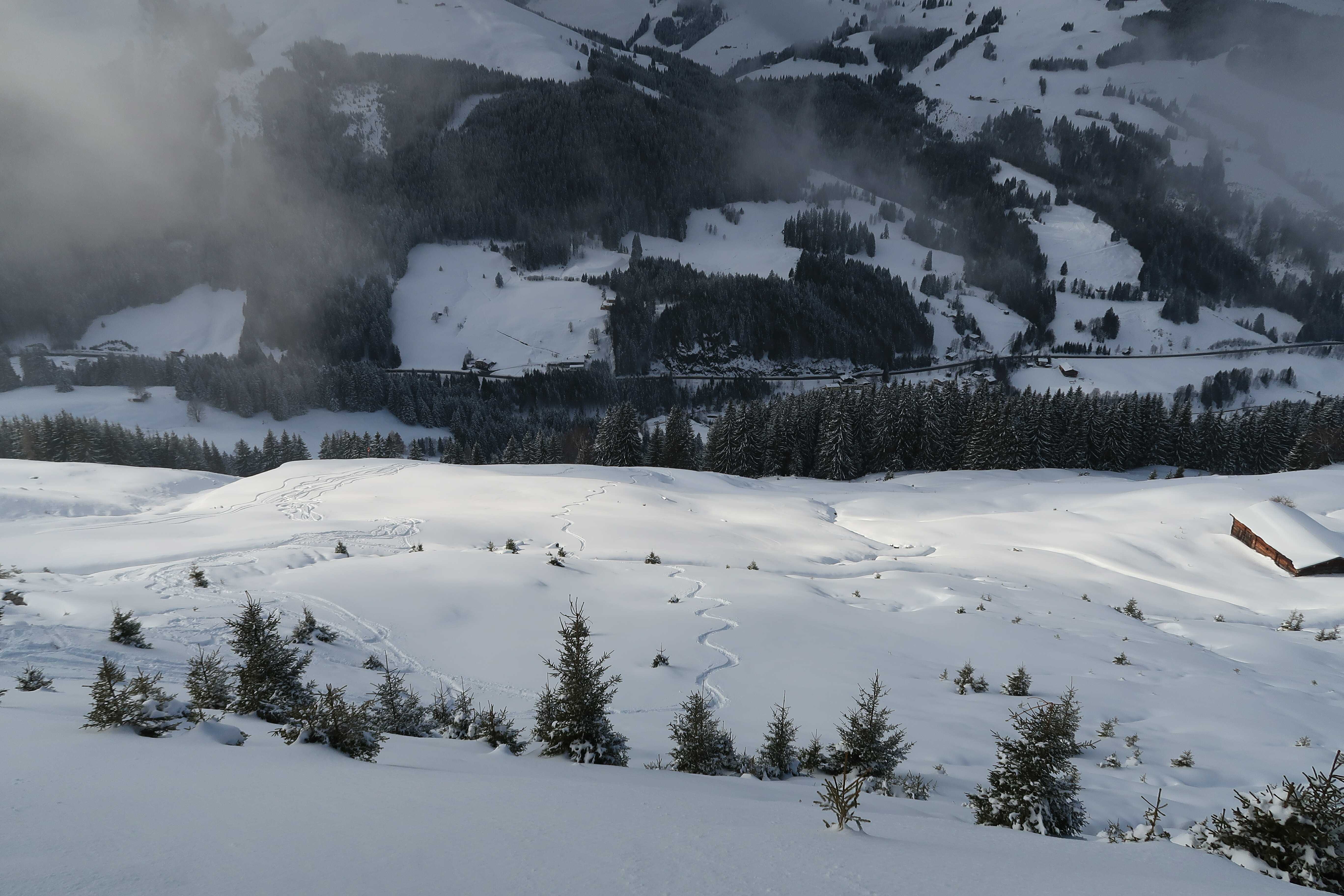Beim heutigen Wetter-Pokern gewonnen. Wie vom Wetterbericht vorhergesagt wurde es im Pinzgau - Pongau recht sonnig :-)). Neuschnee z. T. mehr als genug, leider aber auch teilweise recht windbeeinflusst. Schon im Tal ca. 30-40cm Neuschneeauflage, oben dann stellenweise (im Windschatten) bis über 60cm, fast schon ein bisschen zuviel. Zwischendrin dann immer wieder auch deutlich weniger. Unterhalb von ca. 1400m fehlt halt immer noch eine gute Unterlage, Gräben sind noch offen und Unebenheiten spürt man durch. Spurt man oben ins Gelände, wird man permanent von Wumm-Geräuschen begleitet, die Schneedecke steht vielerorts unter Spannung. Aufpassen ! Der direkte Nordhang blieb heute unberührt. Insgesamt heute trotzdem ein Hochwintertraum.