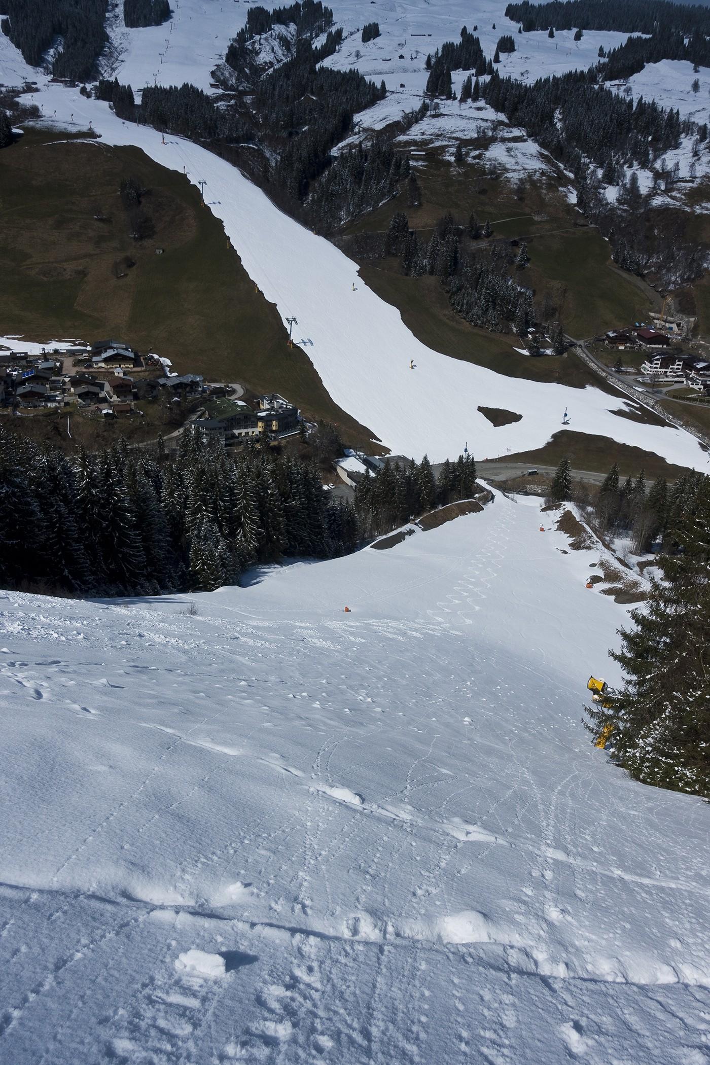 Der Schnee am Kamm ein Fleckerlteppich, nix für Experimente.