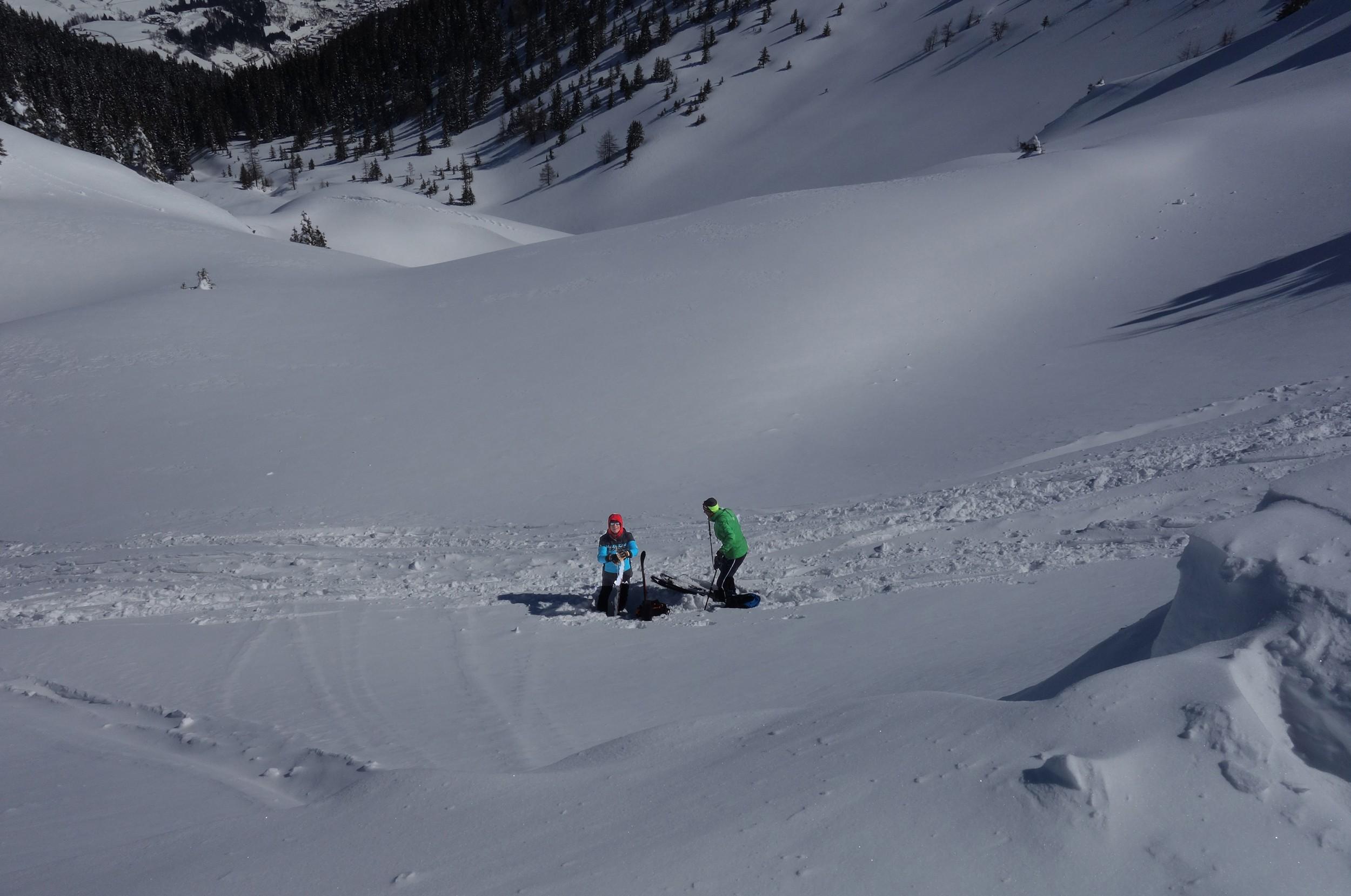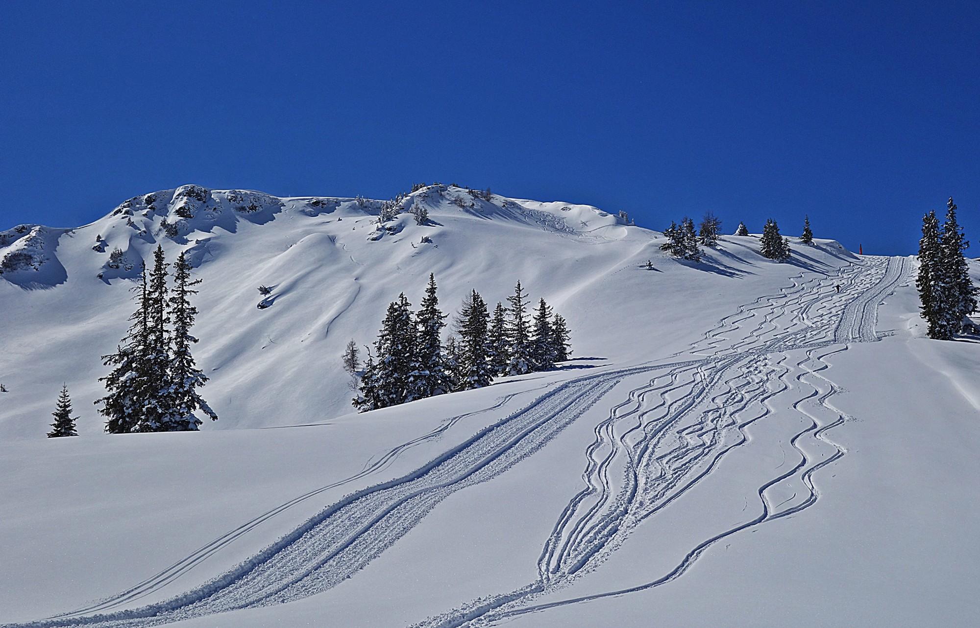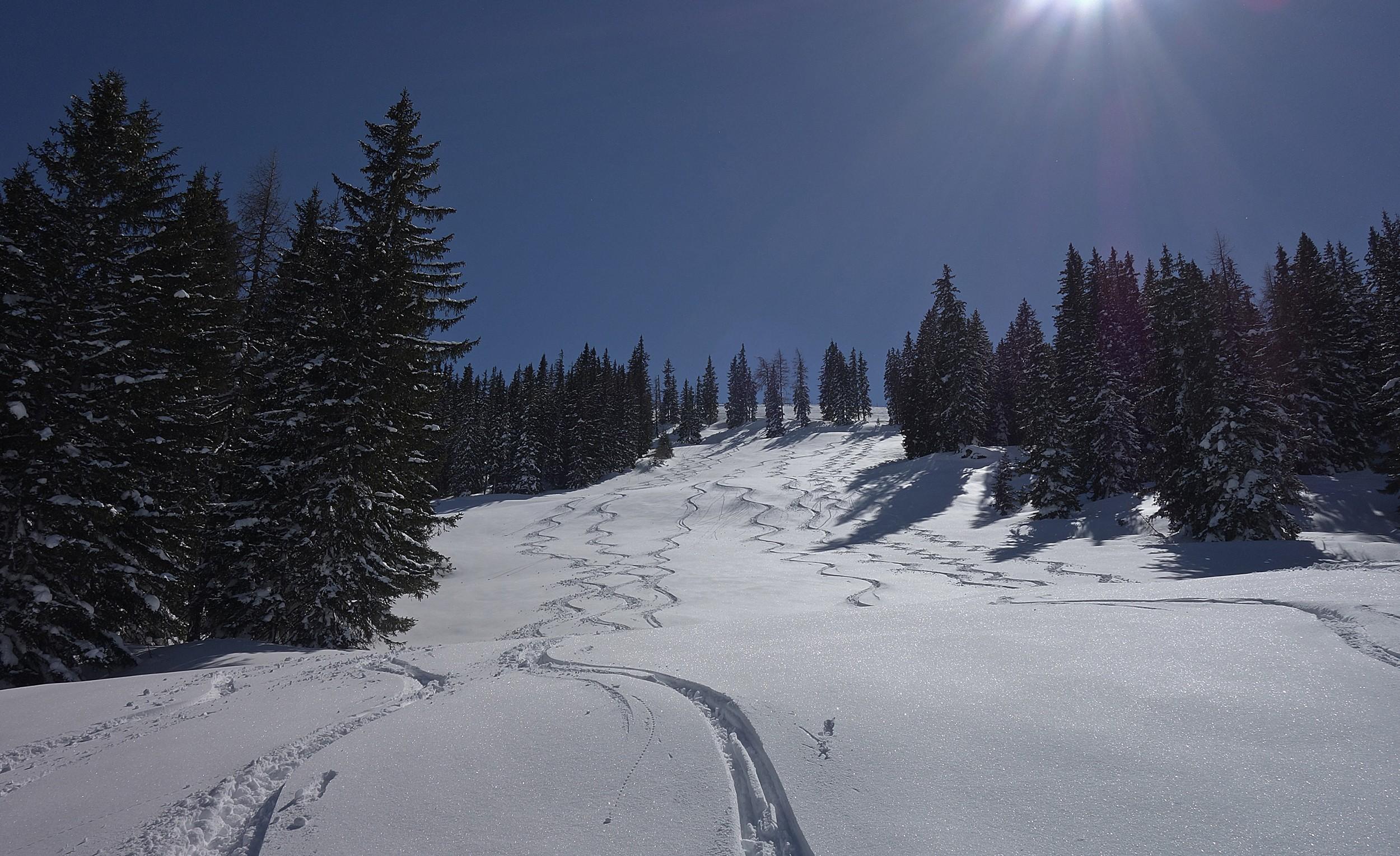 Der erste schöne Tag, hinaus mit uns und das quasi vor die eigene Haustür, der Schneeberg hat wieder herhalten müssen und wie er das gemacht hat, selten so schön Pulverschnee gefahren wie heute. Herrliches Wetter, im Kammlagen windig aber nicht sonderlich kalt, die Sonne wärmt angenehm auf und löst an der Hochkönig Südseite so manche "Nasse" mit Donnergroll aus.