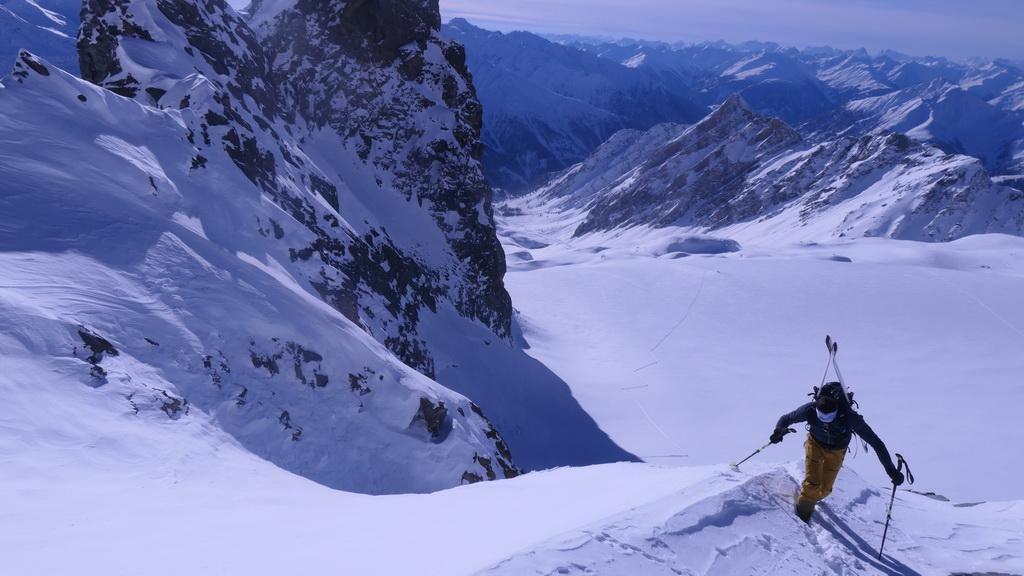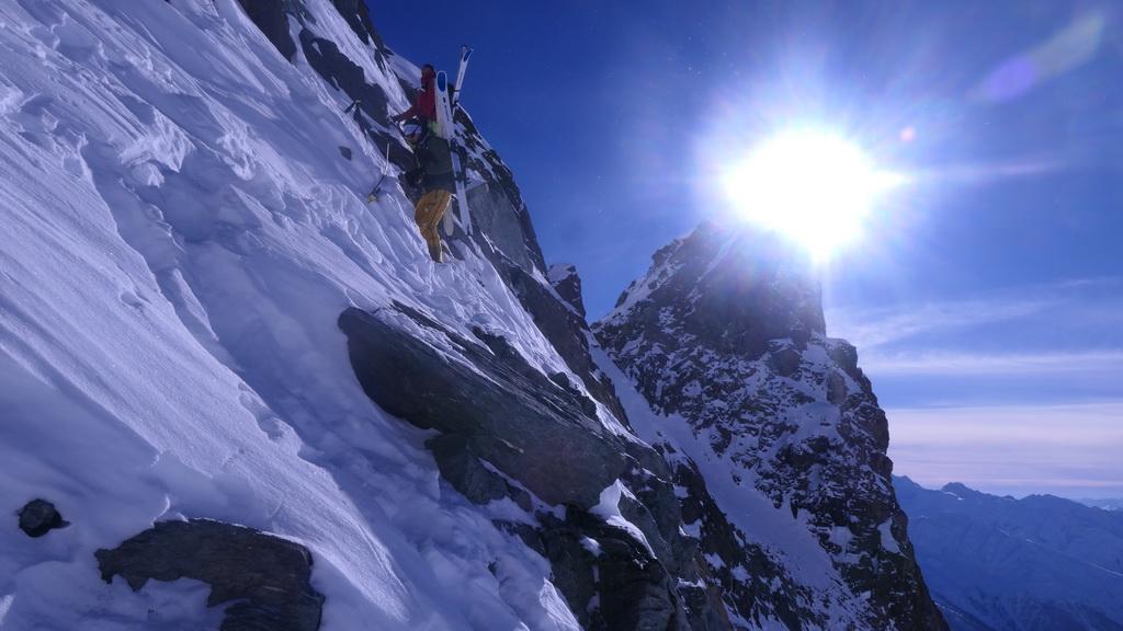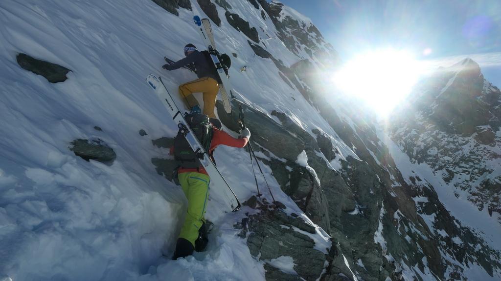 Bei zweisteeligen Minus graden sind wir heute beim Lucknerhaus gestartet. Erst ca. 300hm unterhalb der Stüdelhütte sind wir dann in die Sonne gekommen. Von hier weg wars dann richtig angenehm und wir konnten das traumhafte Panorama richtig genießen. Der Schnee war vom Auto bis hinauf zum Ködnitzkees einfach perfekt. Mit zunehmender Seehöhe wurde aber auch der Windeinfluss immer deutlicher sichtbar. Alte Lawinenkegel in den Ausläufen der Pfortscharte und Langen Wand zeugten von Lawinenaktivitäten der Verangenheit. Der letzte Aufstieg auf die Scharte war ziemlich eingeblasen und so haben wir die Schneeflanke gemieden und sind lnks über den Klettersteig hochgestiegen. War ziemlich eine Arbeit das Seil frei zu bekommen aber der Ausblick oben hat die Mühe mehr als belohnt. Und für möglich nachamer sicher ein klarer Vorteil. Den Aufstieg zur Scharte wuerde ich trotzdem nicht unbedingt empfehlen da die Felsen ziemlich vereist sind und hier absolute Absturzgefahr besteht.