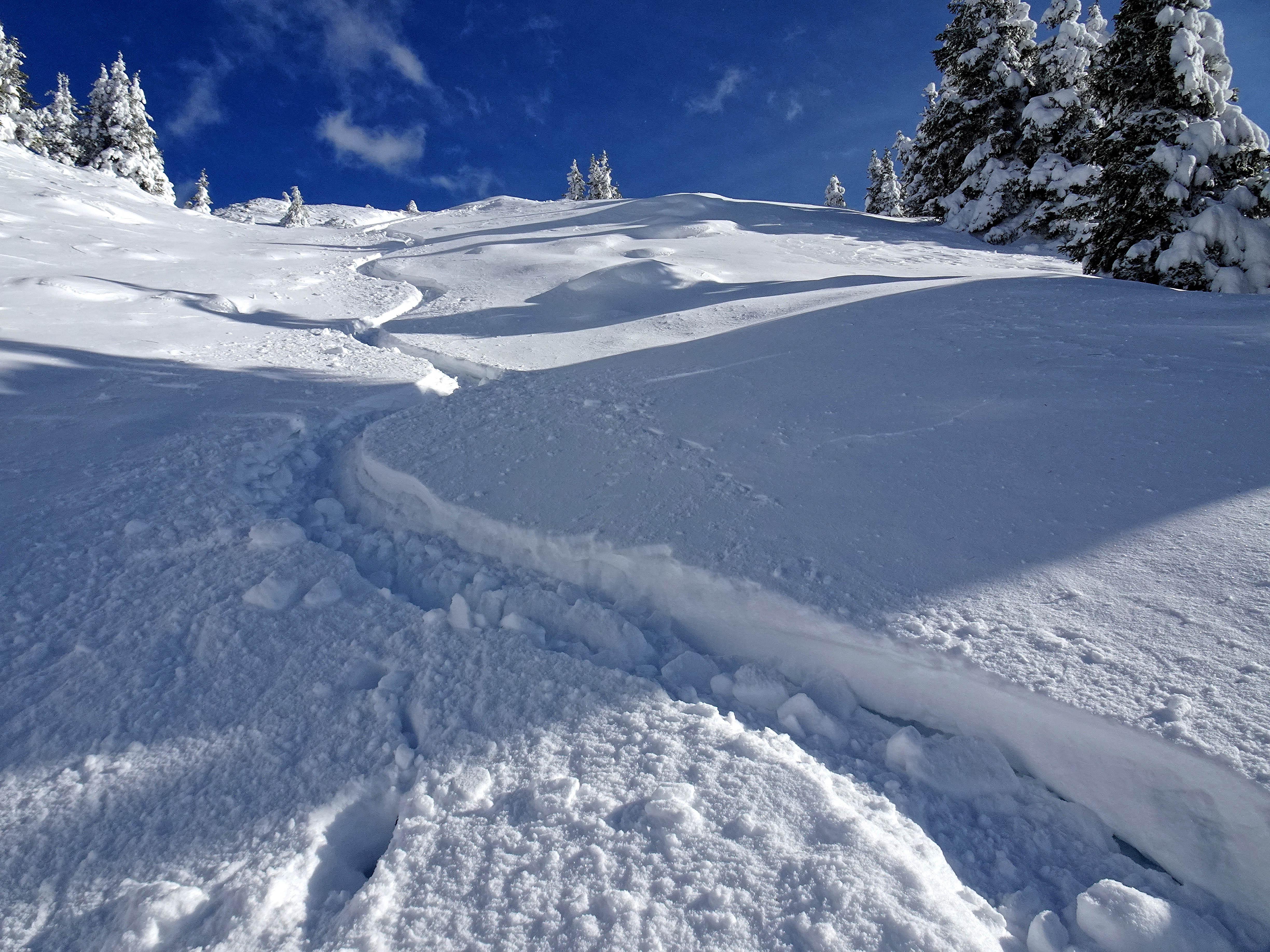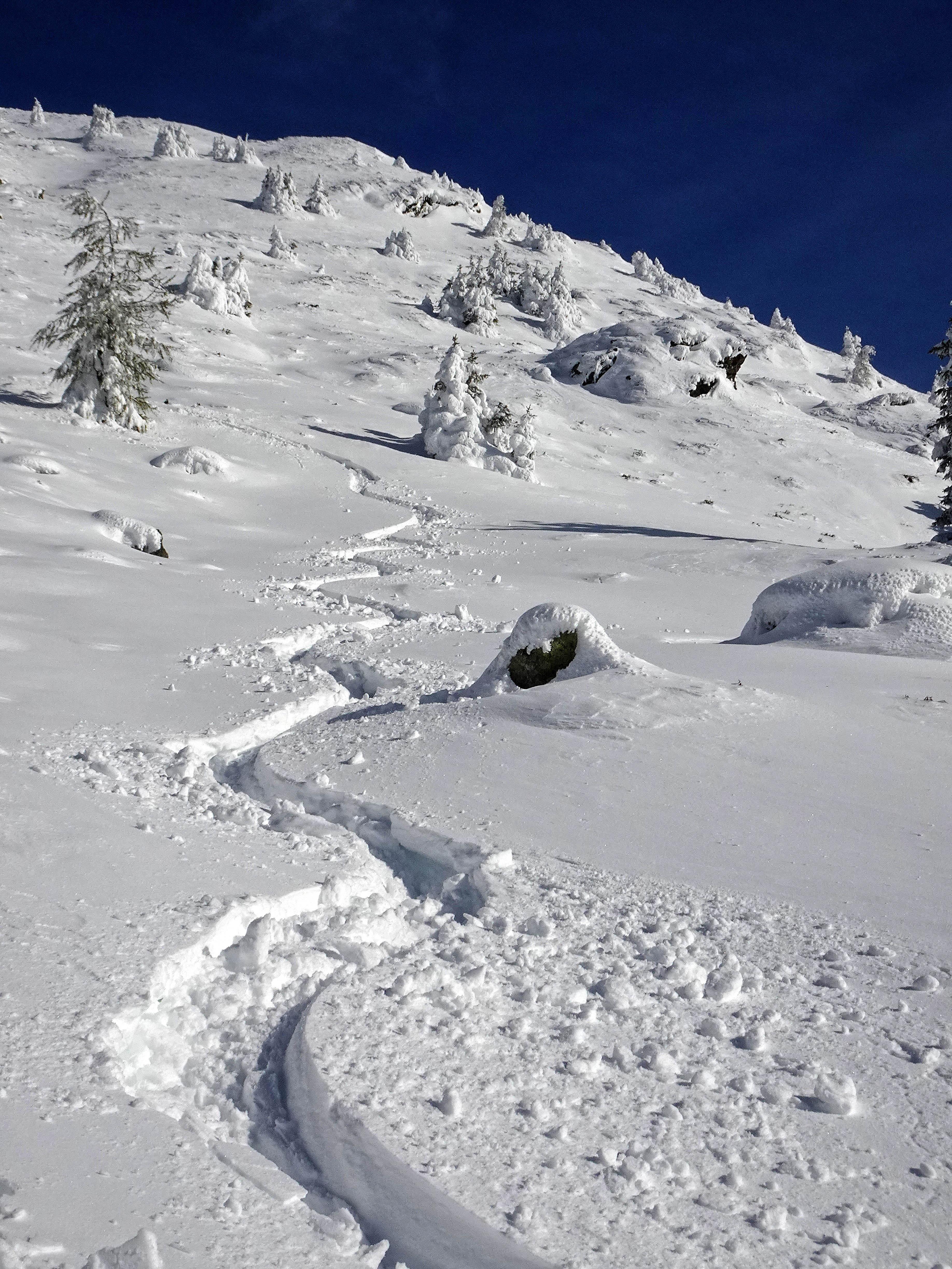 Aufbruch an der Mittelstation Planai entlang der Piste über die Mitterhauslifte bis zum Gipfel. Retour gegenanstiegschonend über den Panoramaweg. Abfahrt vornehmlich in zugewehten Mulden und Rinnen westseitig.