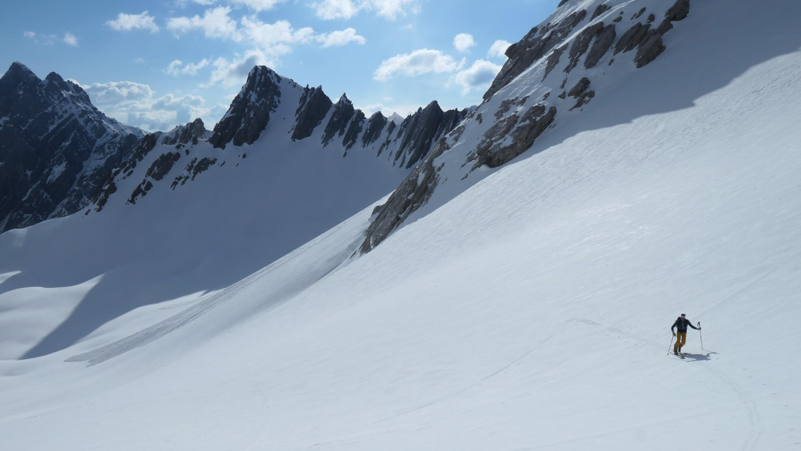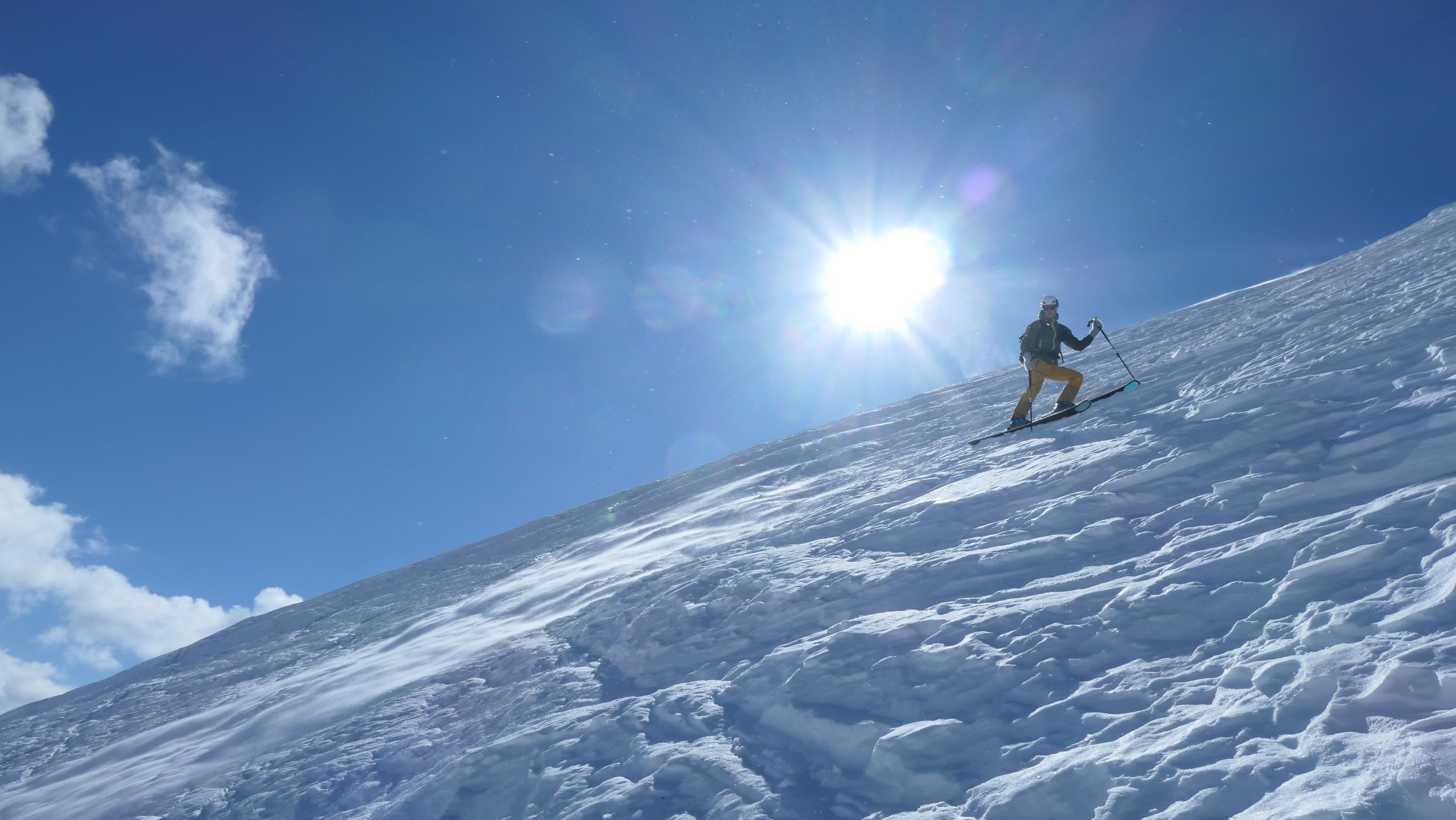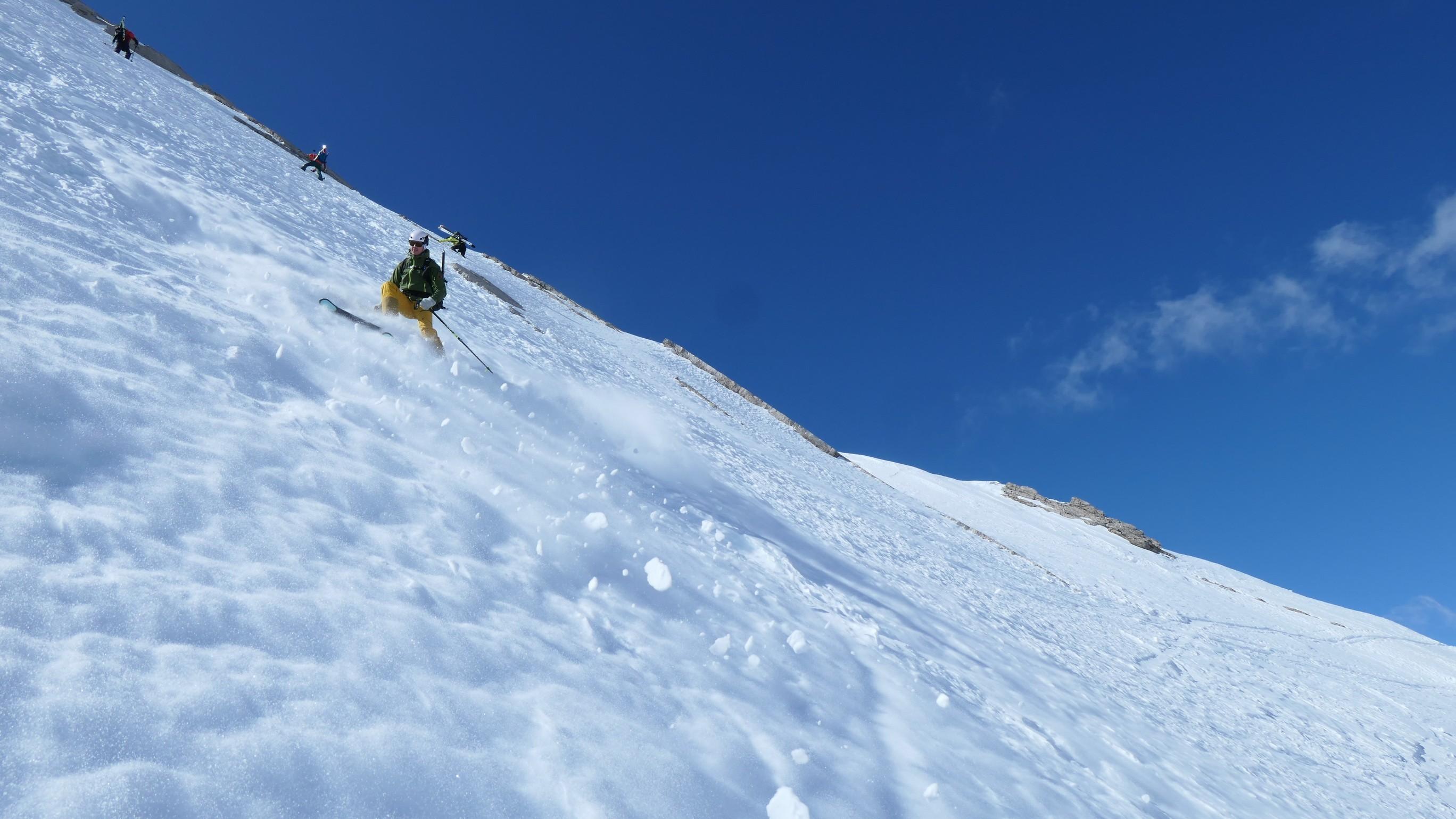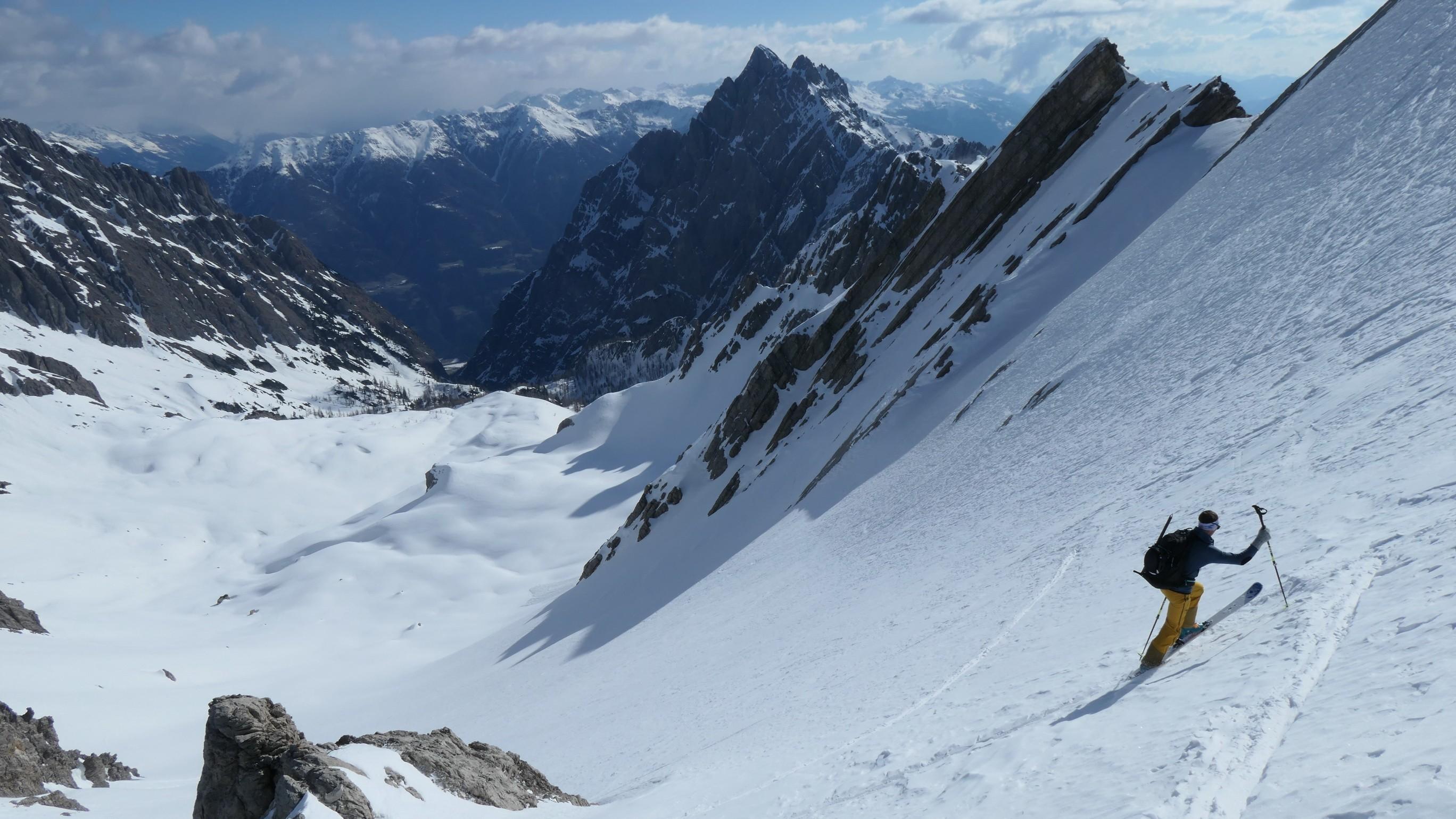 Heute wieder einmal die derzeitigen TOP Bedingungen in den Lienzer Dolomiten genützt. Beim Aufstieg war die Schneedecke noch tragfähig, ziemlich hart aber gut griffig. Unsere Tour führte uns heute übers Laserztörl auf die Grubenspitze. Teilweise wehte ein relativ starker Wind so dass die Sonne einige Mühe hatte den Schnee zum Firnen zu bringen. Die steile Gipfelflanke war noch gut eingeschneit und nur an einigen stellen schauten schon die Felsplatten heraus. Beim Aufstieg haben wir die letzten 100hm auf Steigeisen gewechselt, was dann echt angenehm zum Gehen war. DIe Abfahrt gestaltete sich dann auch relativ gut, bzw. viel besser als es zuerst ausgeschaut hat. Die Schneedecke war super griffig und so war die Steilheit kein Problem um sicher hinunter schwingen zu können. Beim Gegenanstieg zurück zum Laserztörl hatte es schon leicht aufgefirnt. Alles in allem wieder eine super Tour in einer heuer wirklich traumhaften Winterlandschaft.