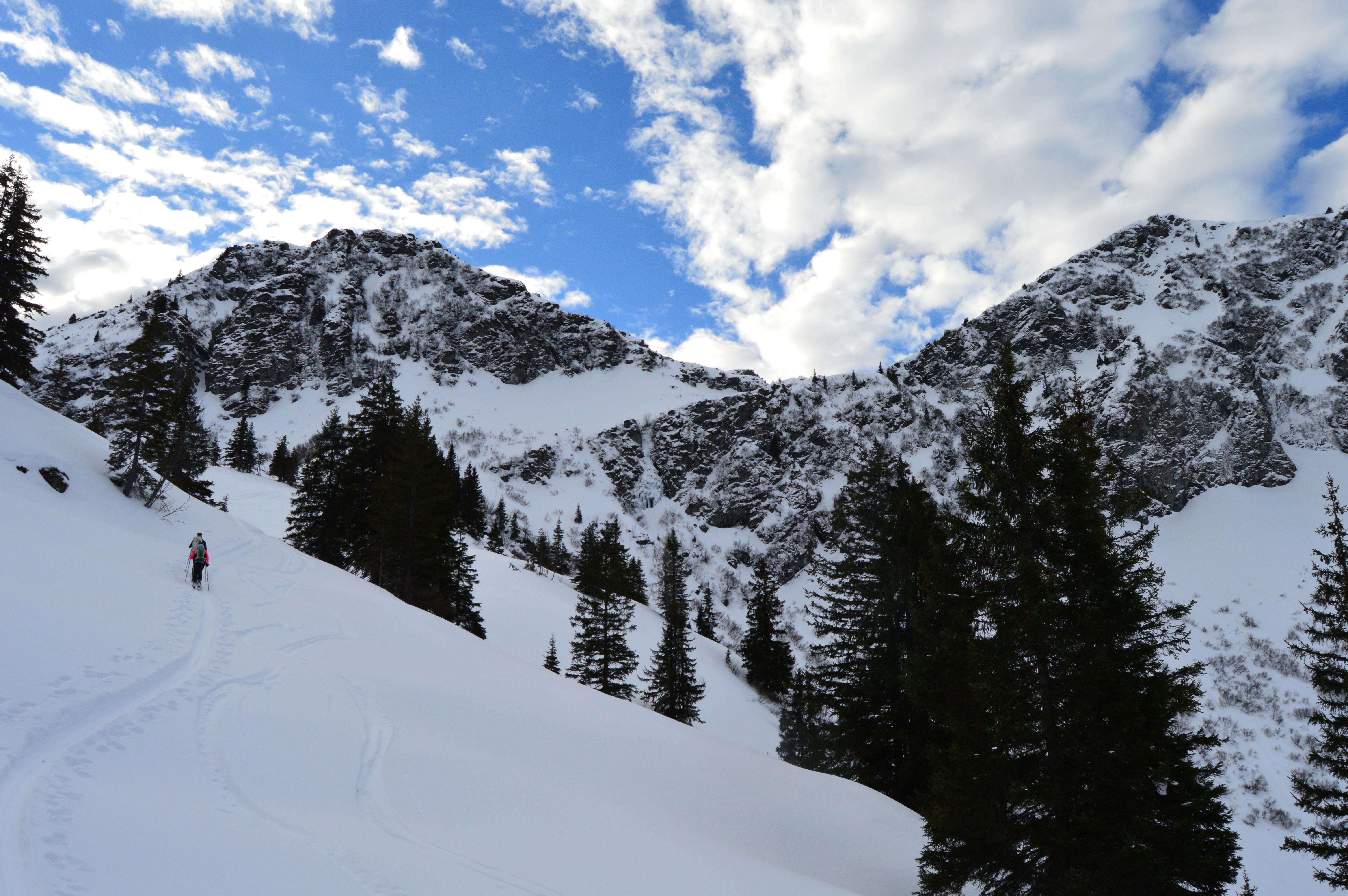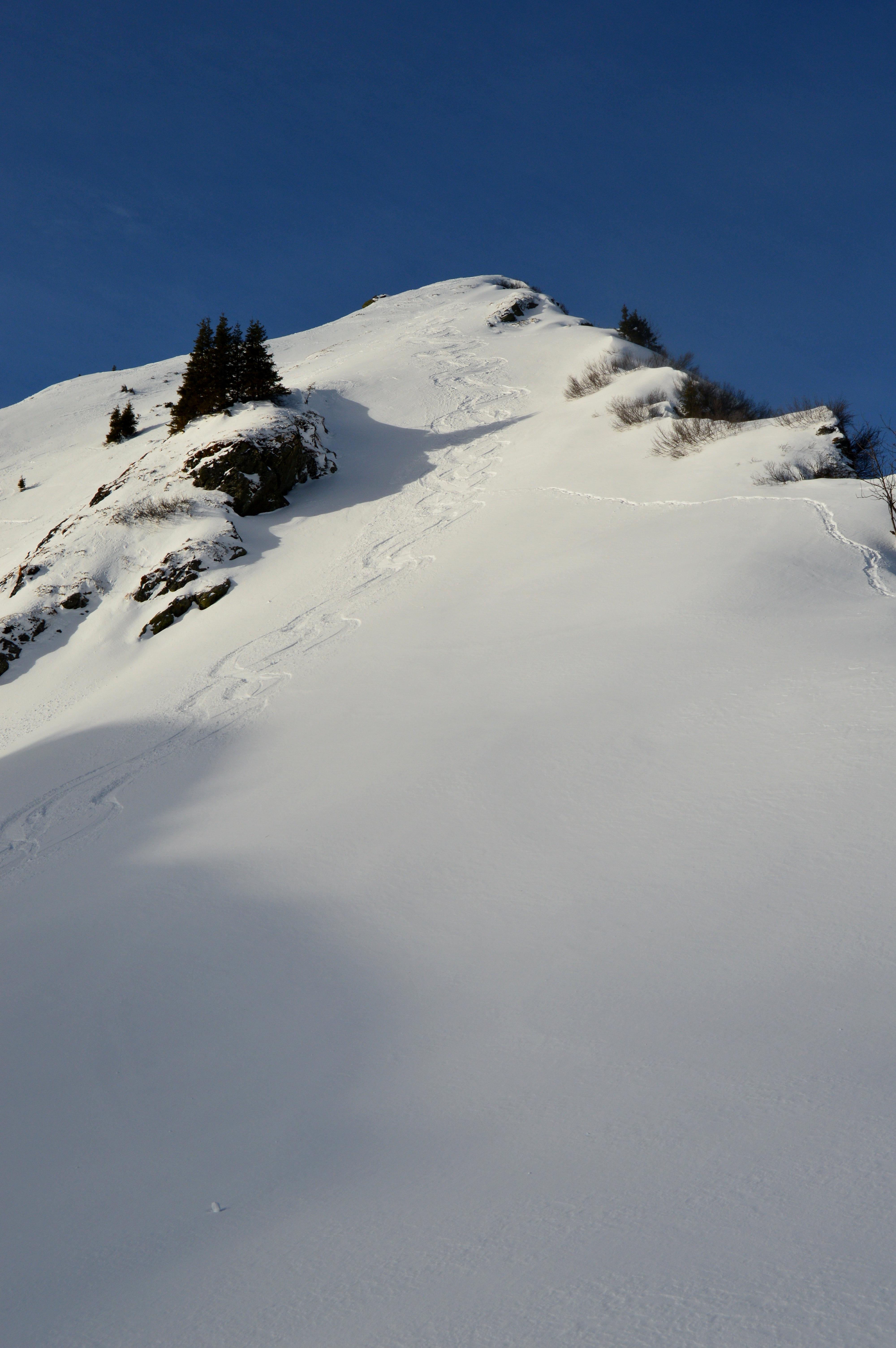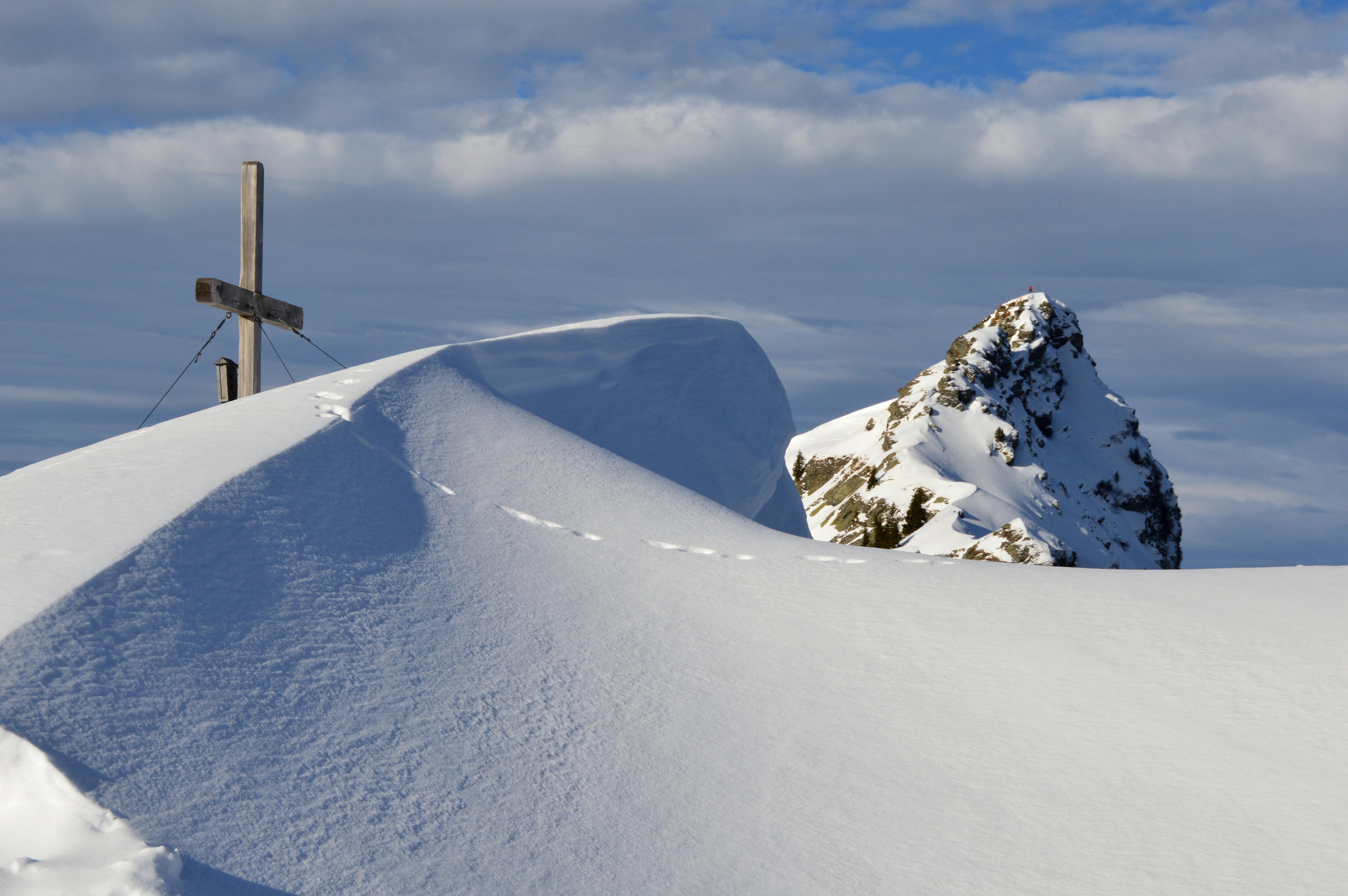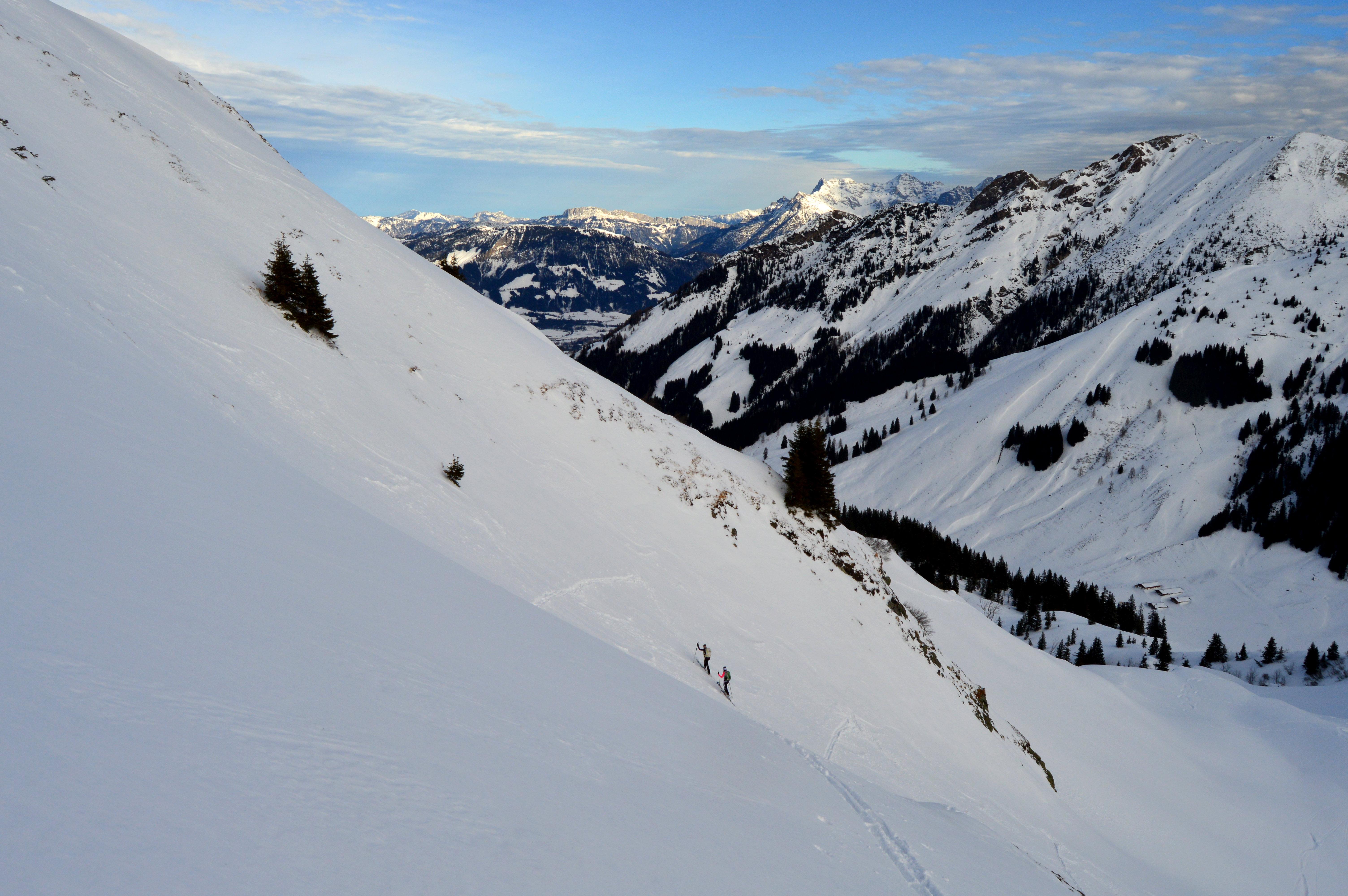 Die Wolkenschichten waren heute vormittag ziemlich hartnäckig. Pünktlich zum Aufstieg über den steilen Gipfelhang hat´s die Sonne aber dann doch gepackt. Zumindest den Gipfelhang durfte ich dann doch noch spuren, da bis dahin nur 3 Abfahrtsspuren den steilen Osthang zierten.